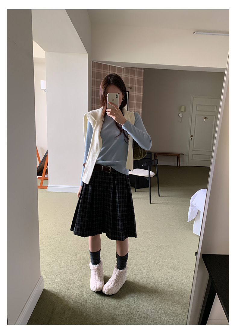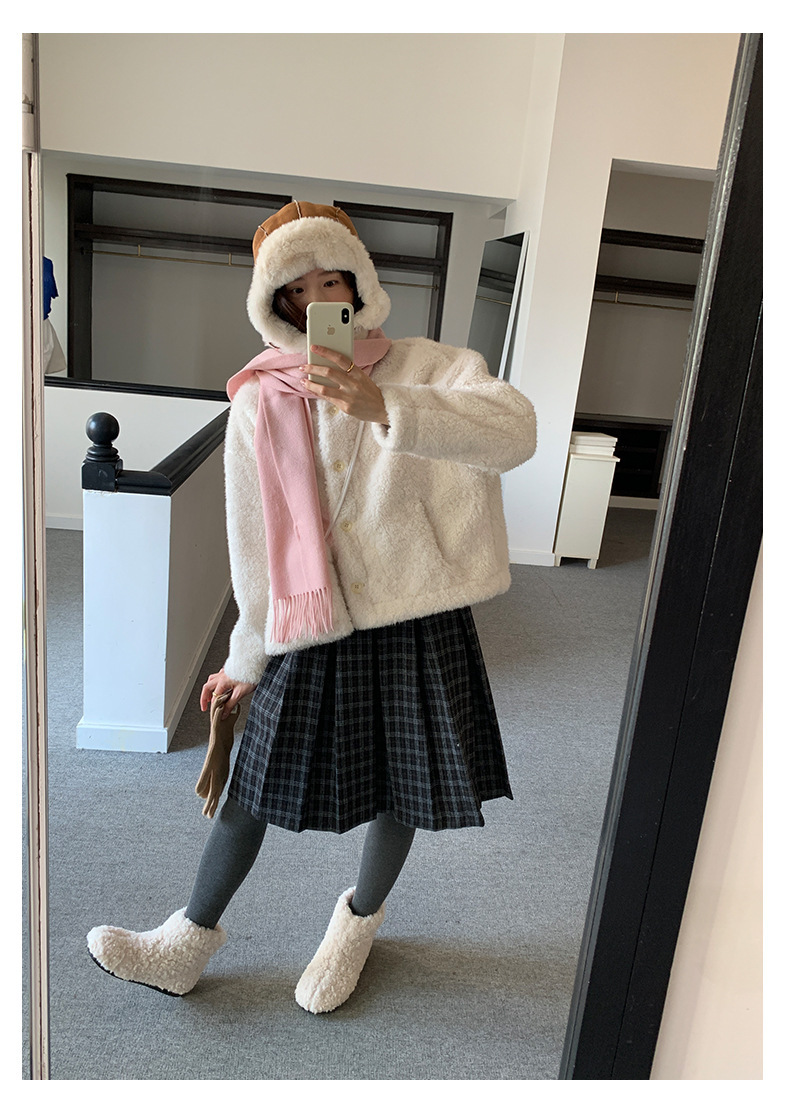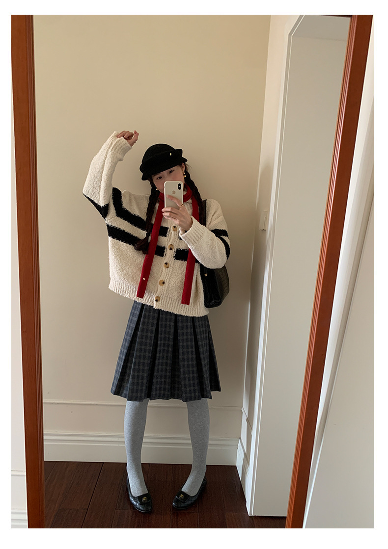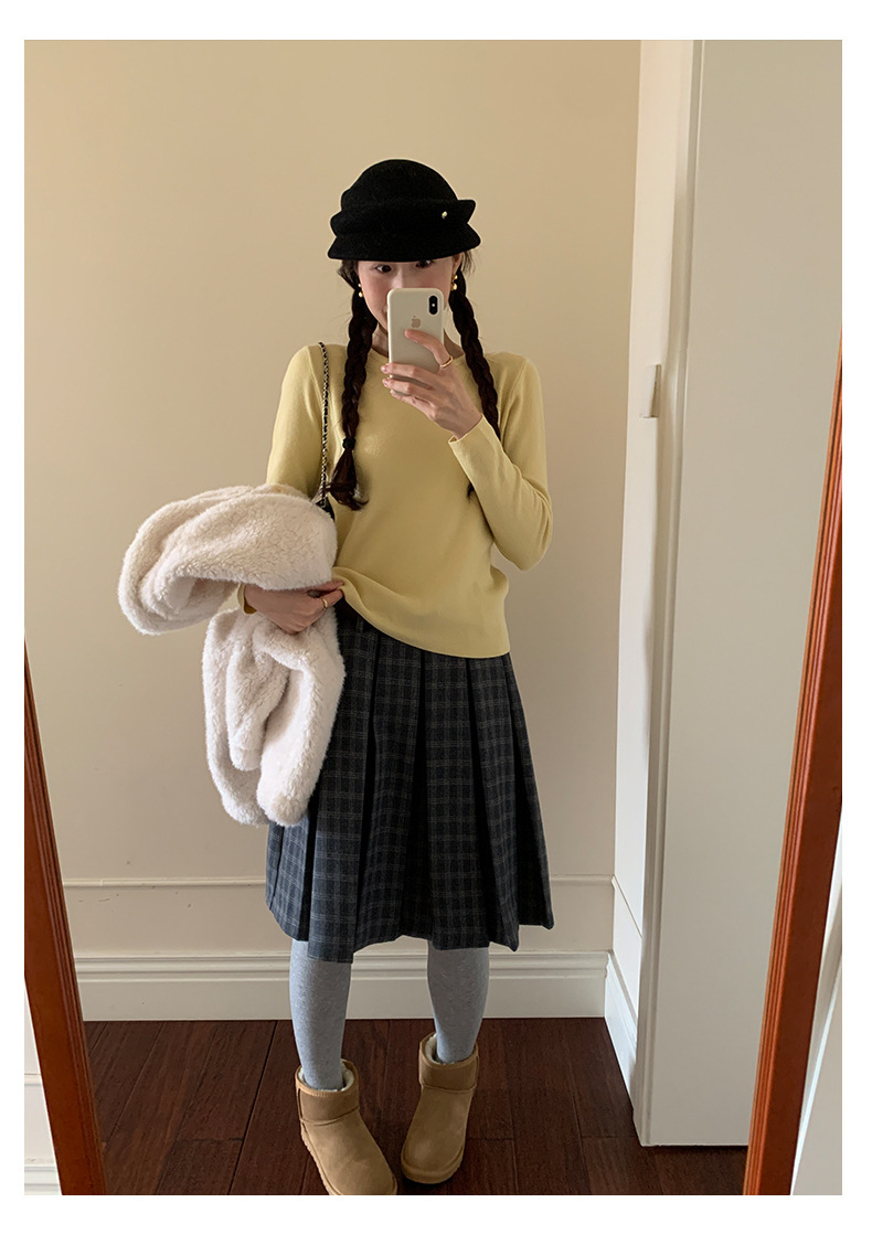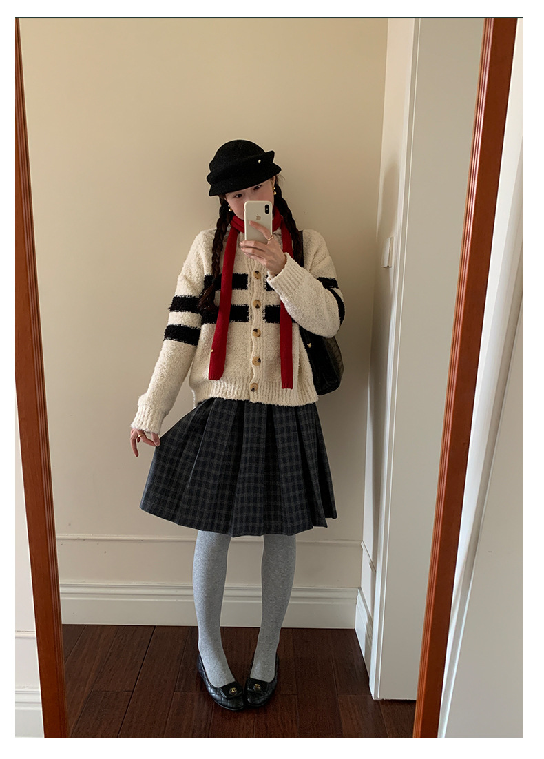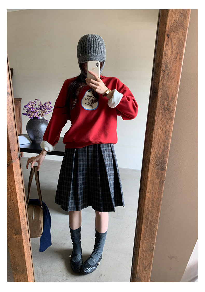 *o-ha-you*【FHZH1GE5041108】學院風復古磨毛格紋百褶裙女冬季韓版高腰短A字傘裙-2色