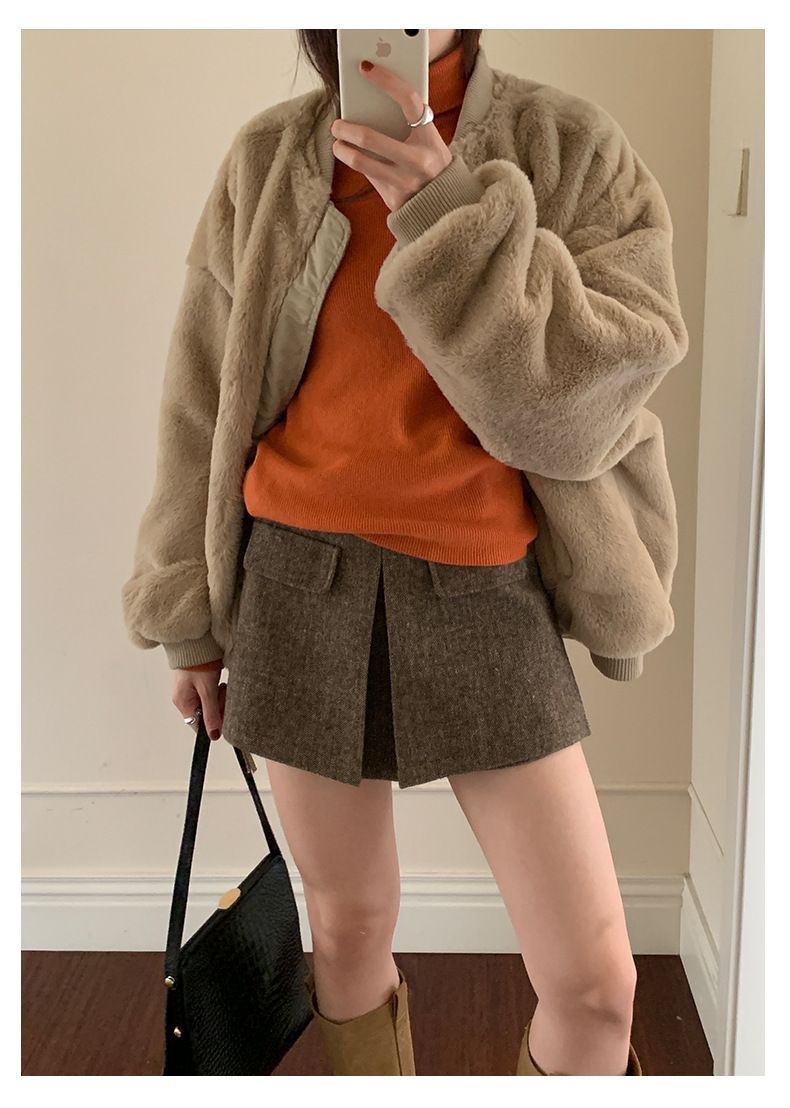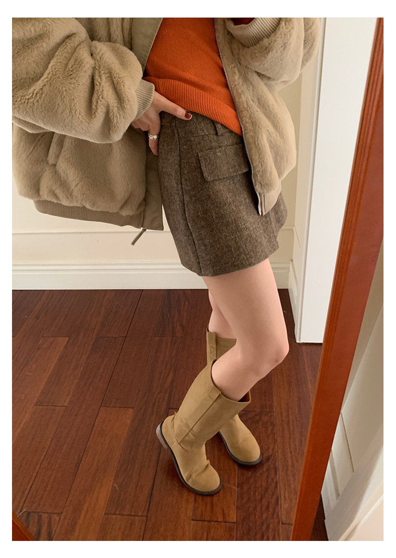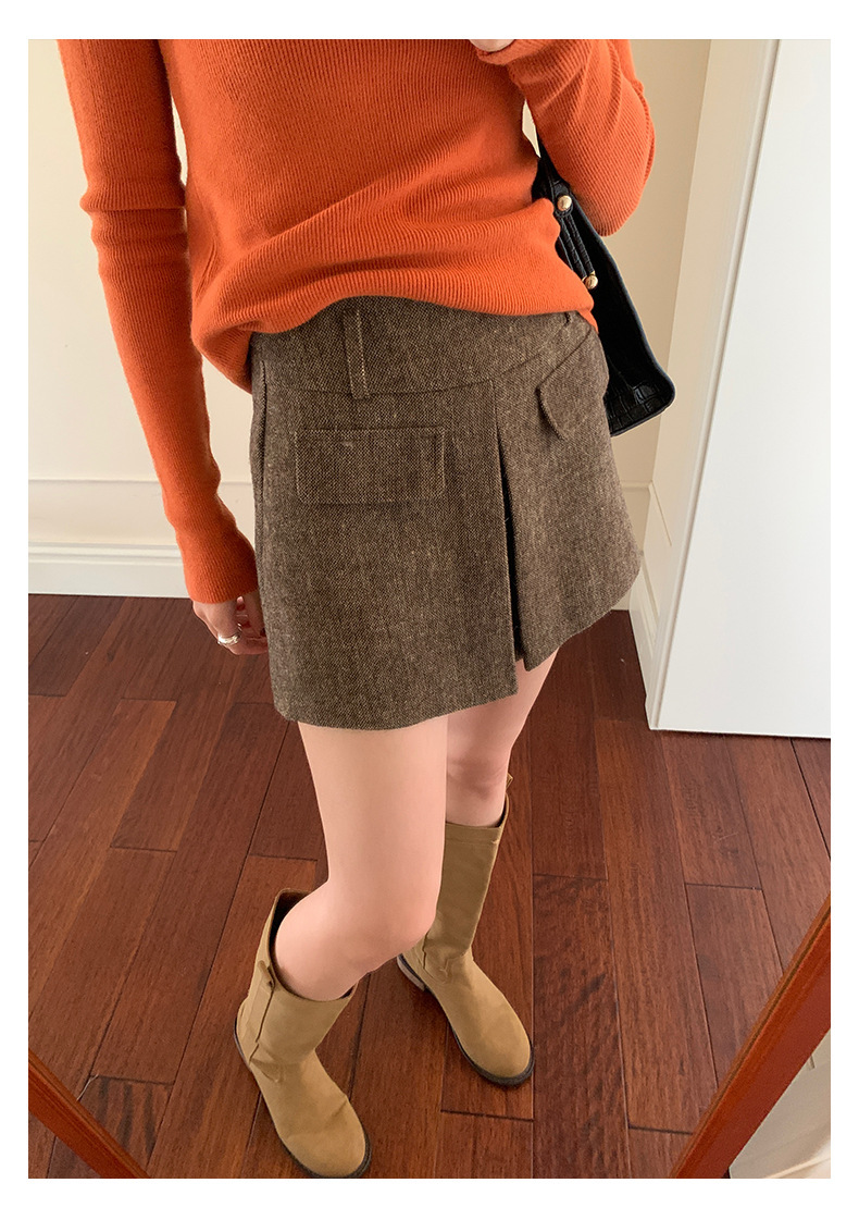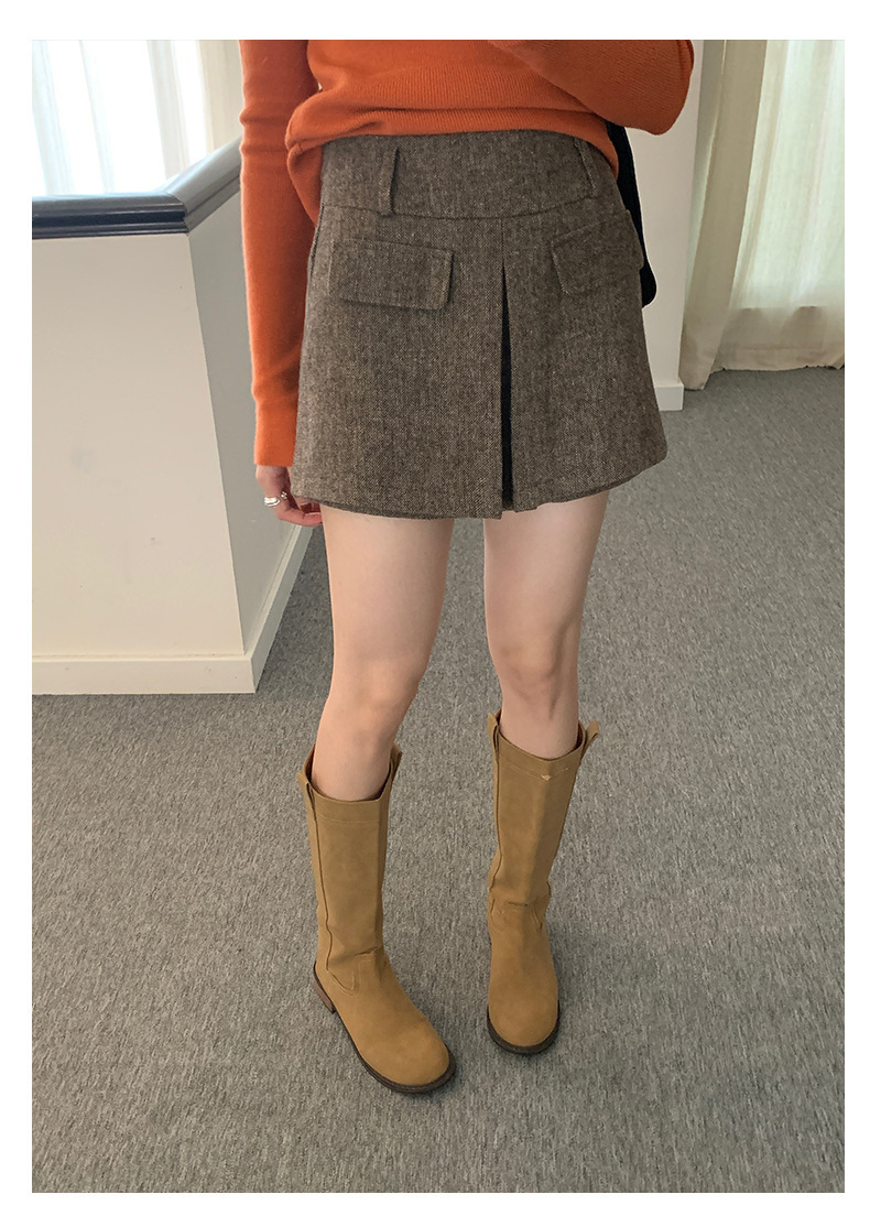 *o-ha-you*【FHZH1GE5041124】小個子質感高腰半身裙褲女冬韓版百搭顯瘦A字包臀短裙-2色