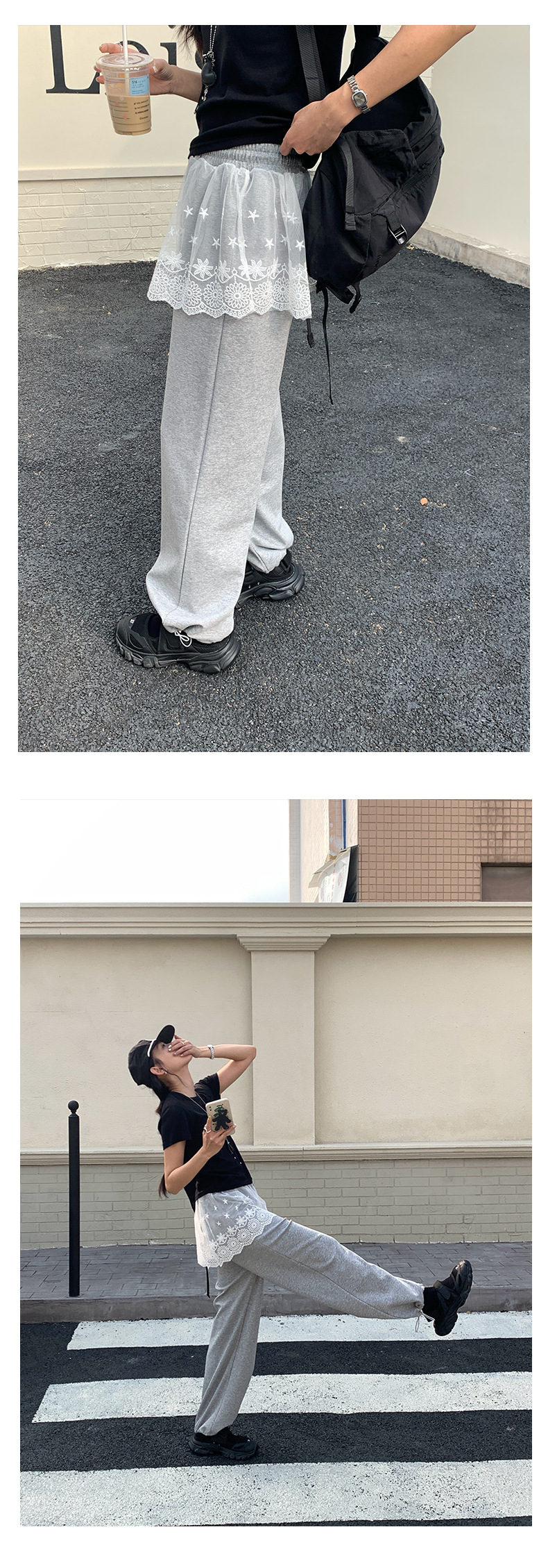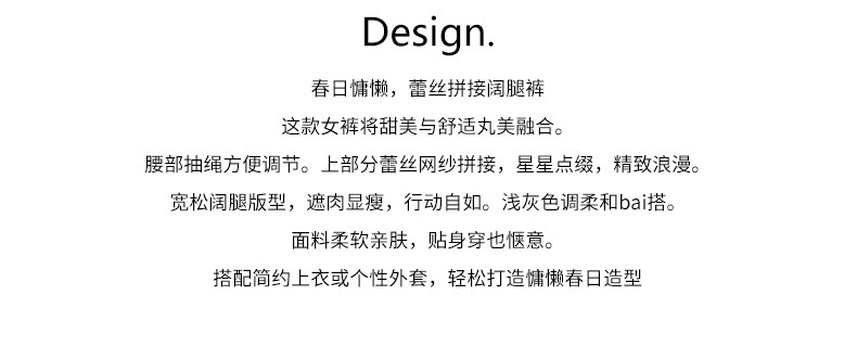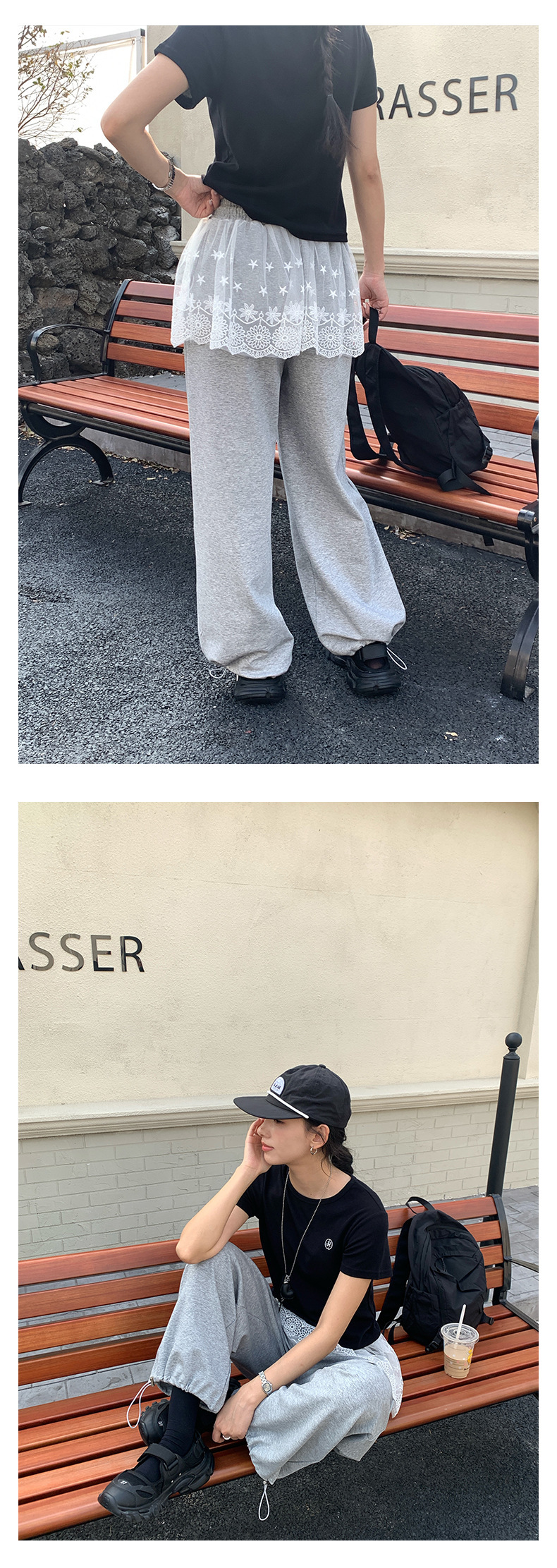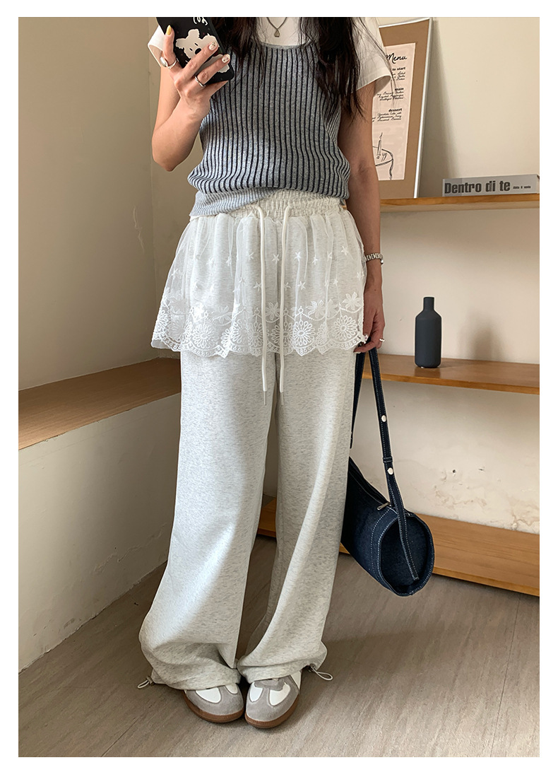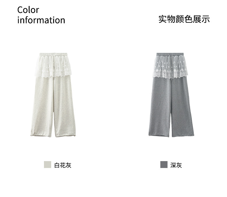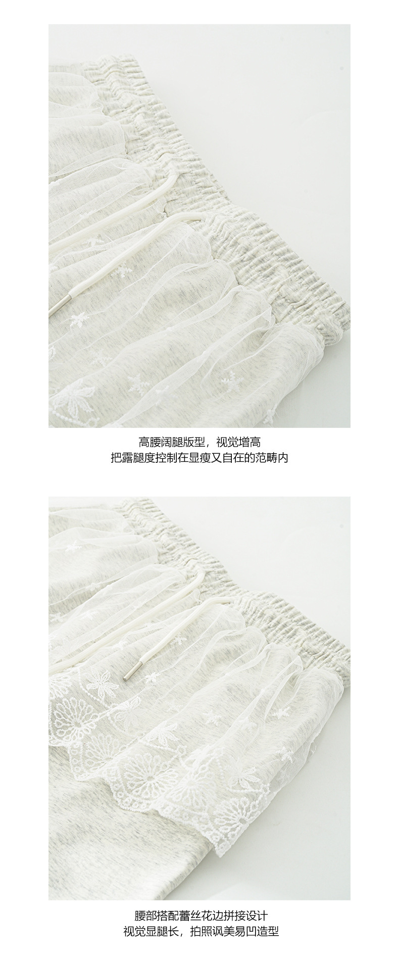 *o-ha-you*【FHZH1GF5010210】蕾絲網紗拼接抽繩闊腿休閒女褲2025春款舒適慵懶風衛褲-2色-如有需要請先諮詢