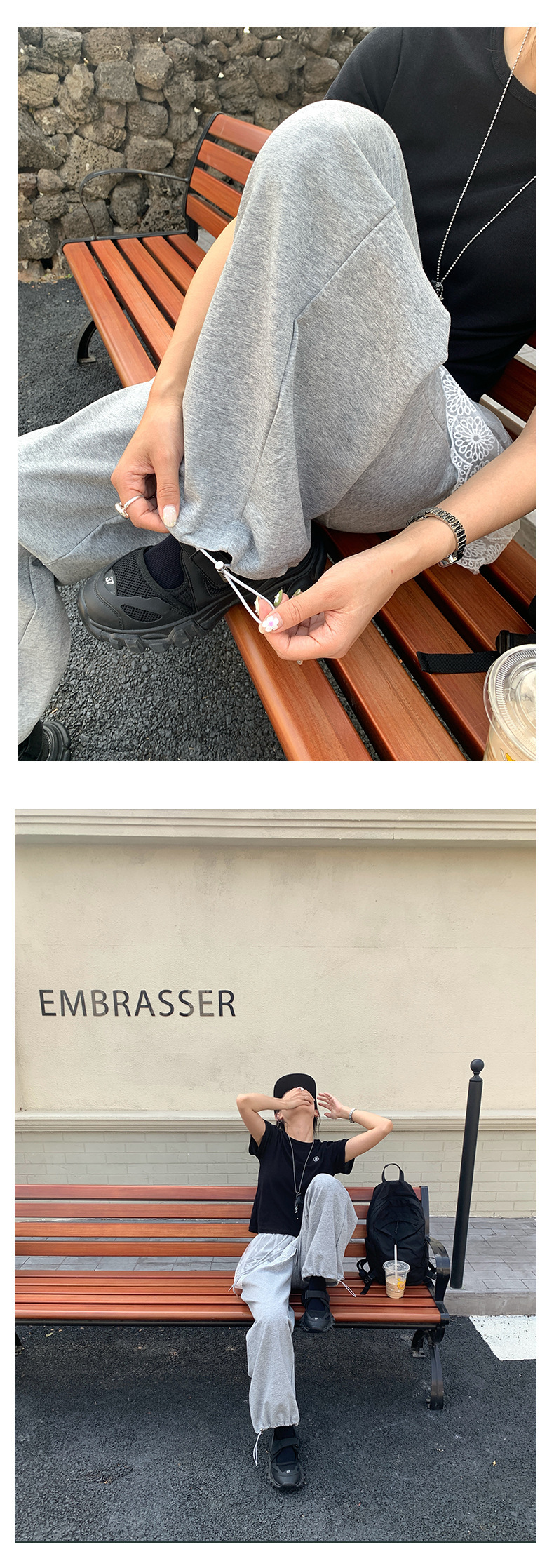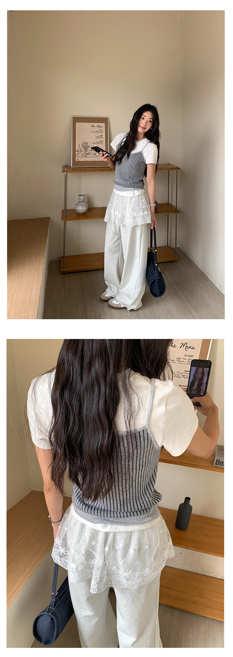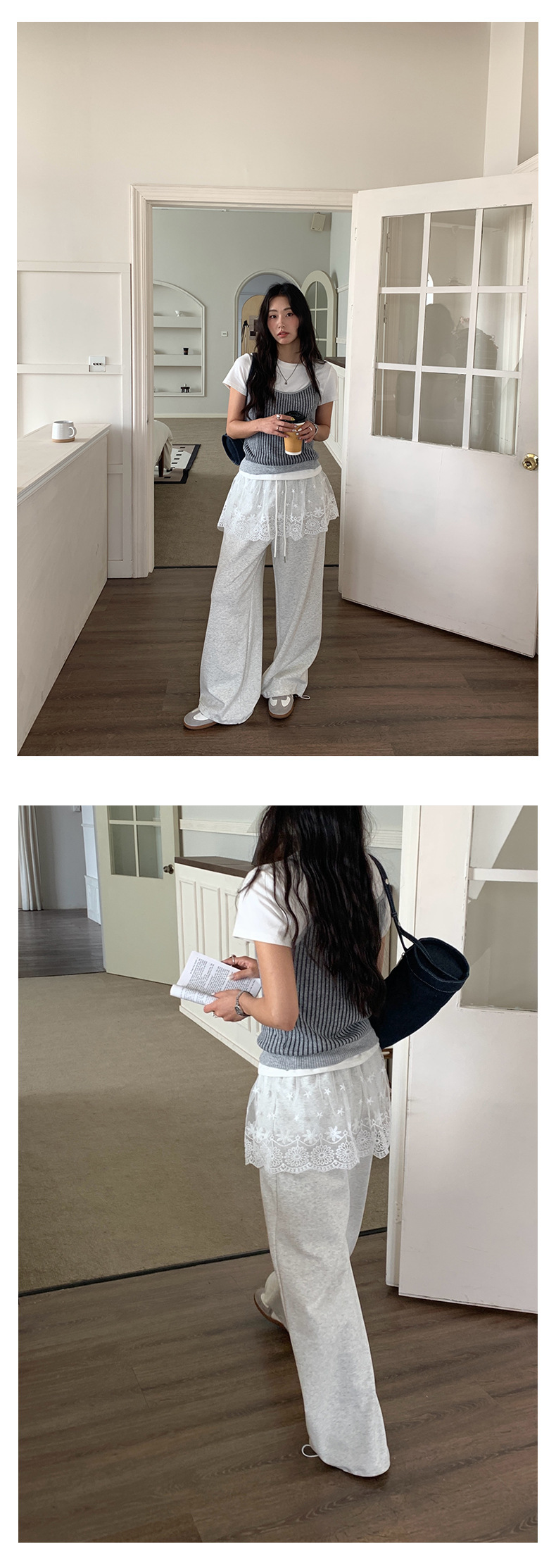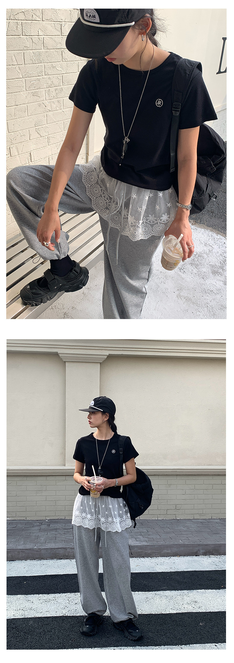 *o-ha-you*【FHZH1GF5010210】蕾絲網紗拼接抽繩闊腿休閒女褲2025春款舒適慵懶風衛褲-2色-如有需要請先諮詢