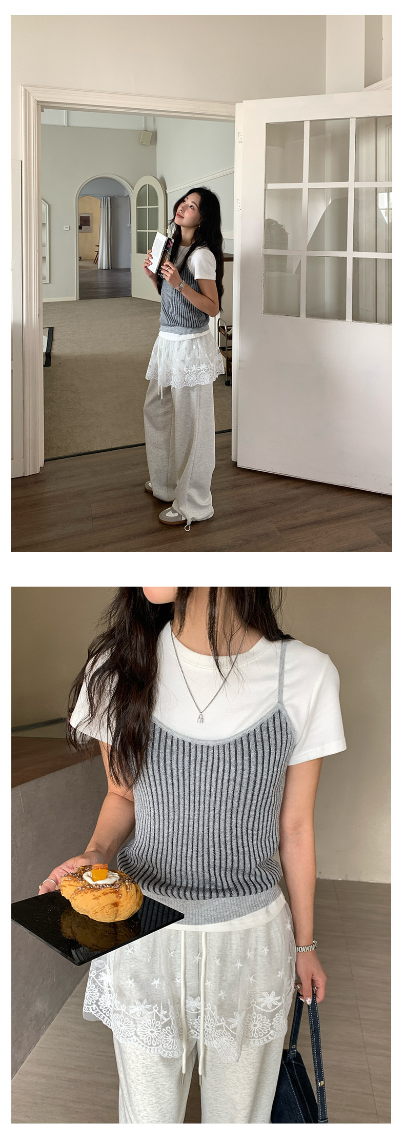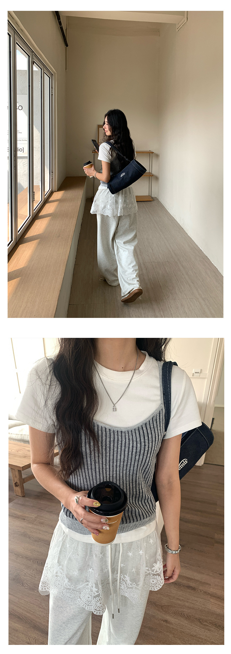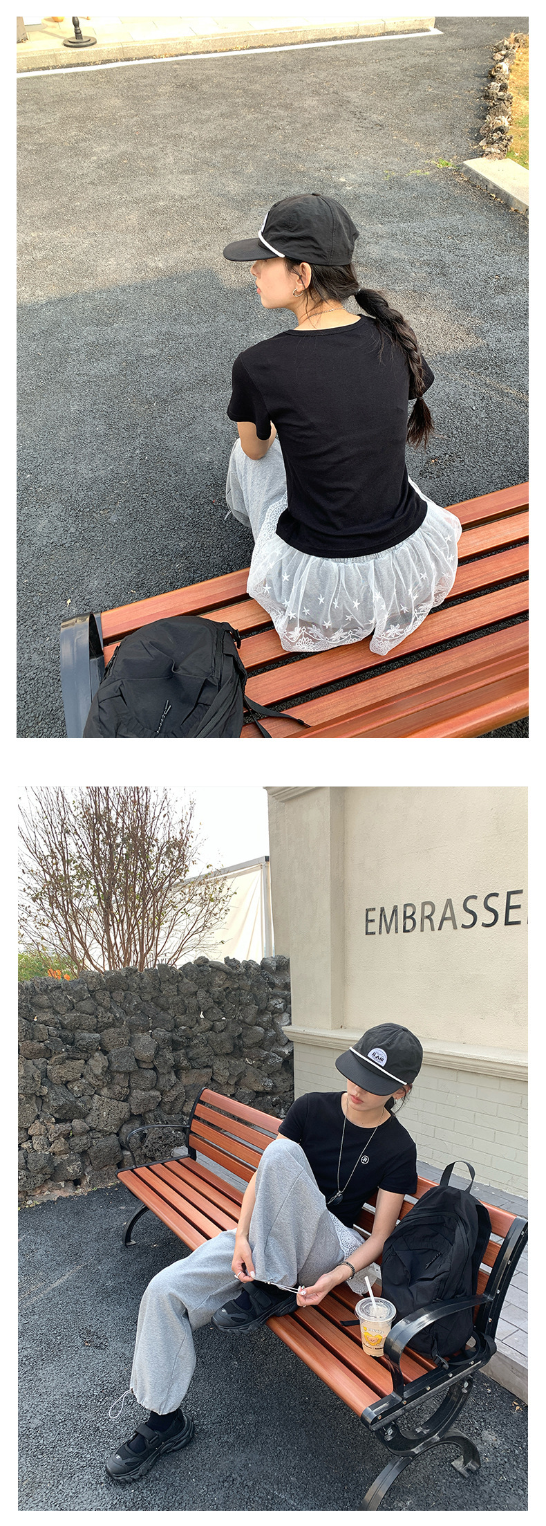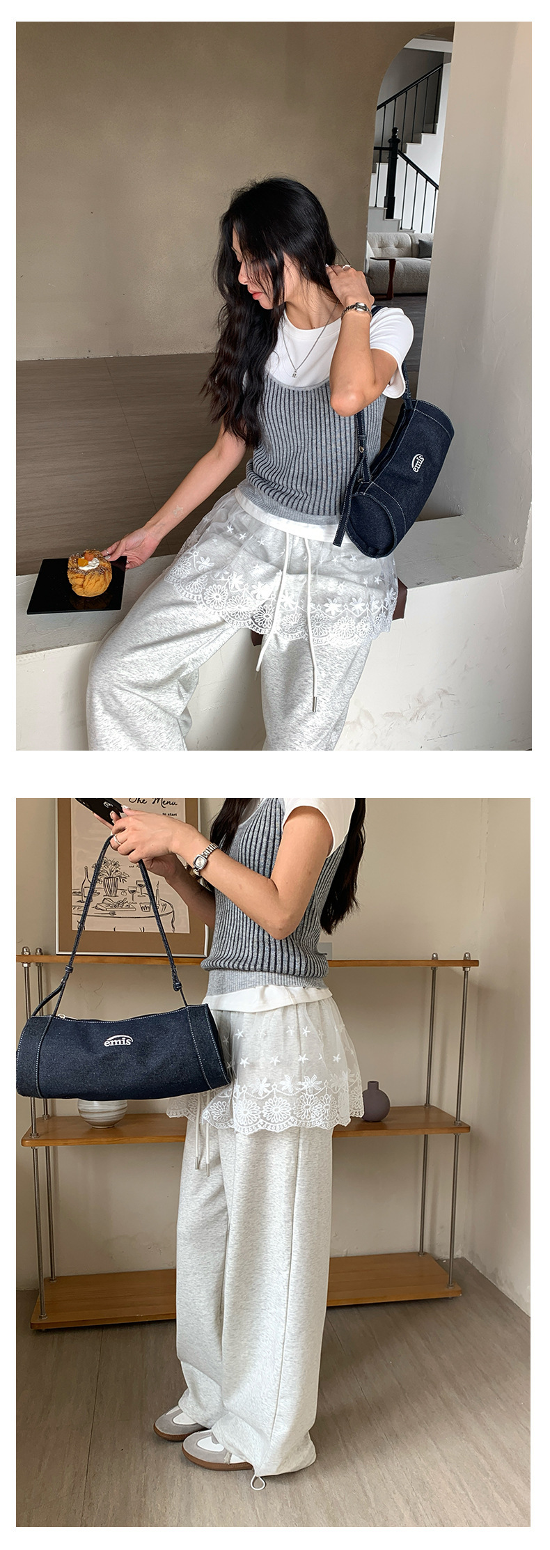 *o-ha-you*【FHZH1GF5010210】蕾絲網紗拼接抽繩闊腿休閒女褲2025春款舒適慵懶風衛褲-2色-如有需要請先諮詢