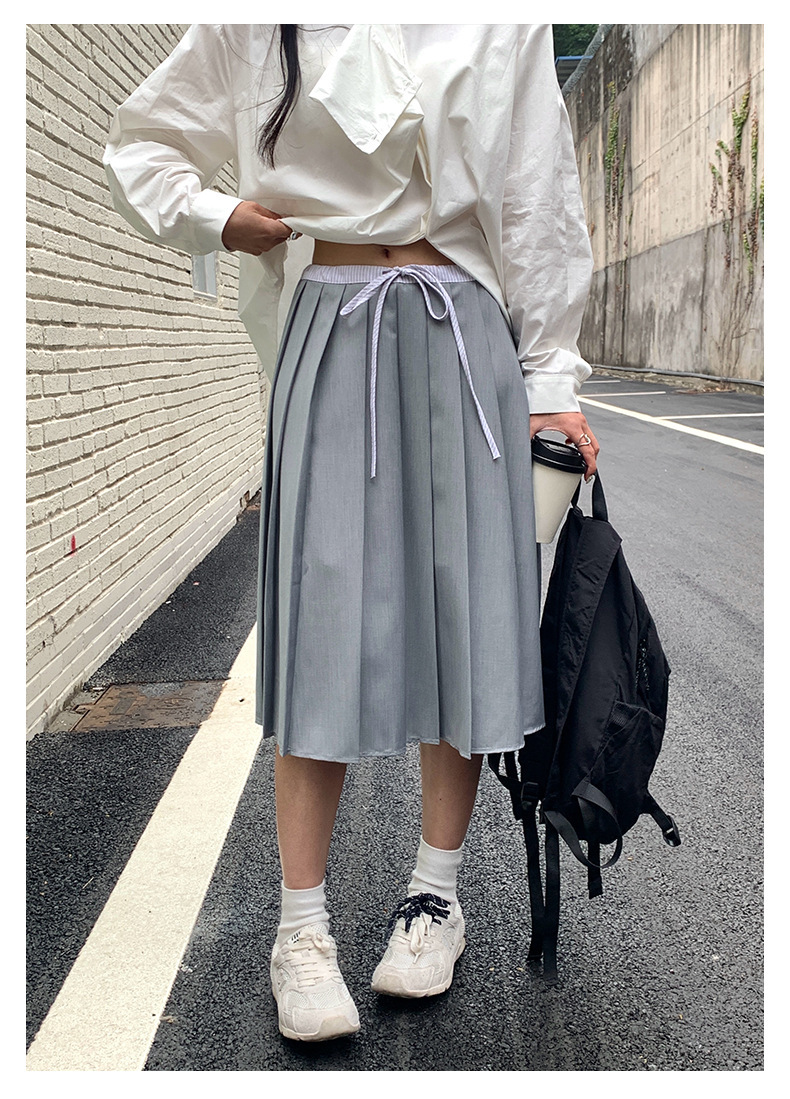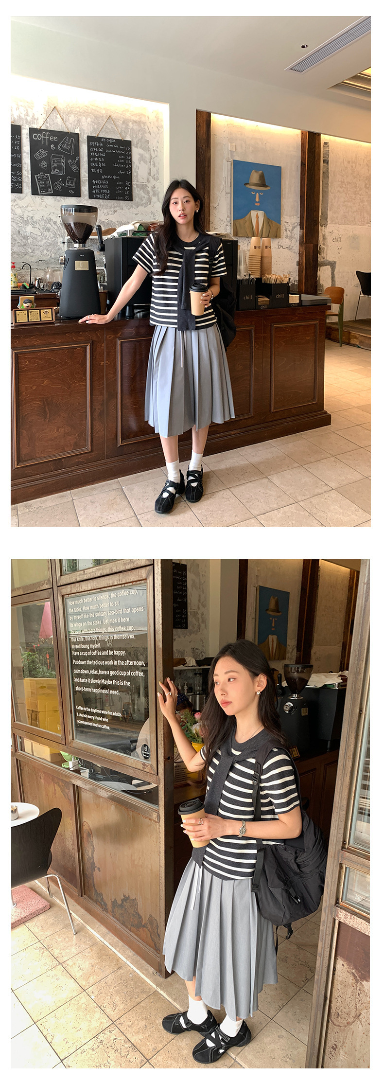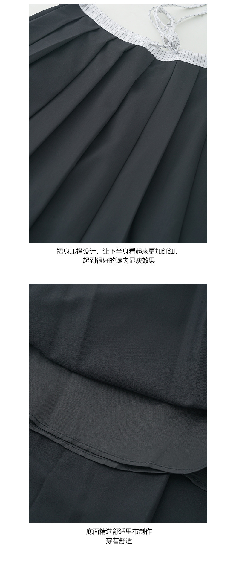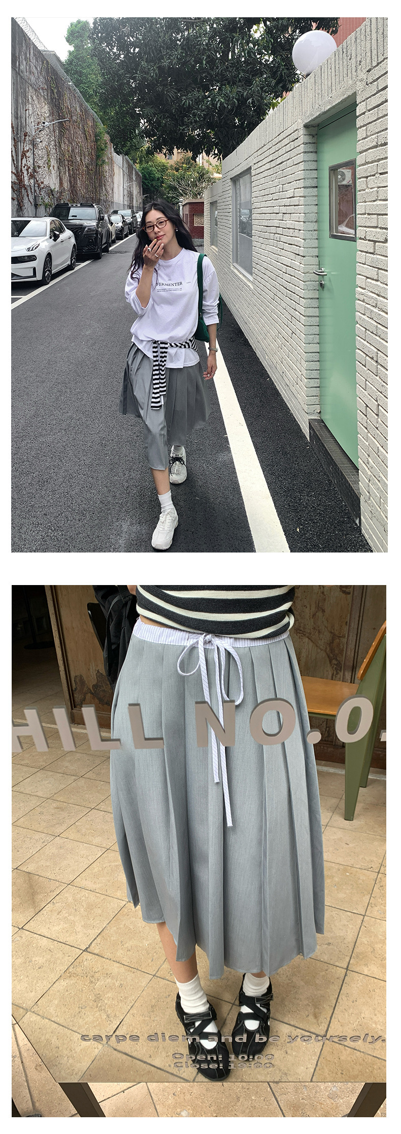 *o-ha-you*【FHZH1GF5010219】條紋抽繩腰百褶中長半身裙2025春甜美清新百搭美裙-2色-如有需要請先諮詢
