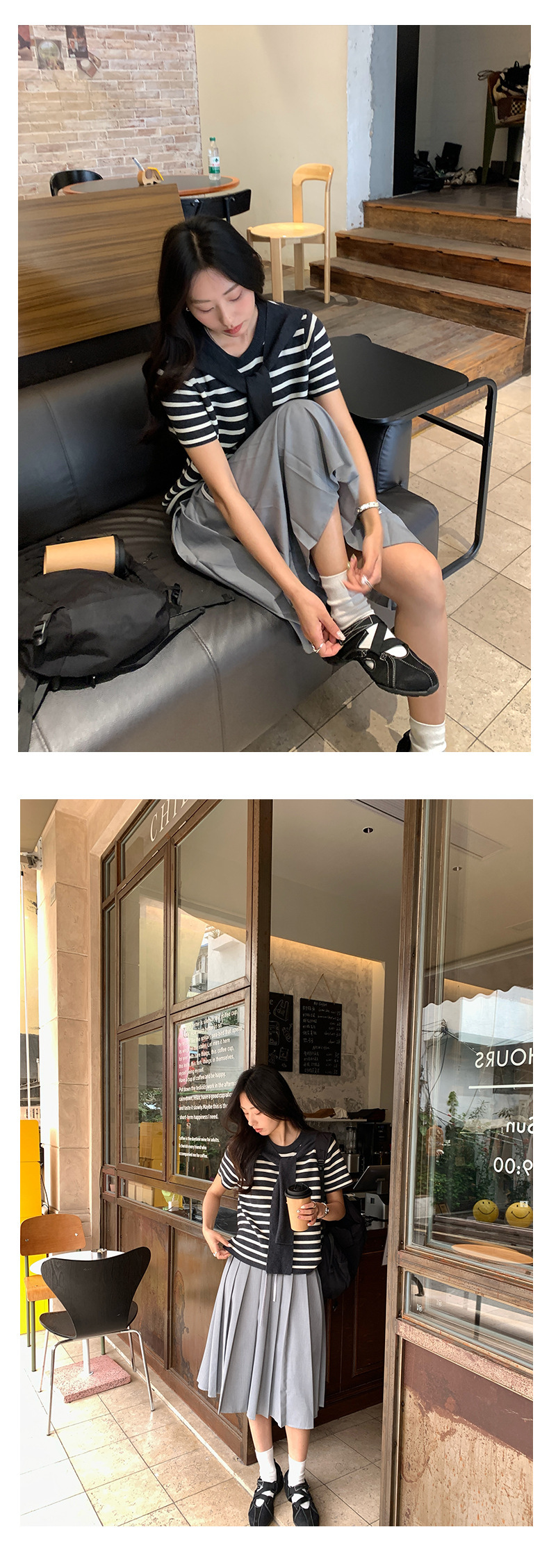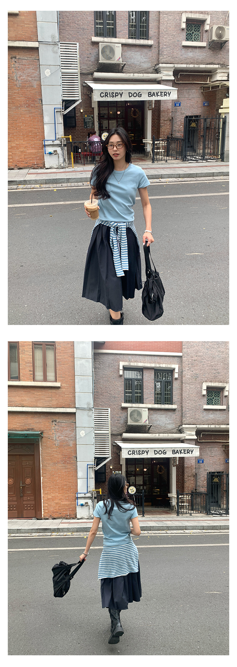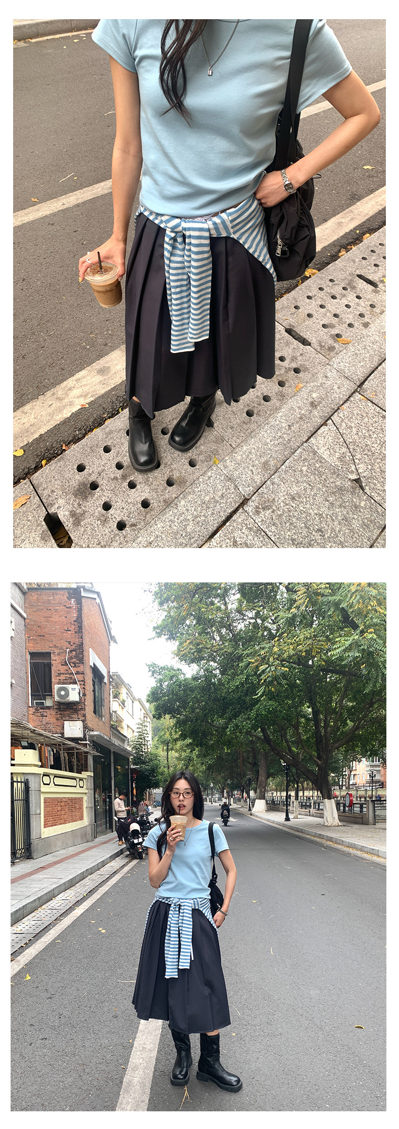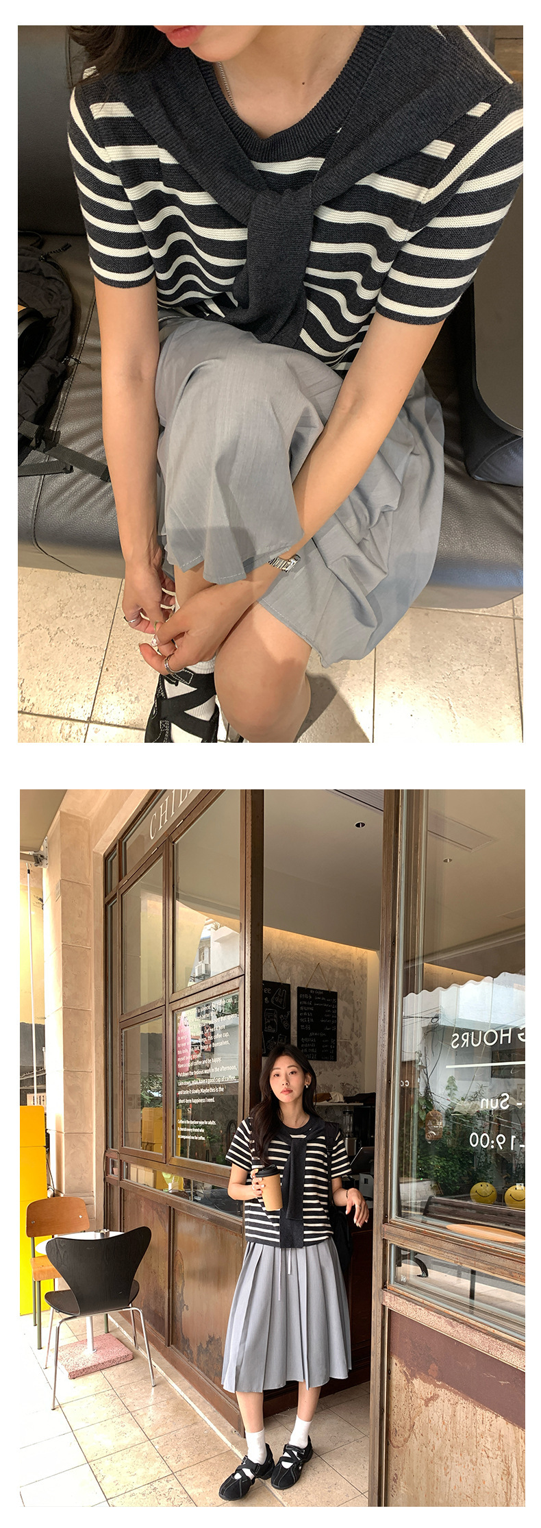 *o-ha-you*【FHZH1GF5010219】條紋抽繩腰百褶中長半身裙2025春甜美清新百搭美裙-2色-如有需要請先諮詢