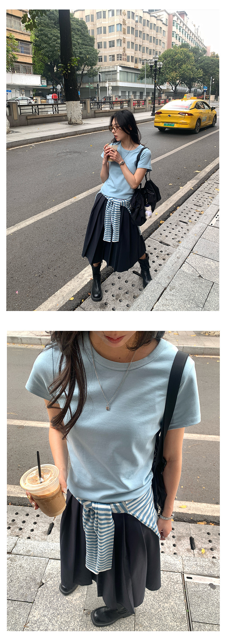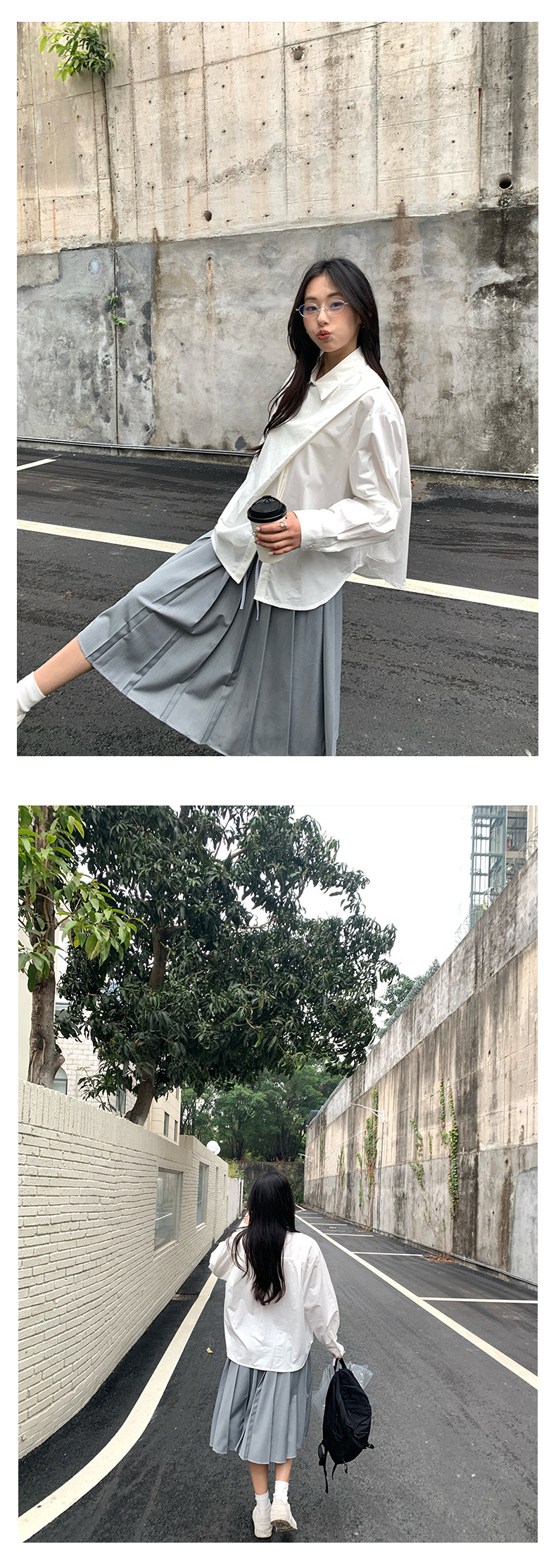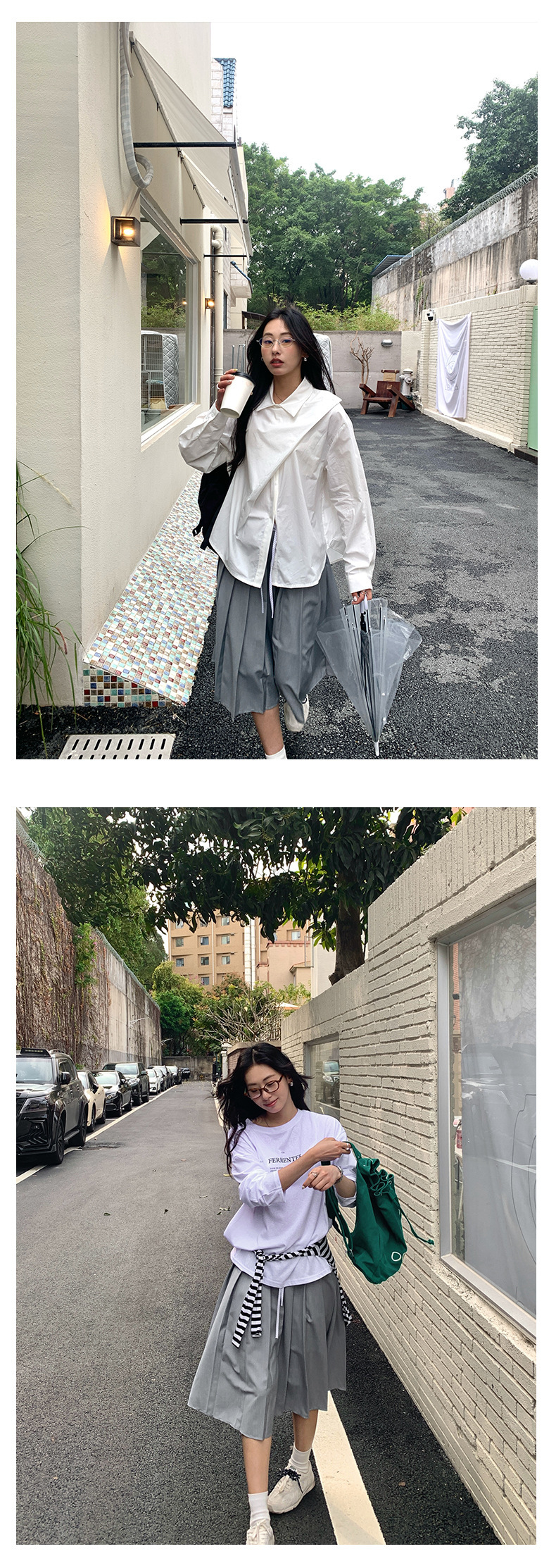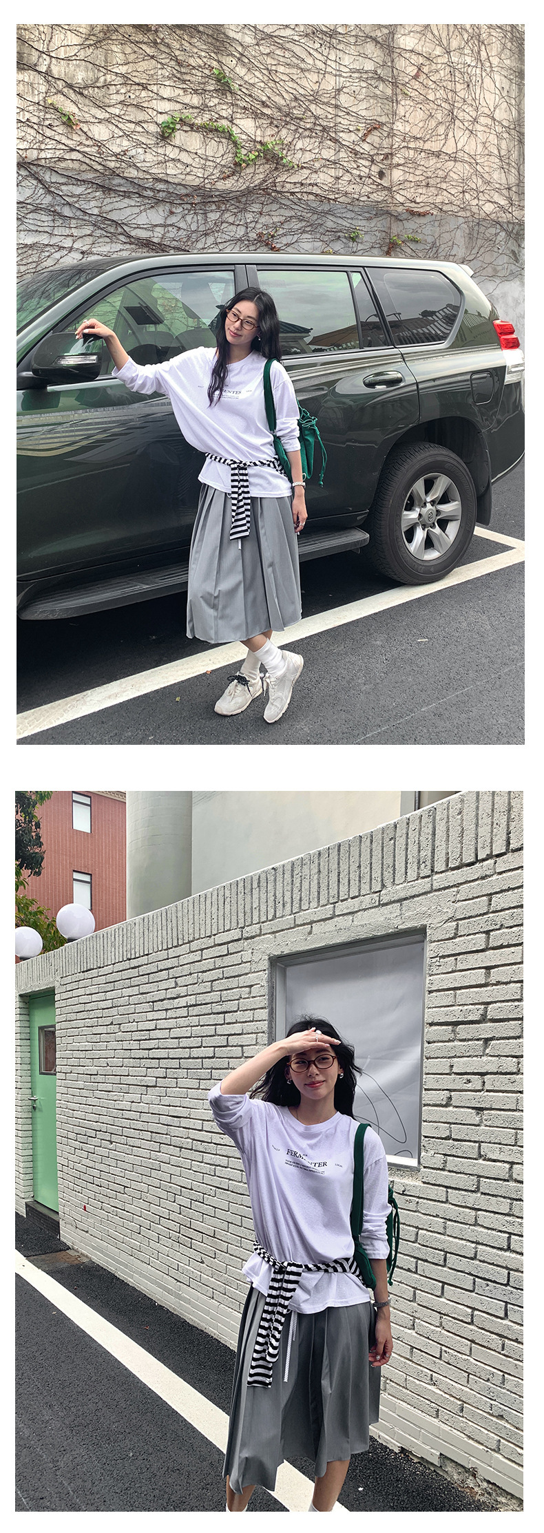 *o-ha-you*【FHZH1GF5010219】條紋抽繩腰百褶中長半身裙2025春甜美清新百搭美裙-2色-如有需要請先諮詢