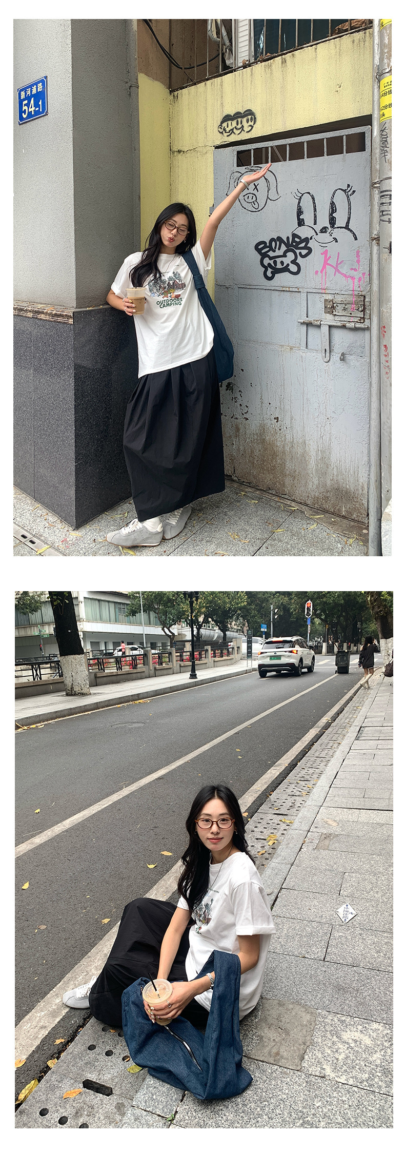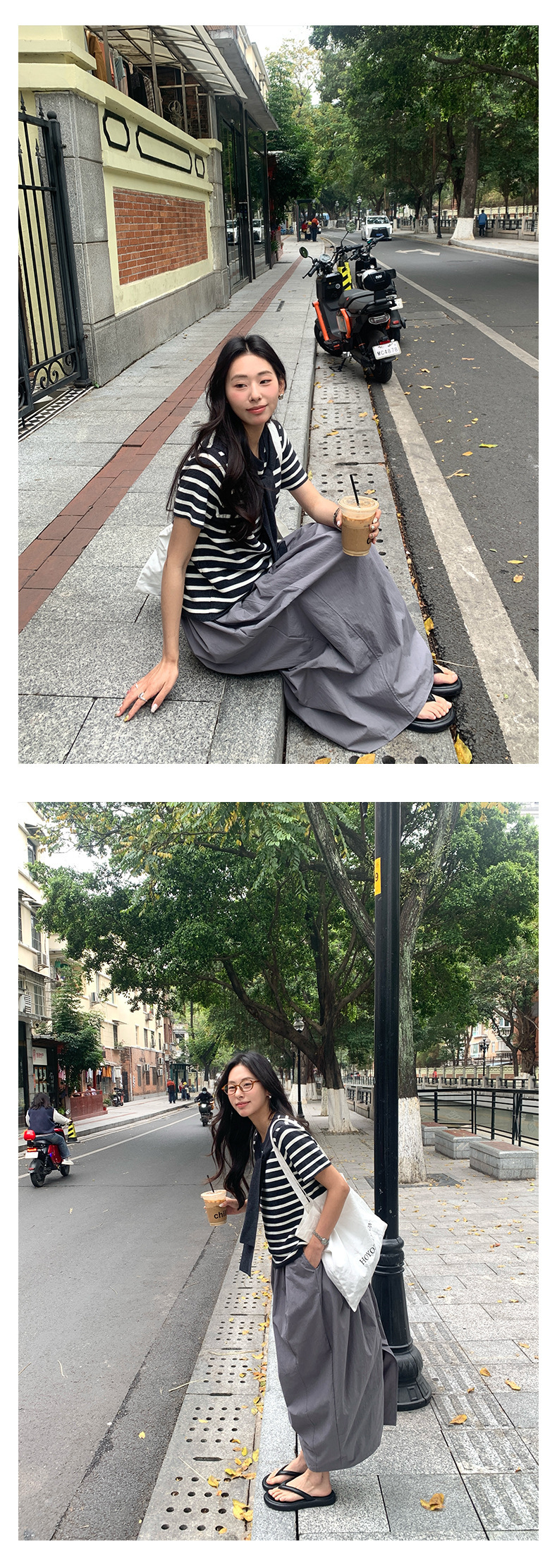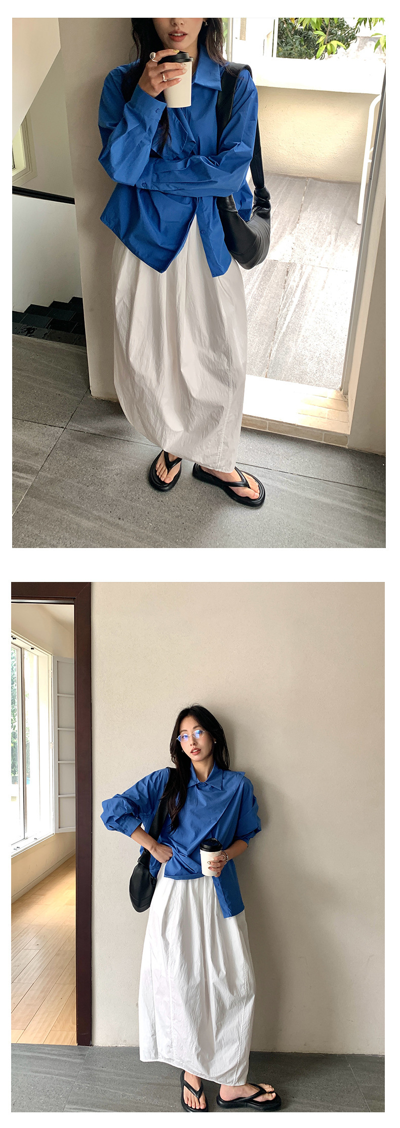 *o-ha-you*【FHZH1GF5010225】直筒腰寬鬆大擺垂墜感長款半身裙25春夏優雅隨性美裙-3色