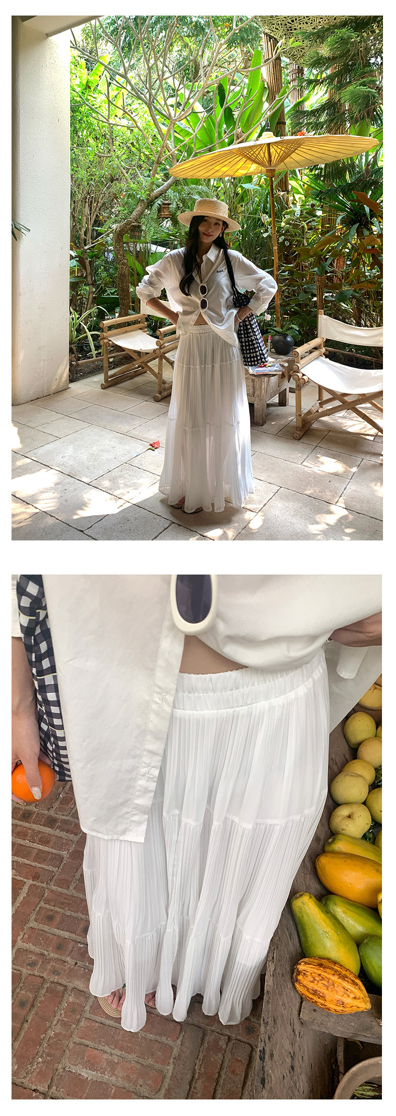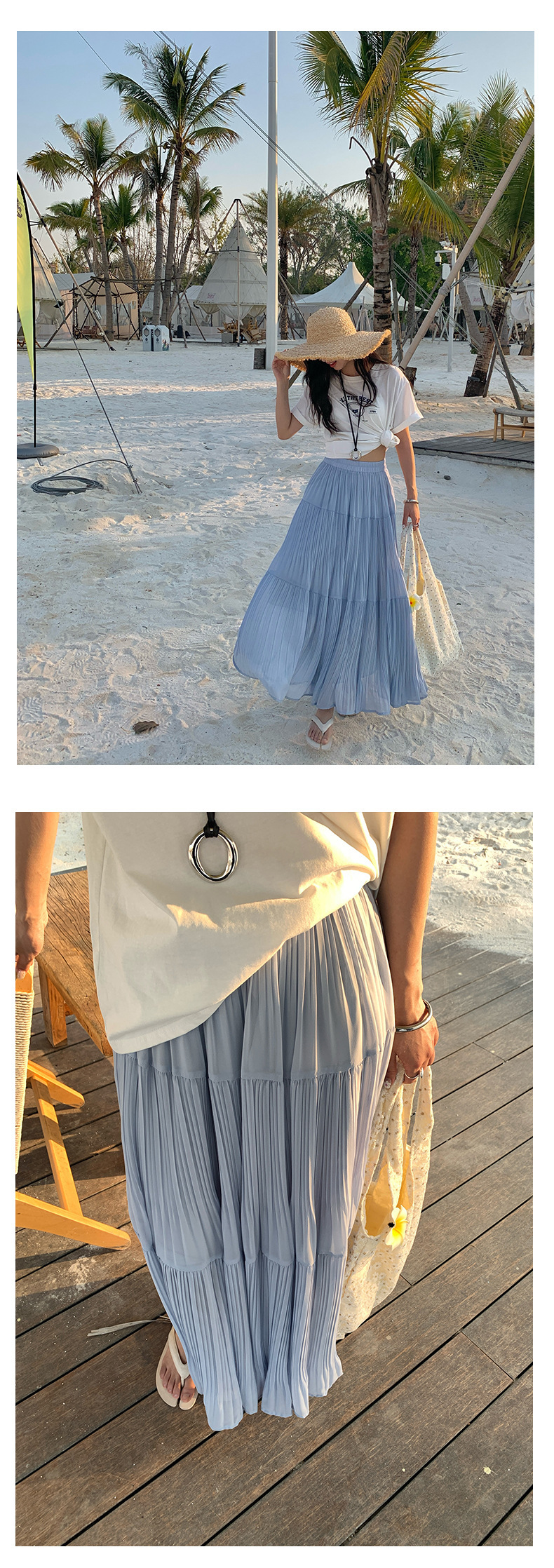 *o-ha-you*【FHZH1GF5020262】鬆緊腰多層百褶設計飄逸半身裙2025夏款溫柔浪漫款-4色-如有需要請先諮詢