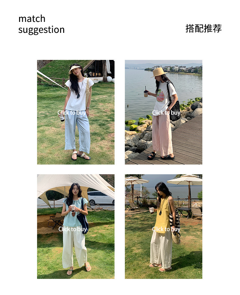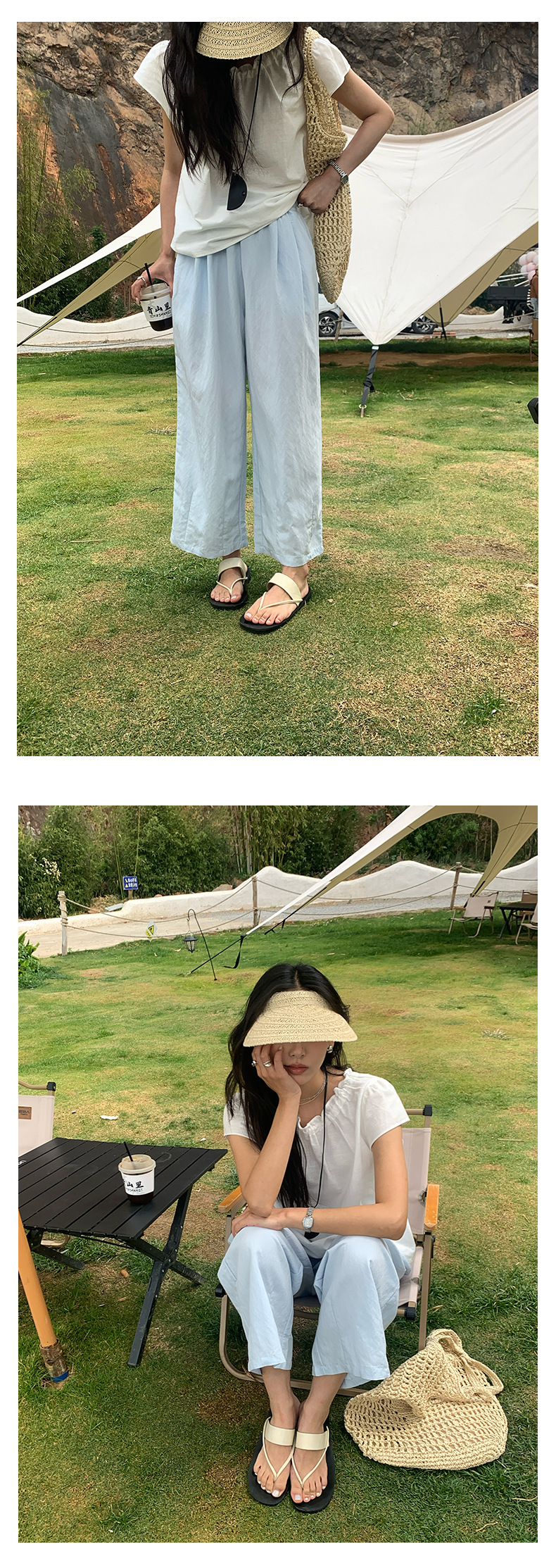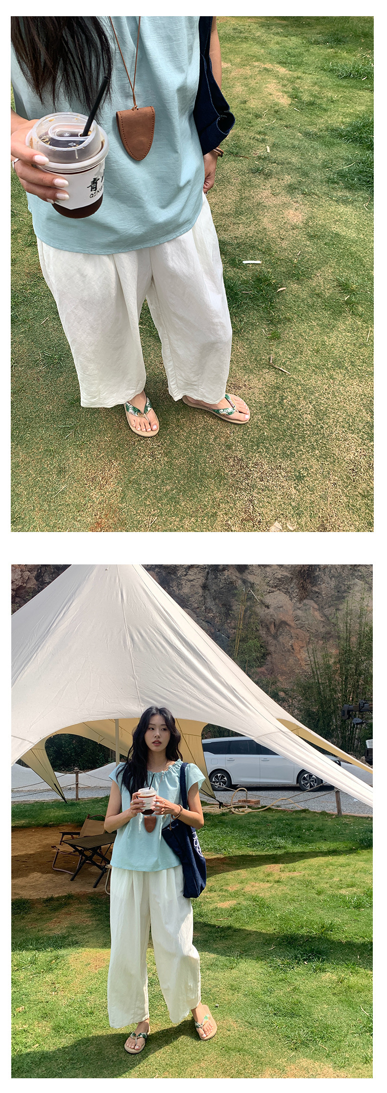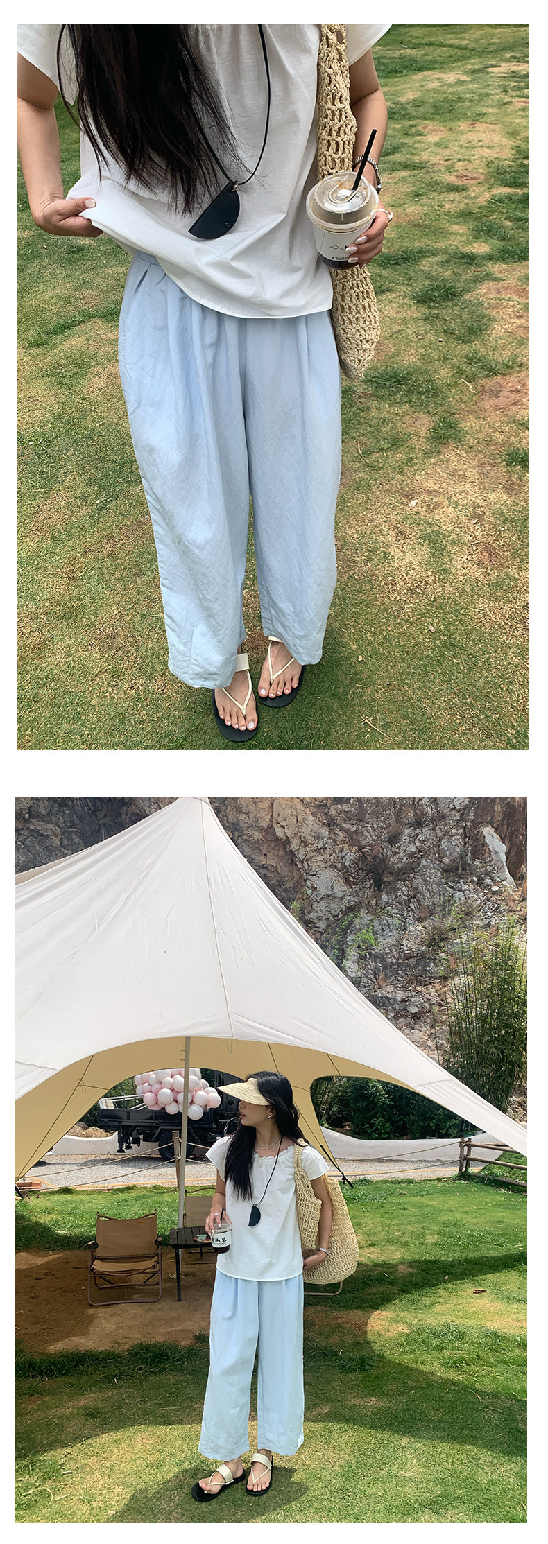 *o-ha-you*【FHZH1GF5020350】鬆緊腰褶皺設計寬鬆直筒闊腿休閒褲2025夏款休閒舒適-3色-如有需要請先諮詢