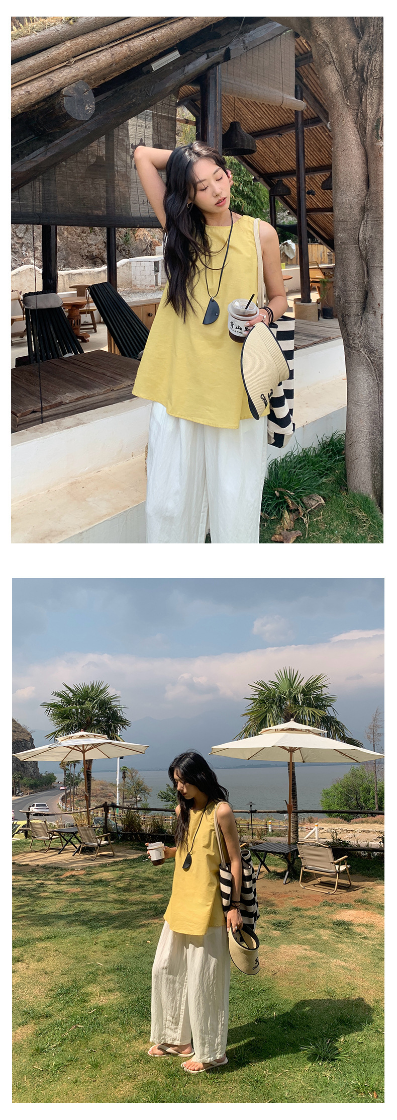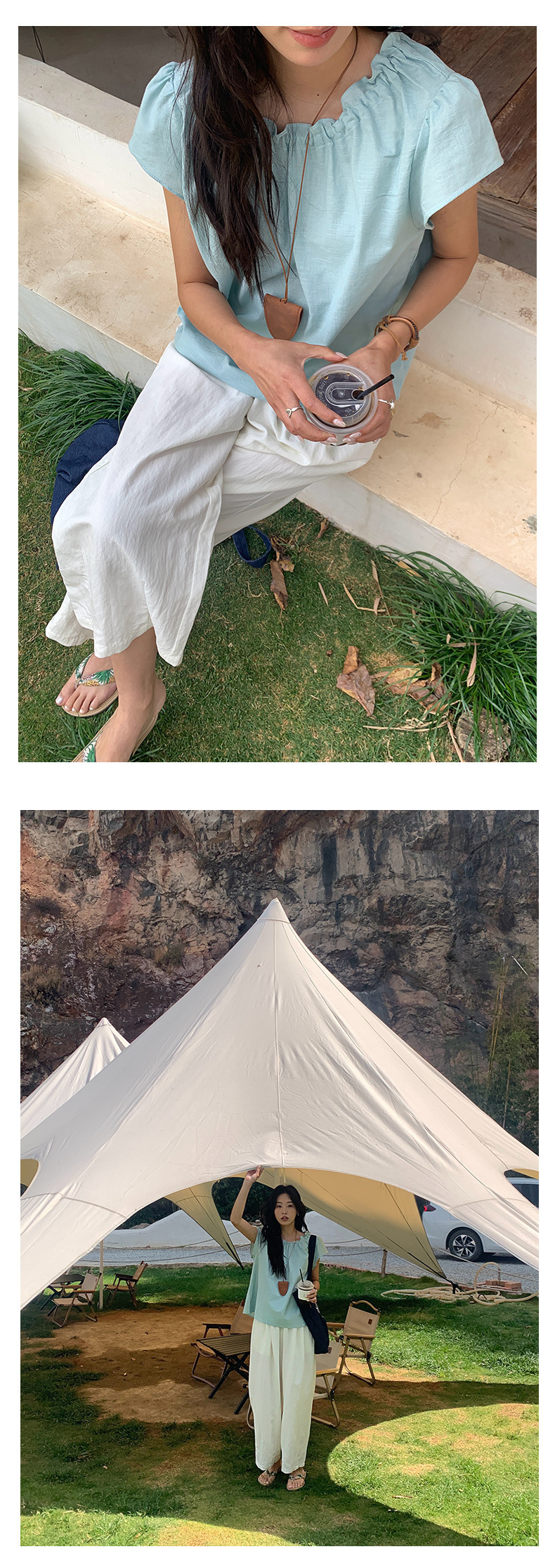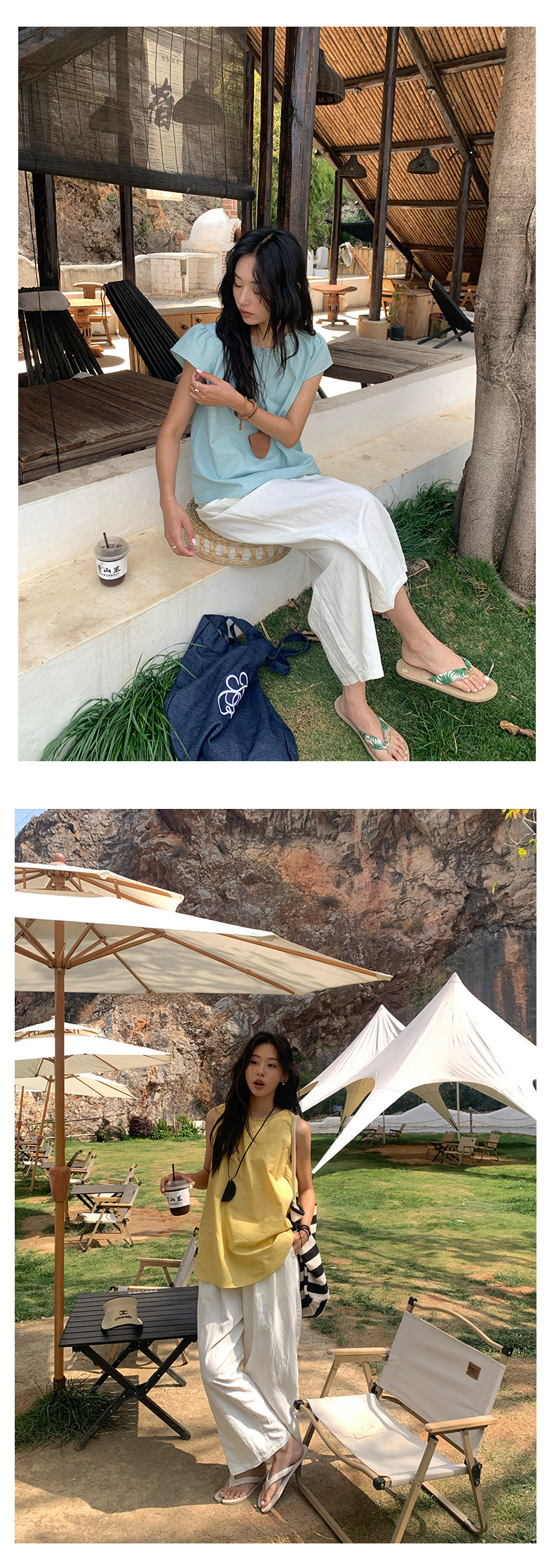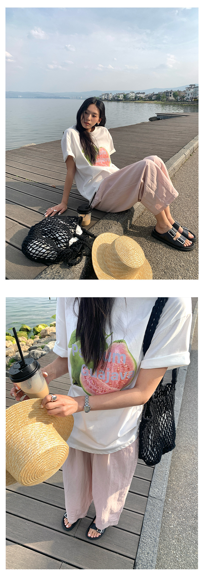 *o-ha-you*【FHZH1GF5020350】鬆緊腰褶皺設計寬鬆直筒闊腿休閒褲2025夏款休閒舒適-3色-如有需要請先諮詢