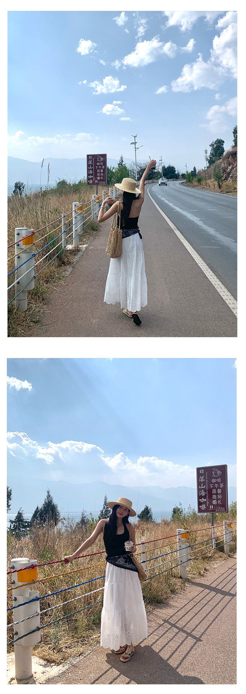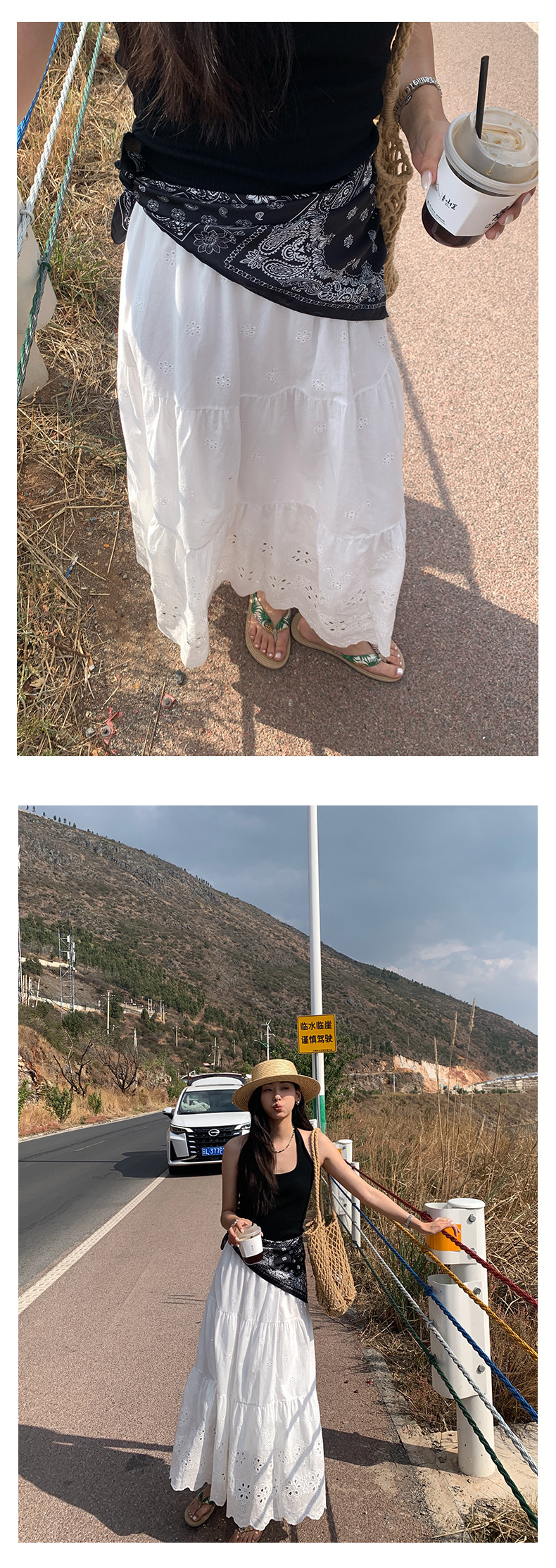 *o-ha-you*【FHZH1GF5020400】鬆緊腰荷葉邊鏤空刺繡白色半身裙2025夏浪漫甜美長裙-如有需要請先諮詢