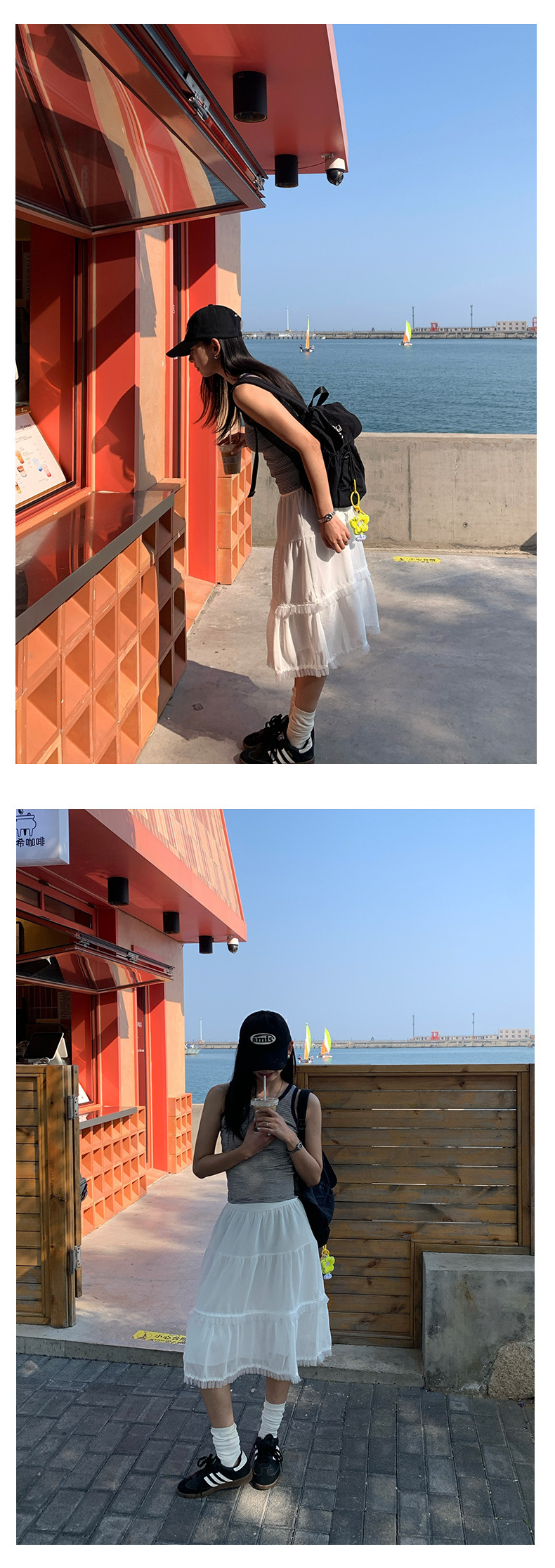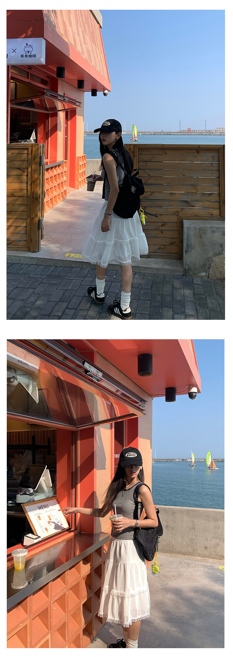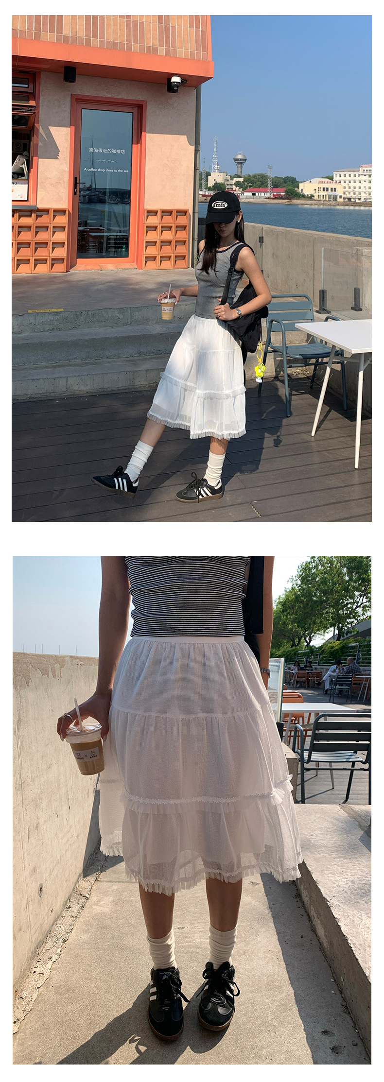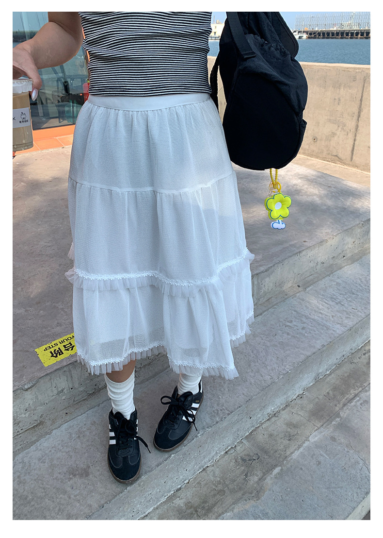 *o-ha-you*【FHZH1GF5020662】韓版夏季新款白色休閒顯瘦半身裙網紗邊高腰顯瘦短裙