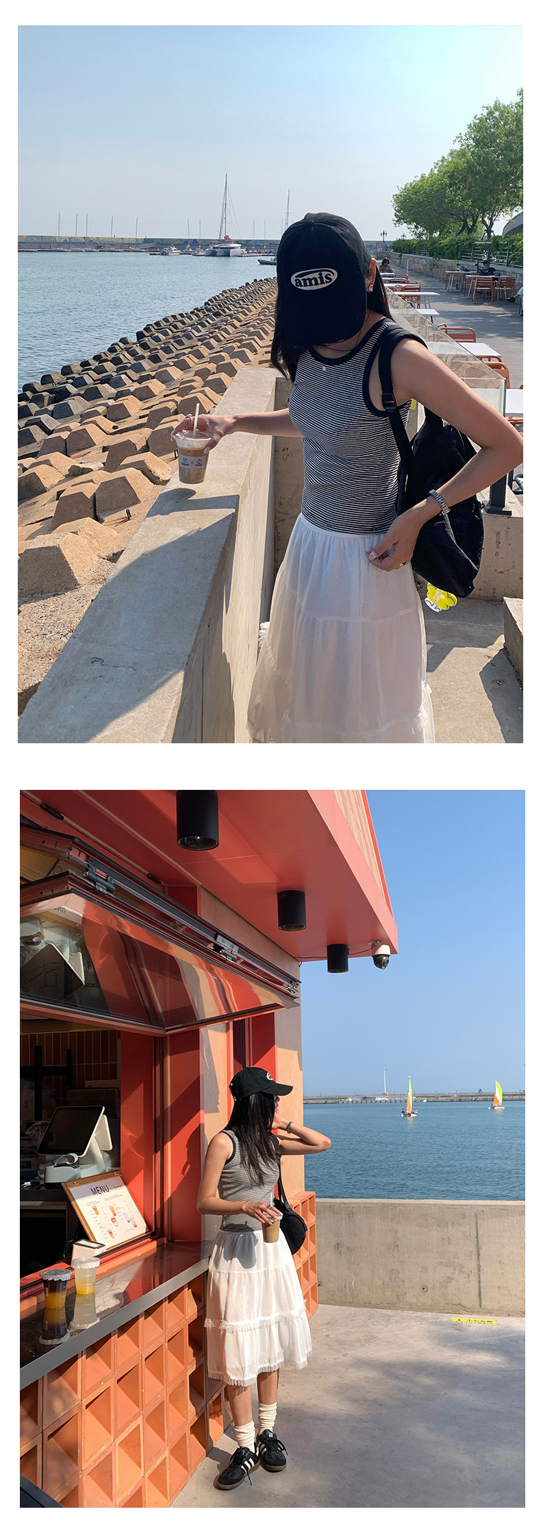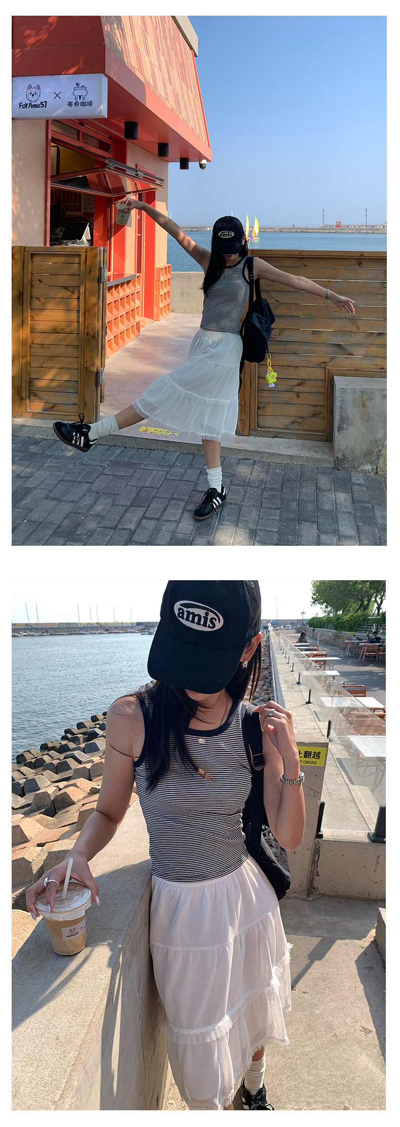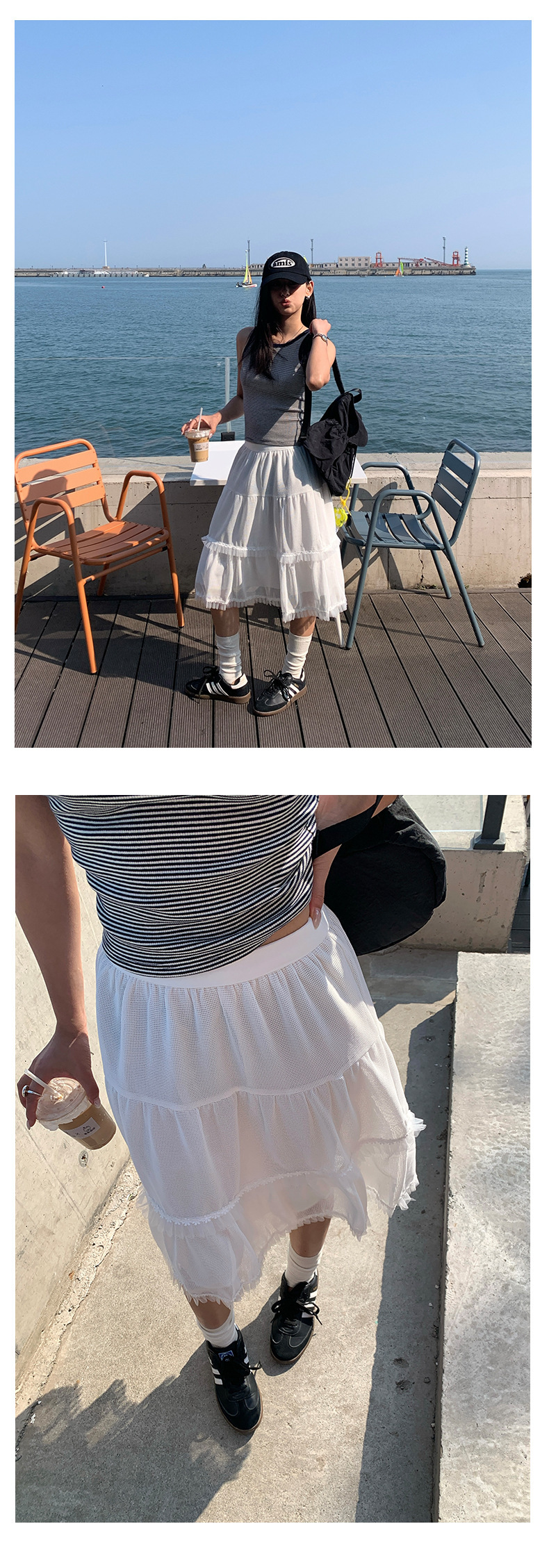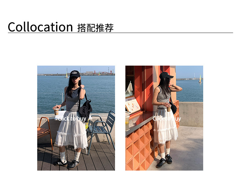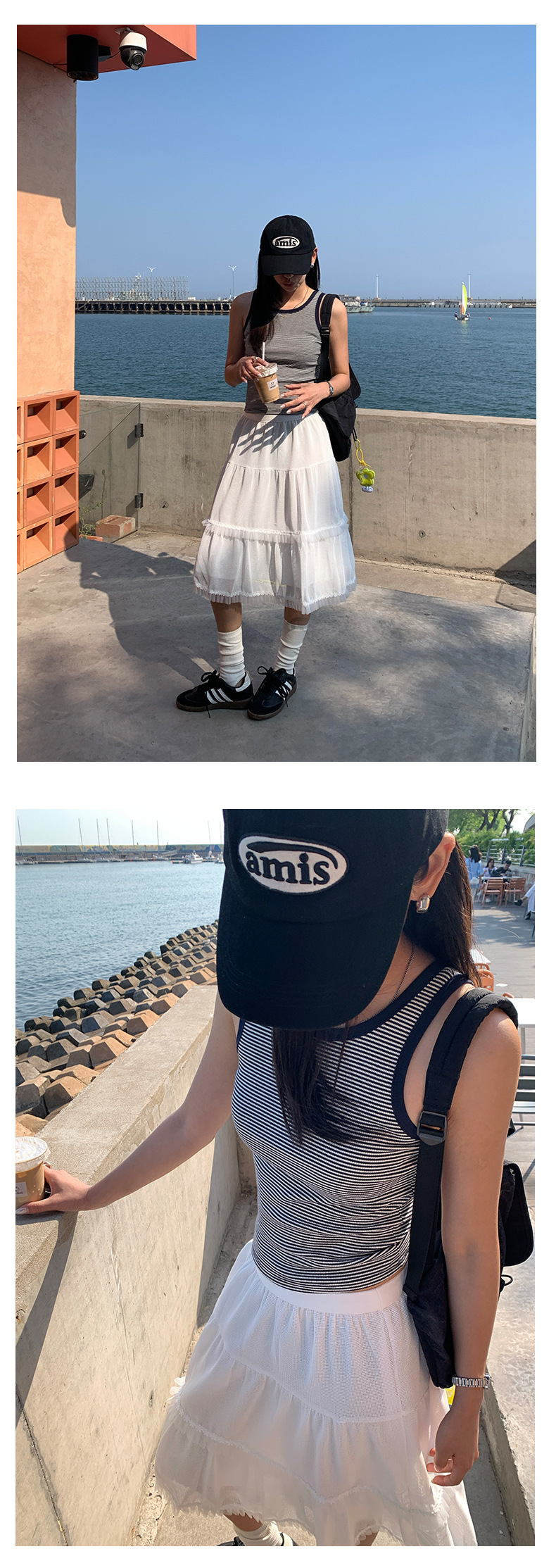 *o-ha-you*【FHZH1GF5020662】韓版夏季新款白色休閒顯瘦半身裙網紗邊高腰顯瘦短裙