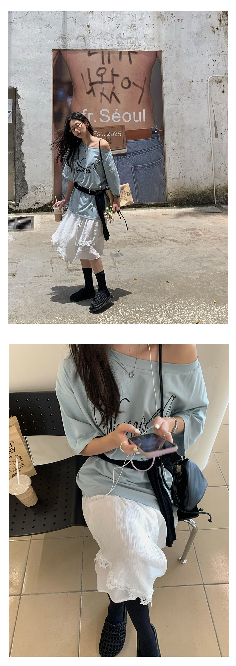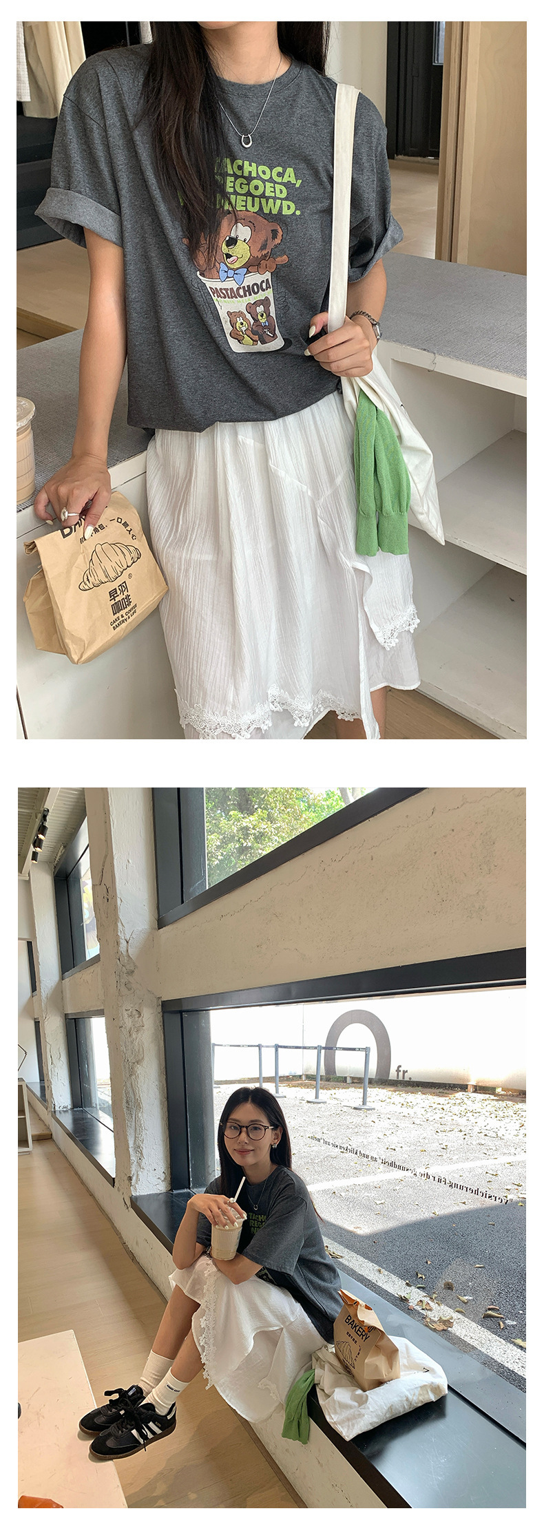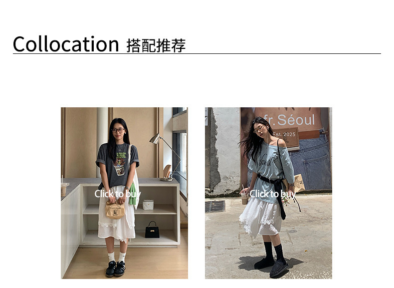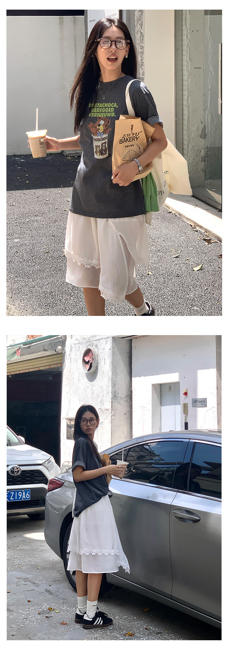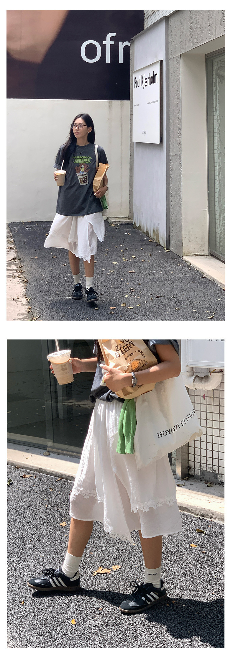 *o-ha-you*【FHZH1GF5020682】韓版夏季新款百搭甜美帶花邊印好看長裙風情萬種半身裙