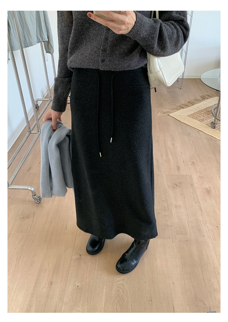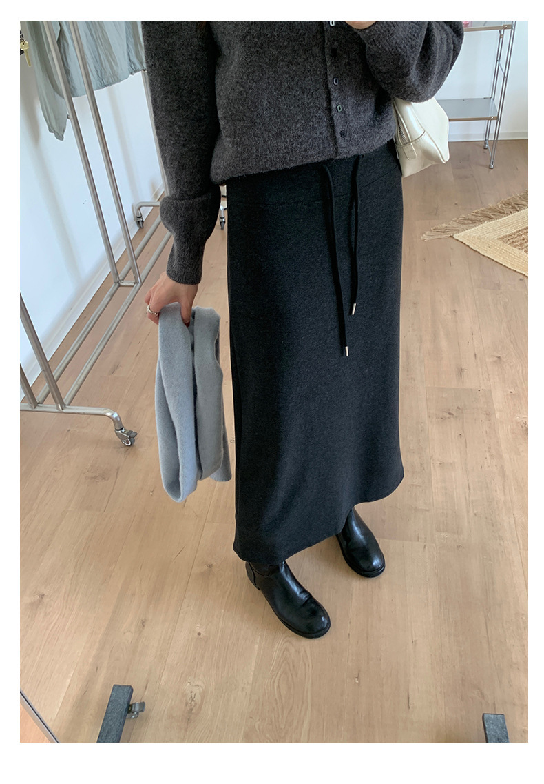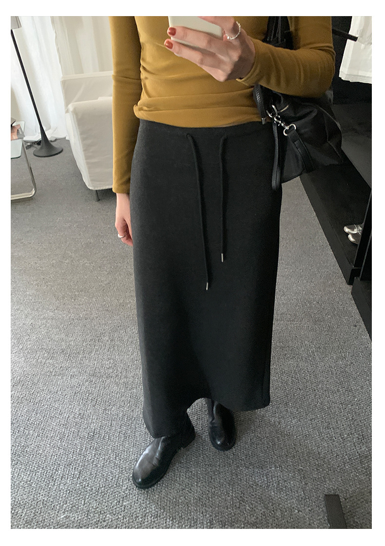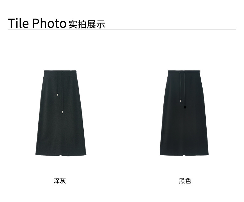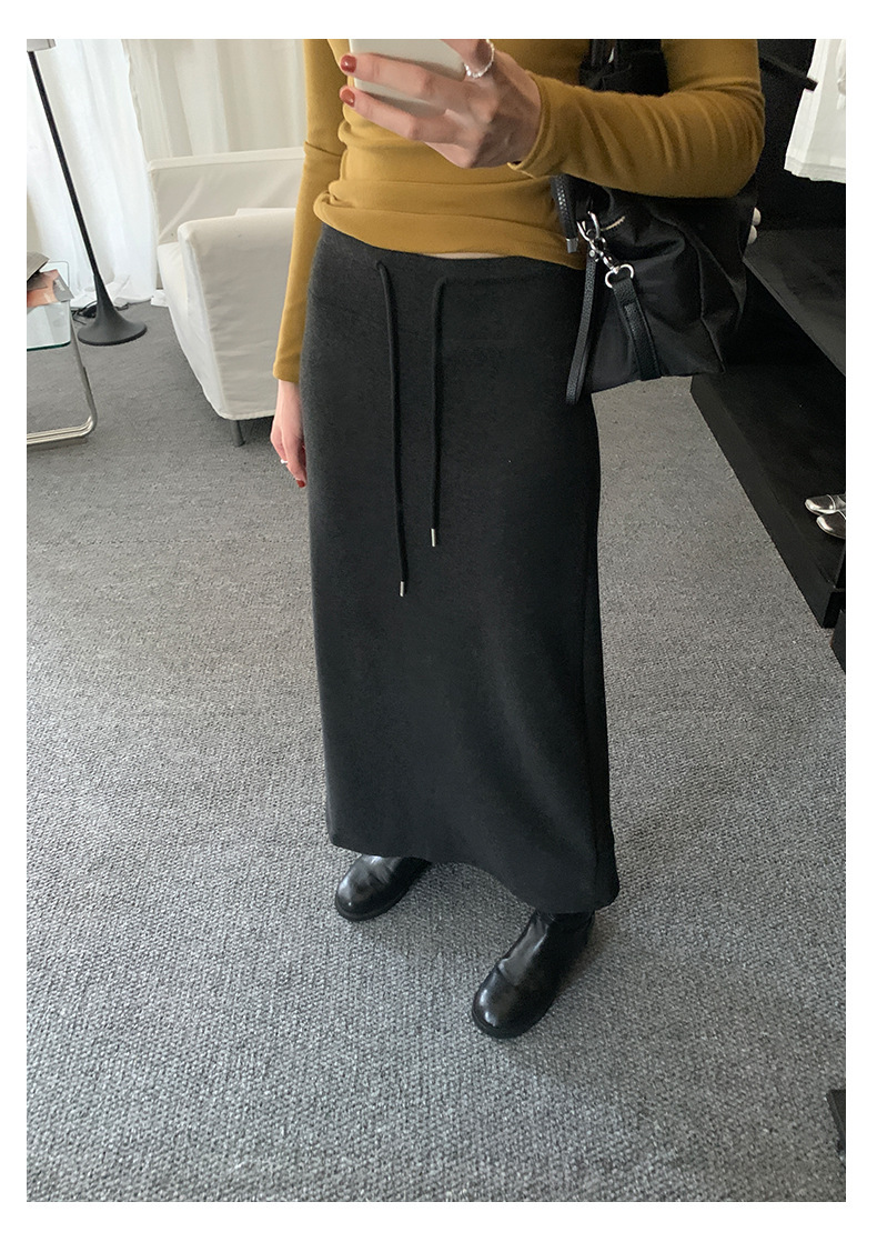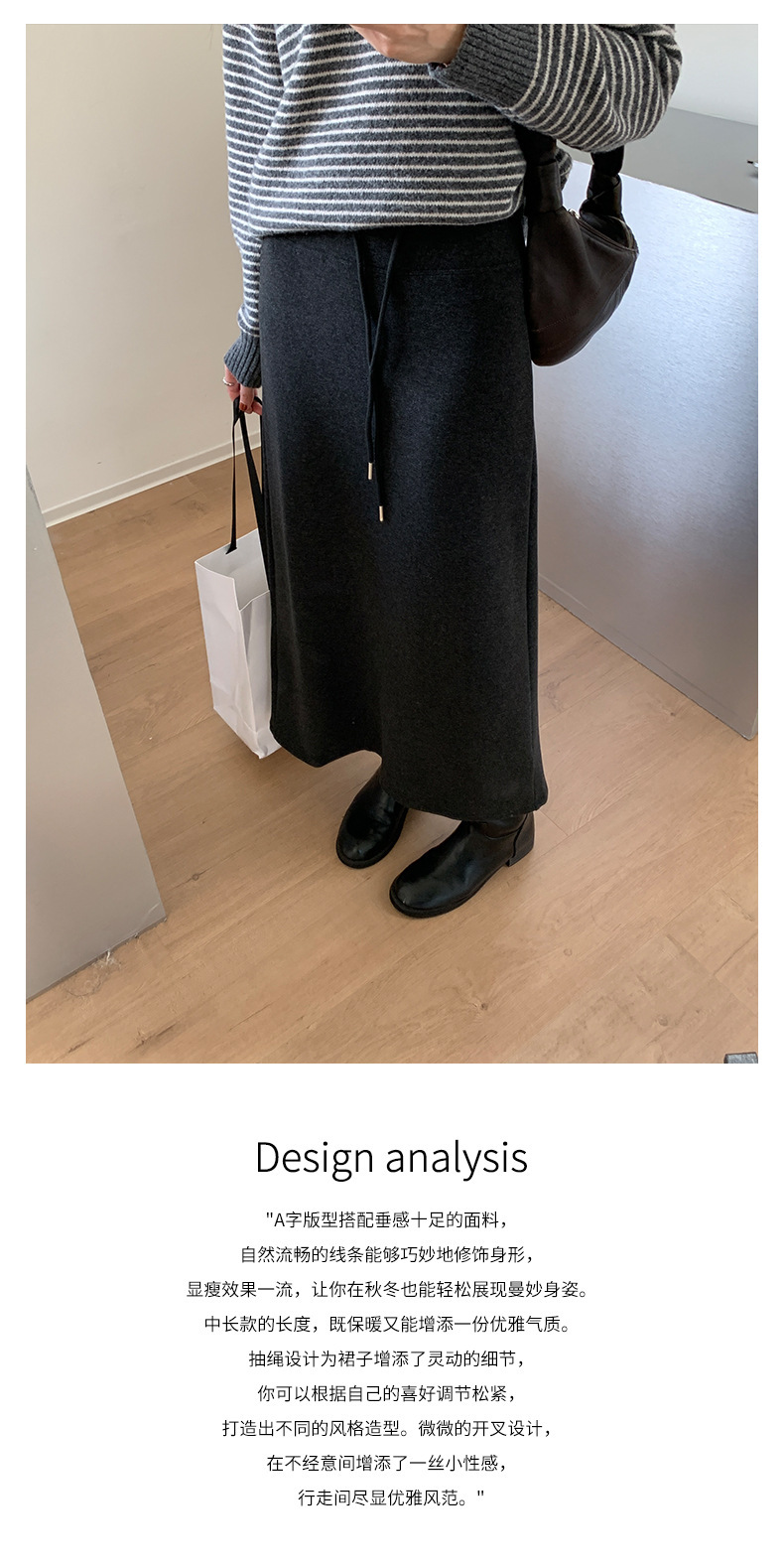 *o-ha-you*【FHZH1GF5041028】簡約抽繩半身裙女秋冬休閒開叉A字垂感顯瘦中長款衛裙-2色