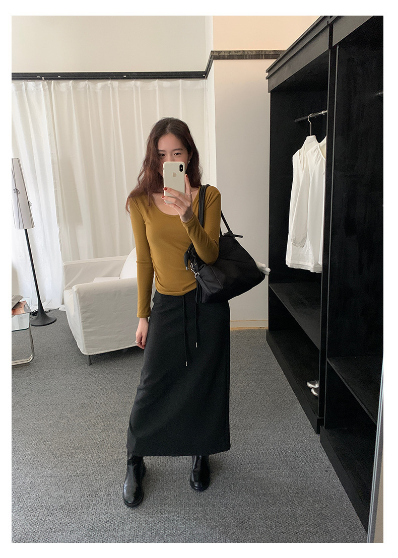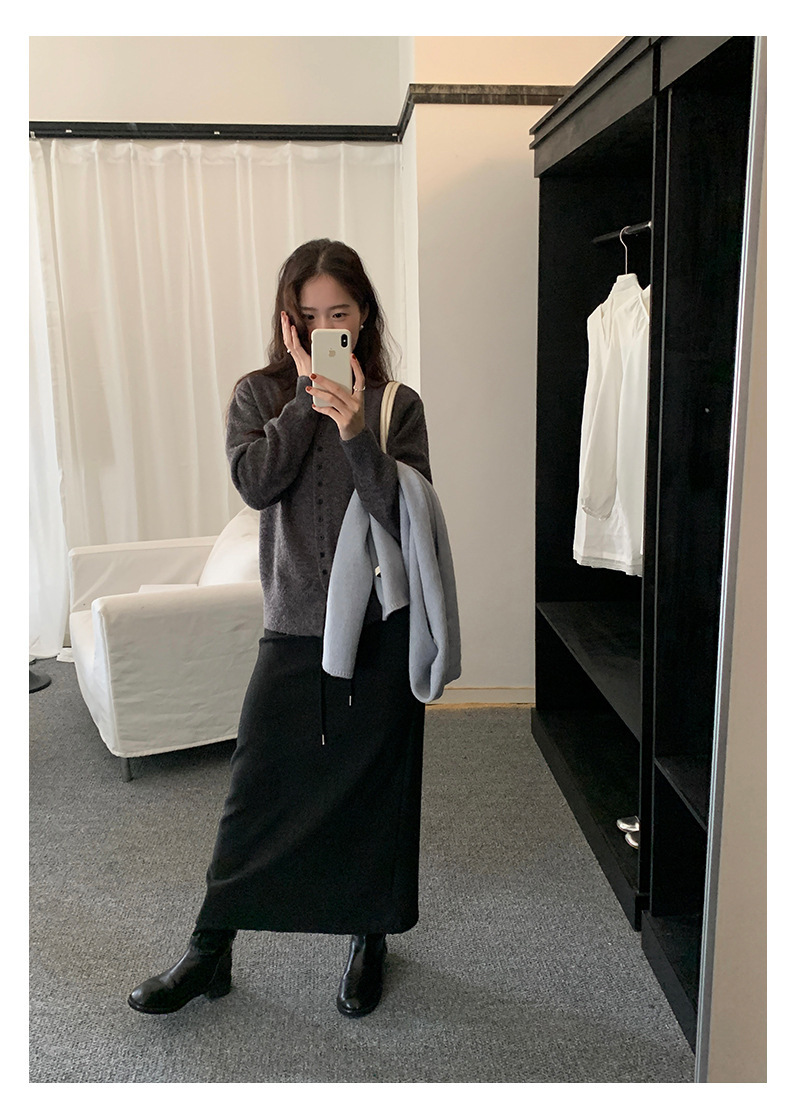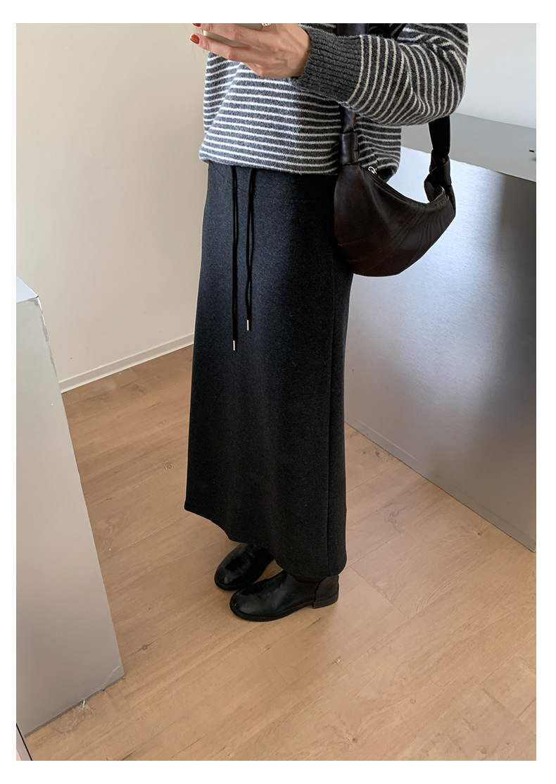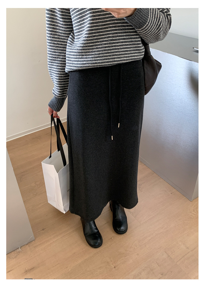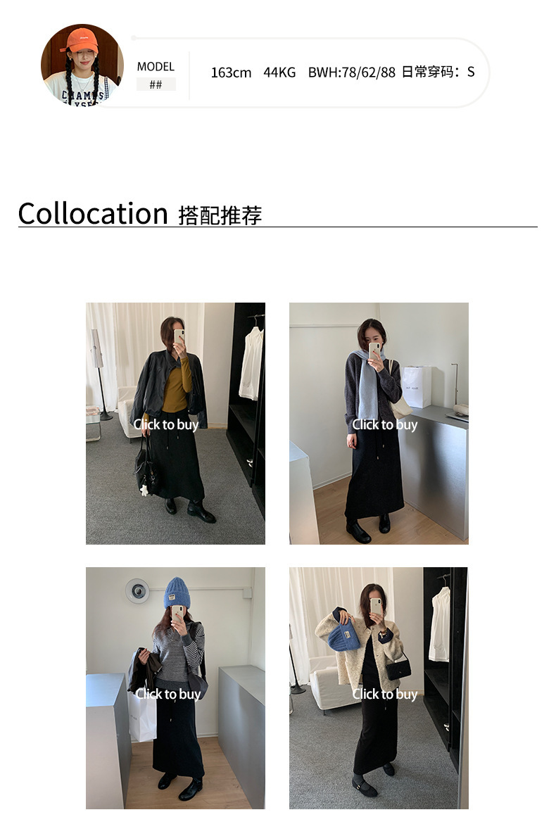 *o-ha-you*【FHZH1GF5041028】簡約抽繩半身裙女秋冬休閒開叉A字垂感顯瘦中長款衛裙-2色