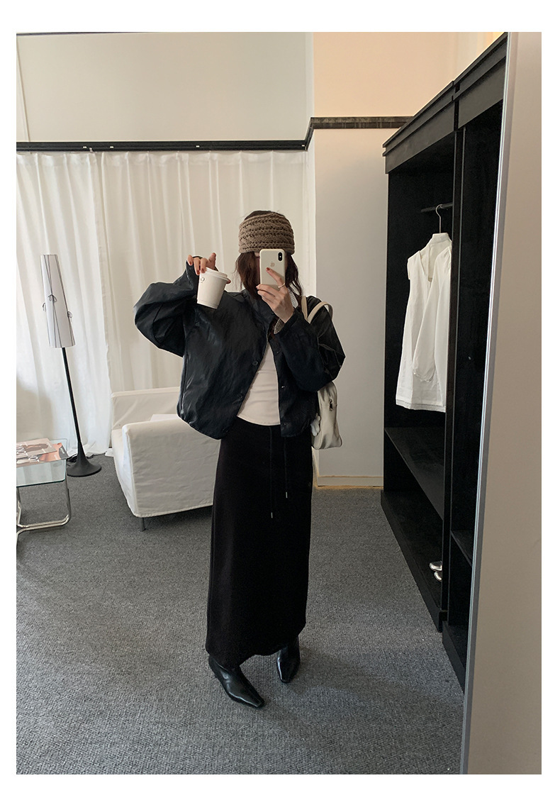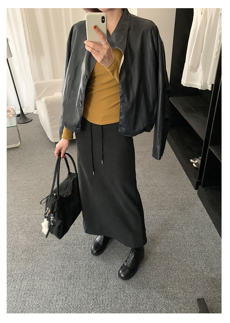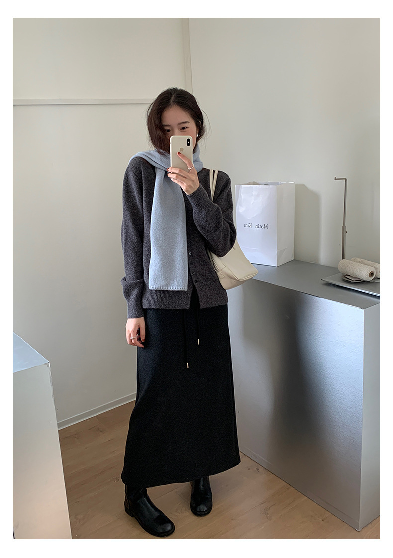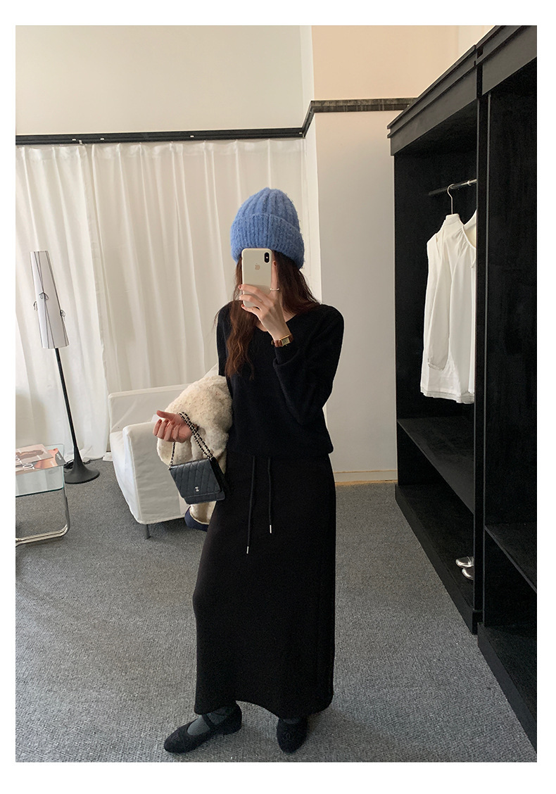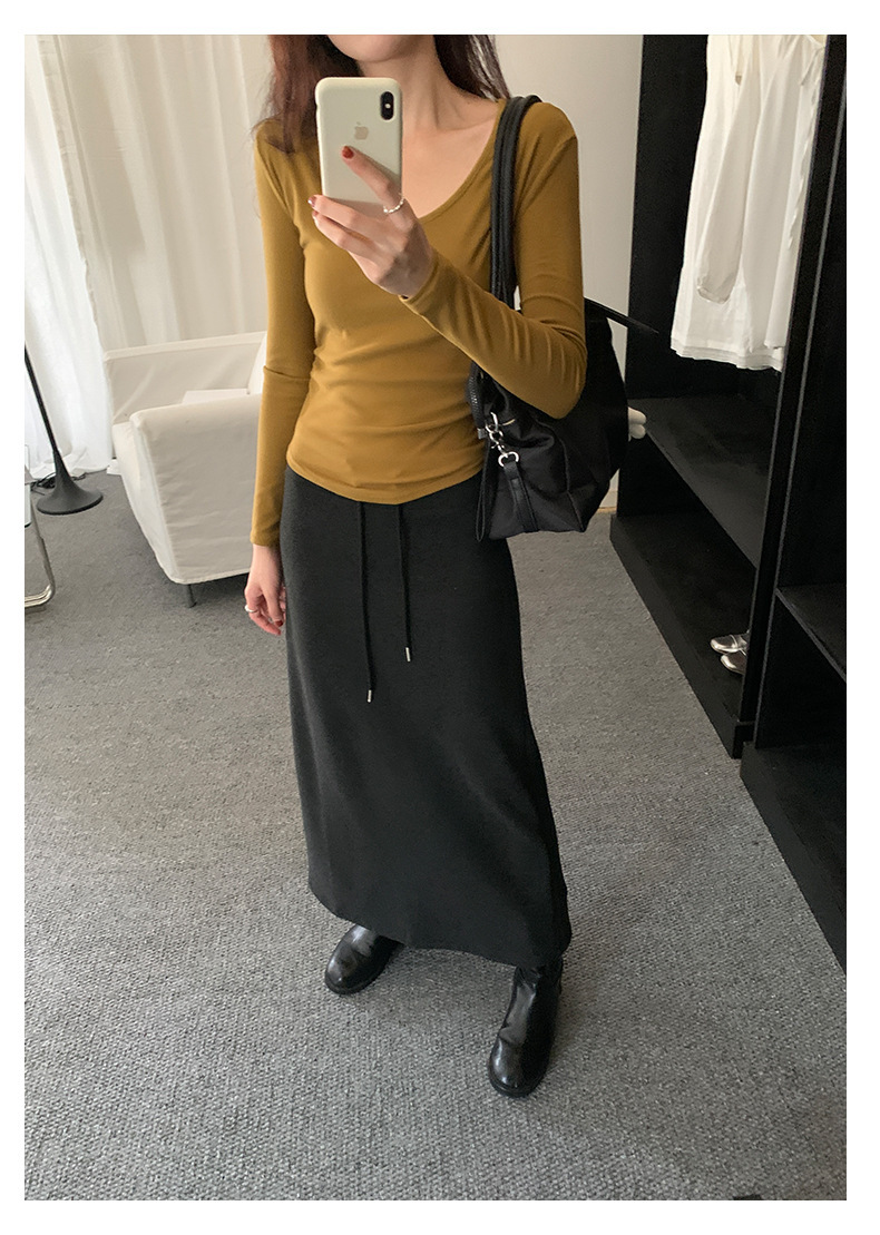 *o-ha-you*【FHZH1GF5041028】簡約抽繩半身裙女秋冬休閒開叉A字垂感顯瘦中長款衛裙-2色