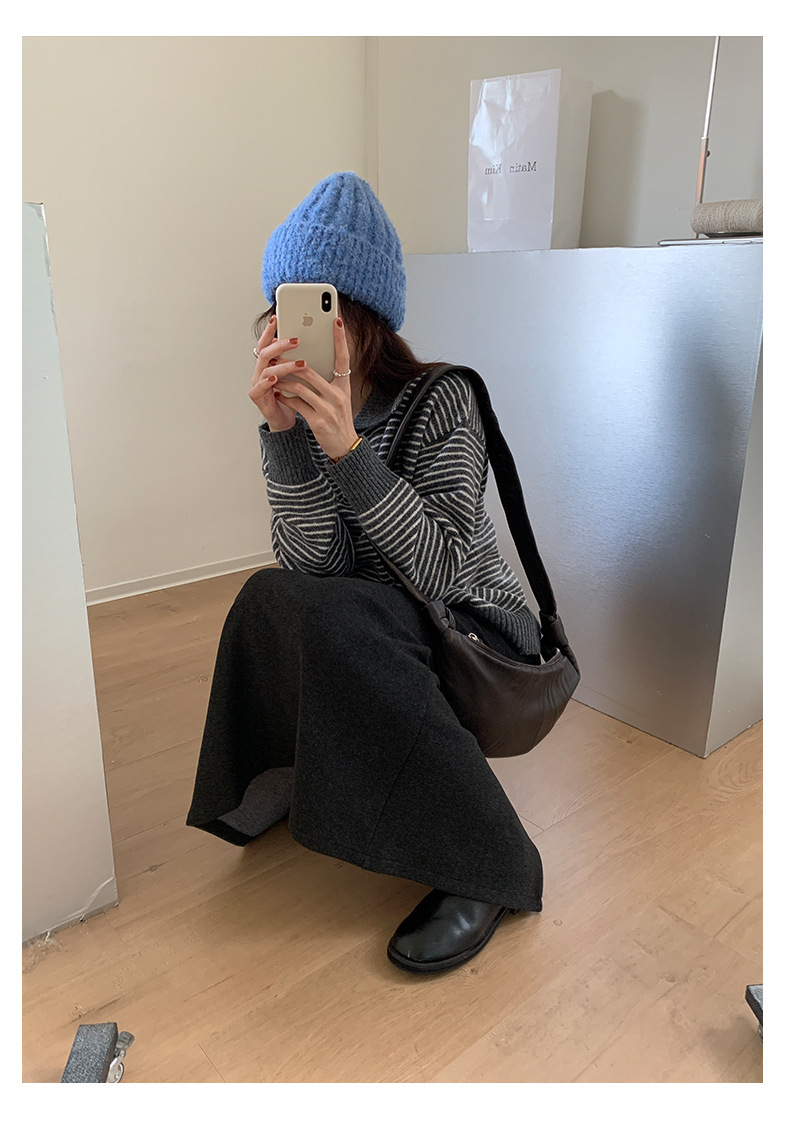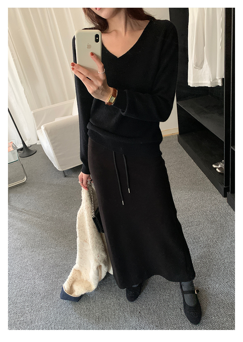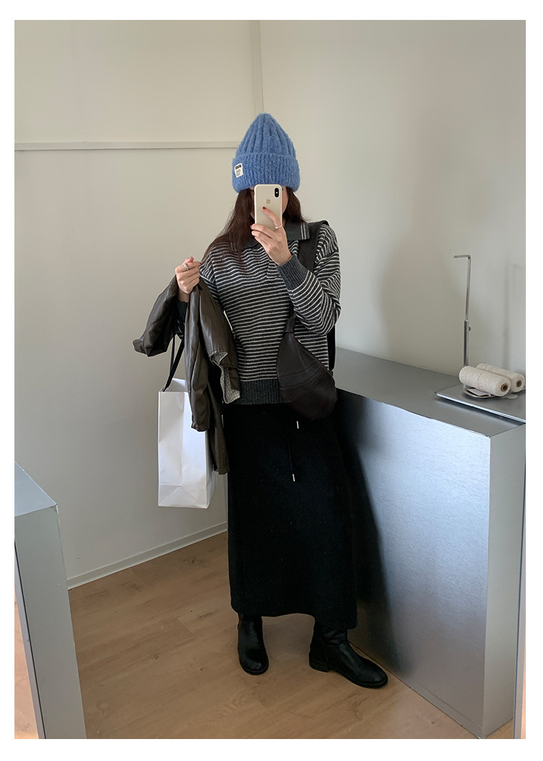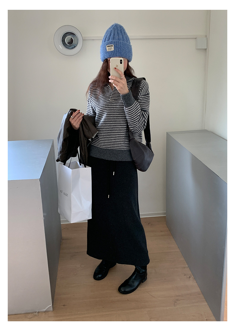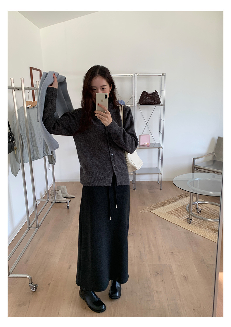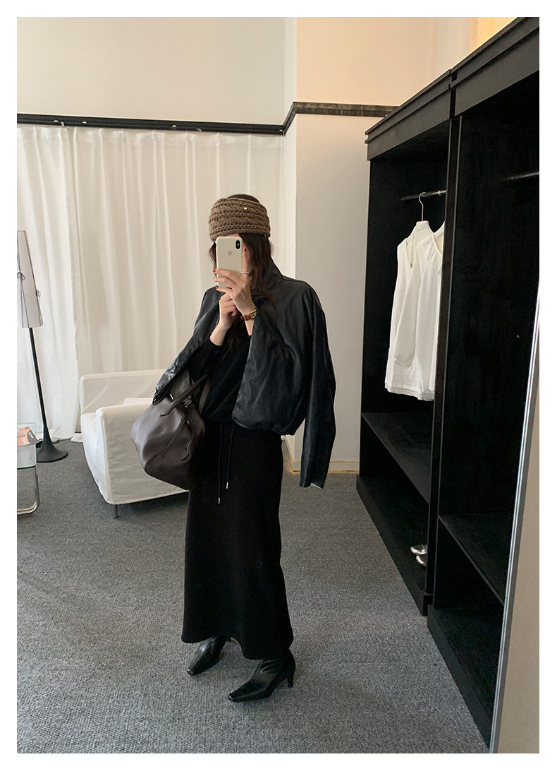 *o-ha-you*【FHZH1GF5041028】簡約抽繩半身裙女秋冬休閒開叉A字垂感顯瘦中長款衛裙-2色