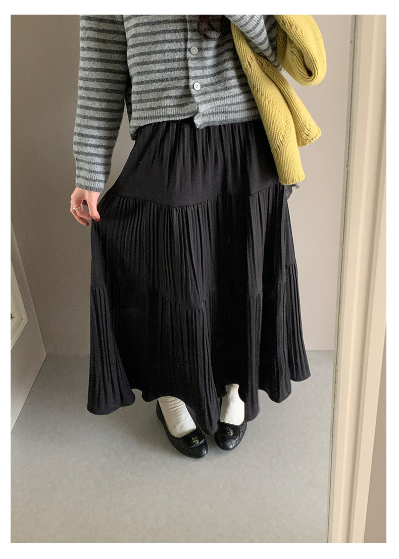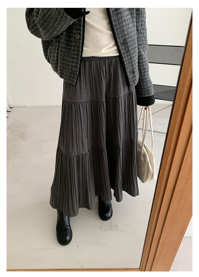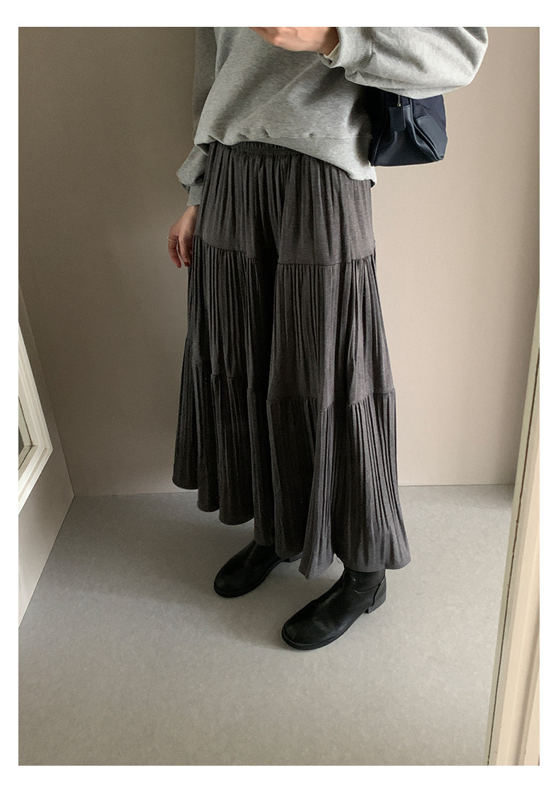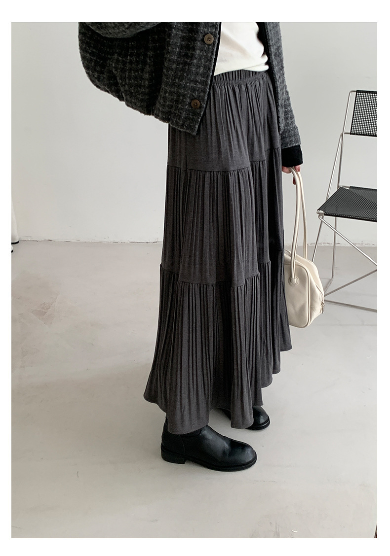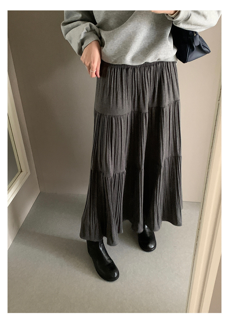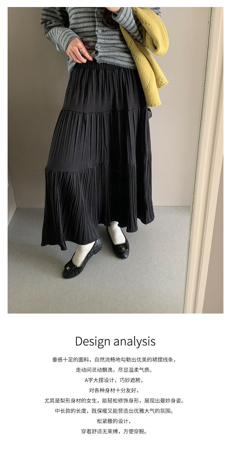 *o-ha-you*【FHZH1GF5041059】簡約鬆緊腰百褶半身裙女秋冬垂感遮胯大擺A字中長裙-2色