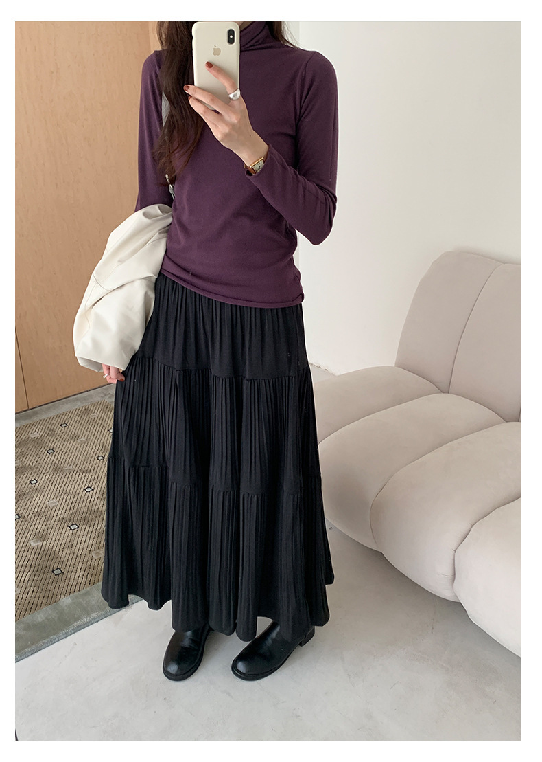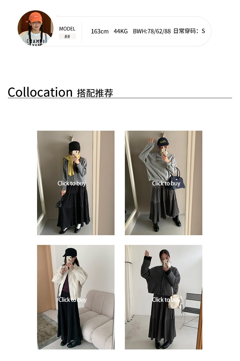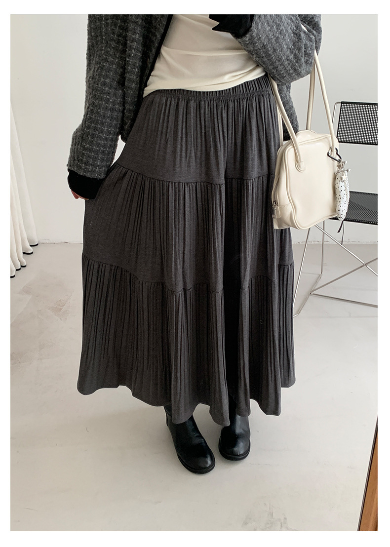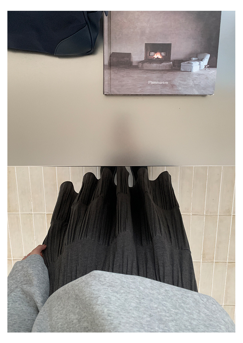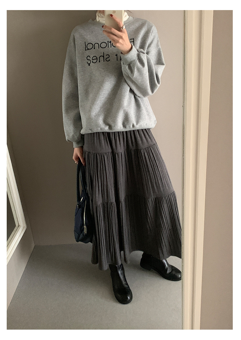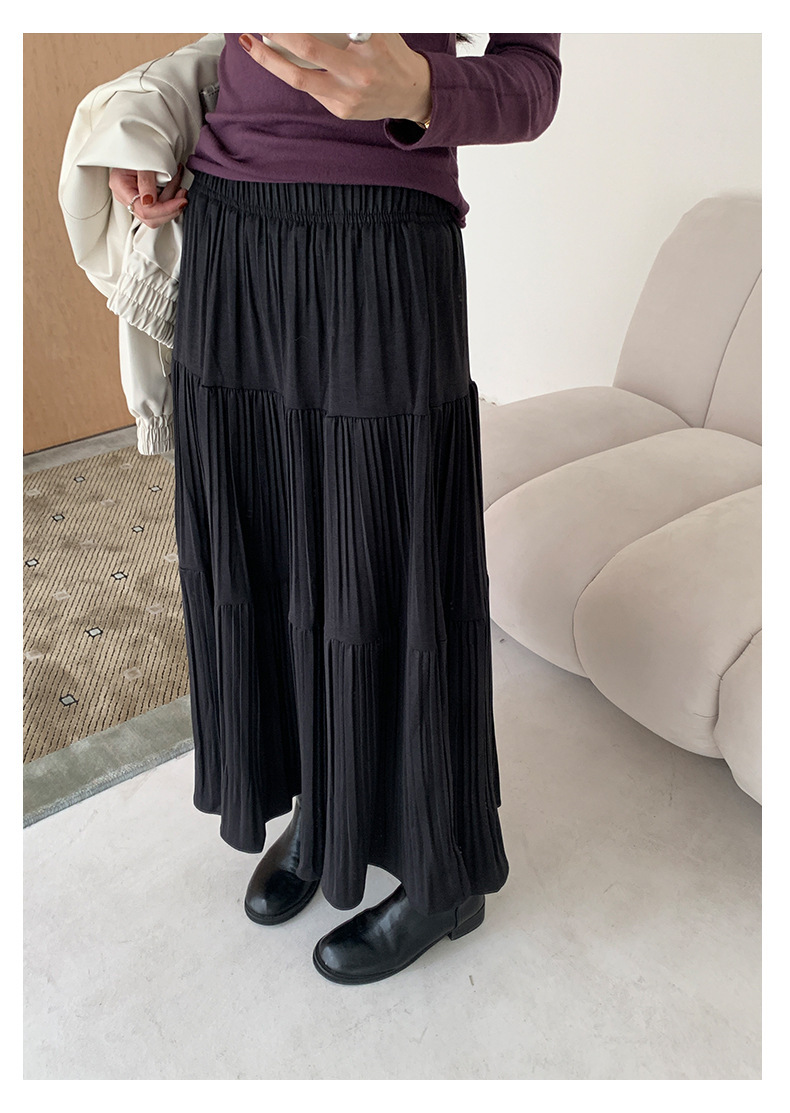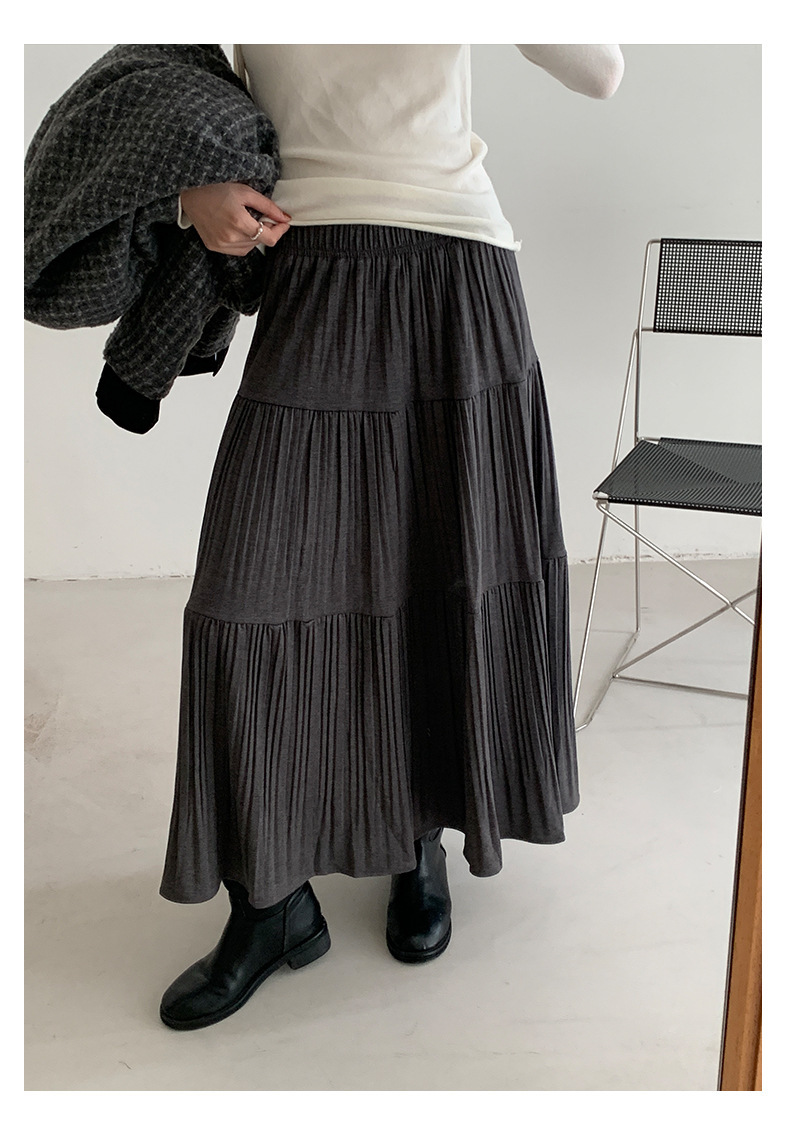 *o-ha-you*【FHZH1GF5041059】簡約鬆緊腰百褶半身裙女秋冬垂感遮胯大擺A字中長裙-2色