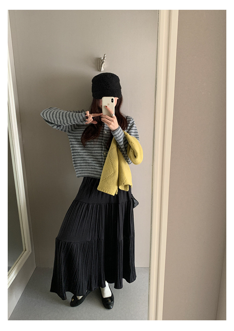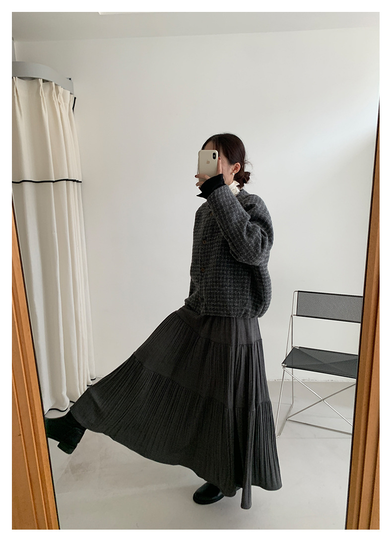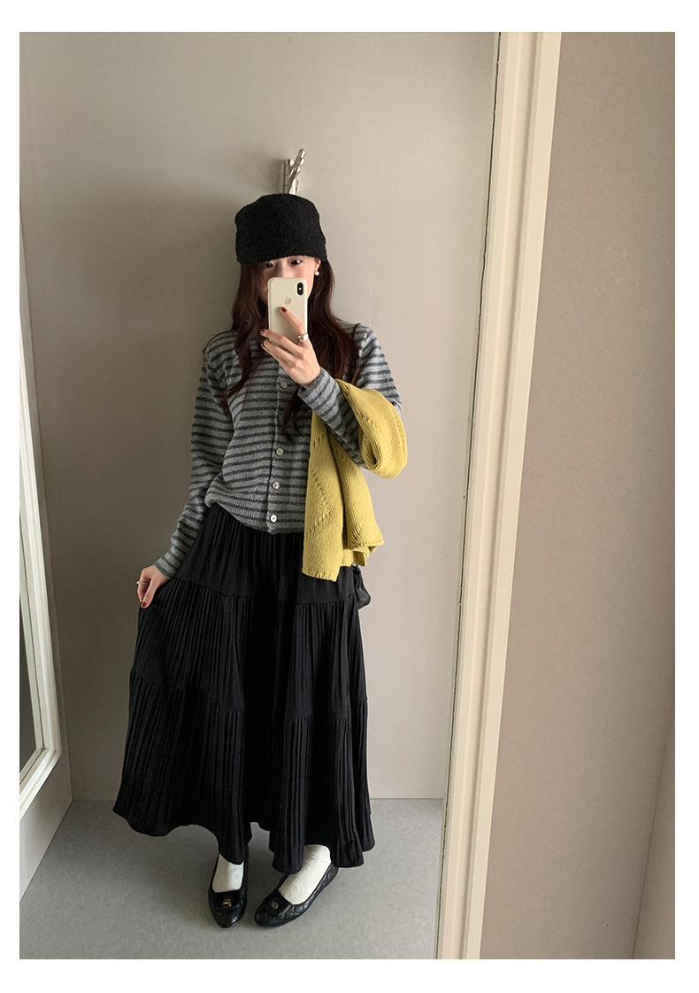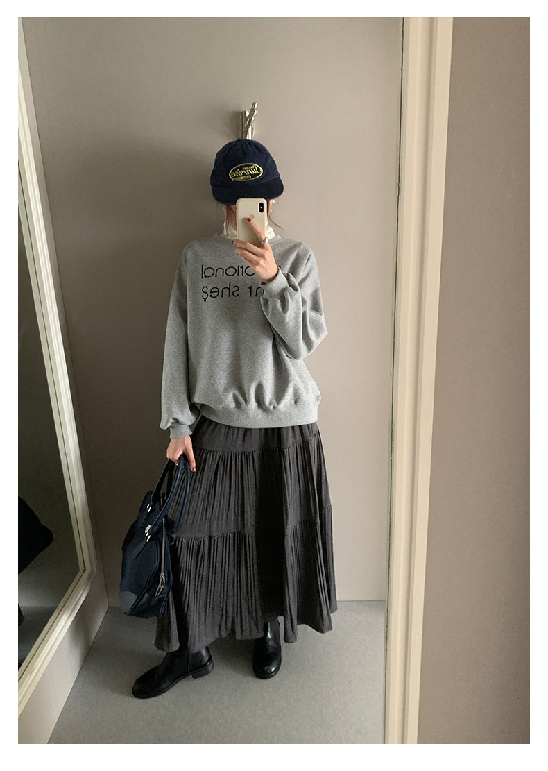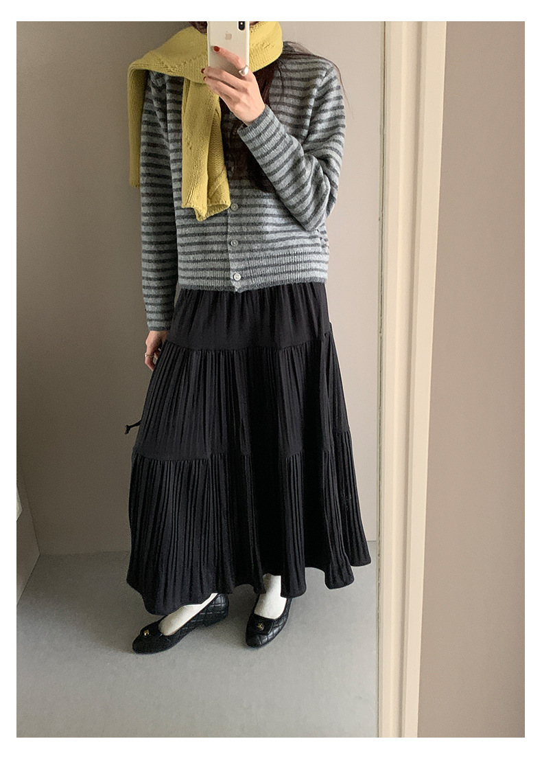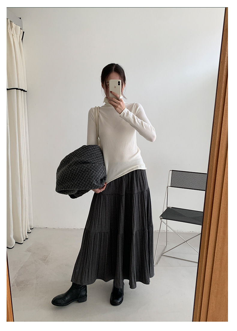 *o-ha-you*【FHZH1GF5041059】簡約鬆緊腰百褶半身裙女秋冬垂感遮胯大擺A字中長裙-2色