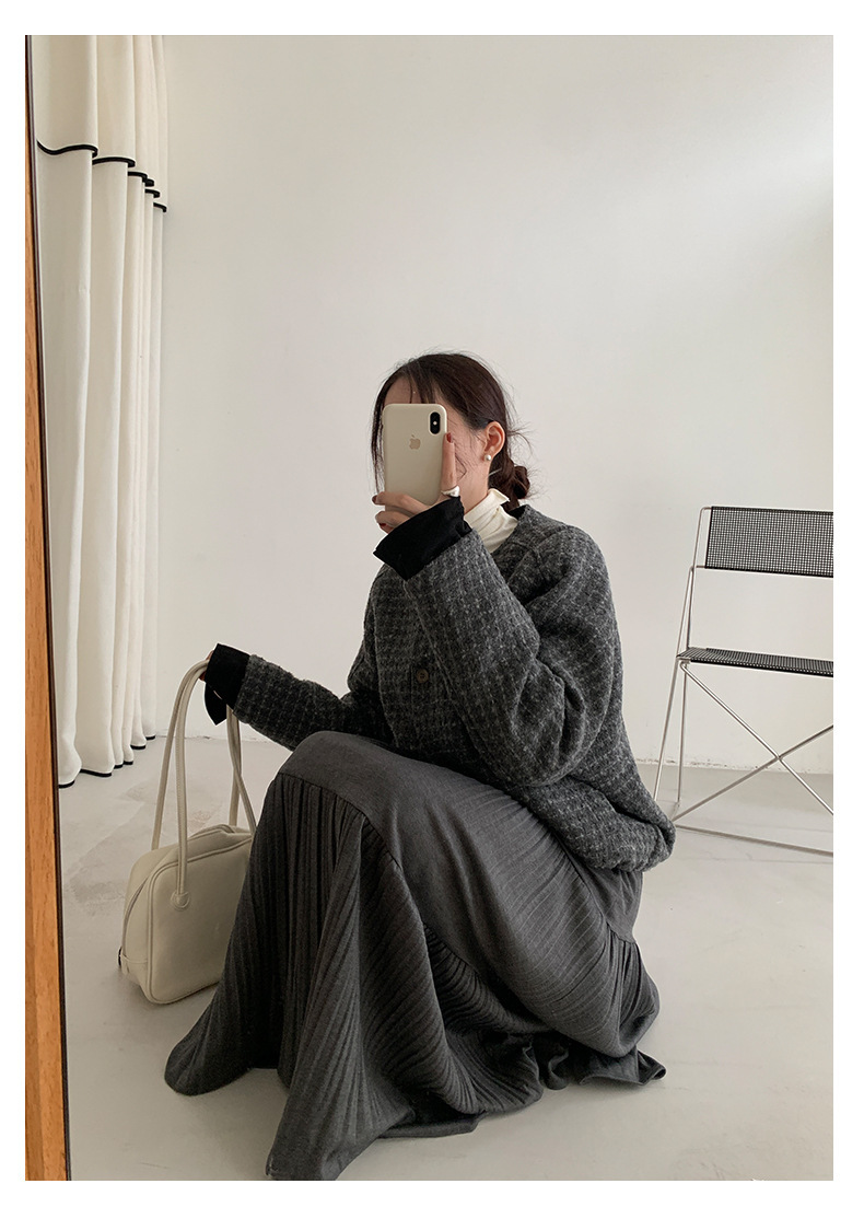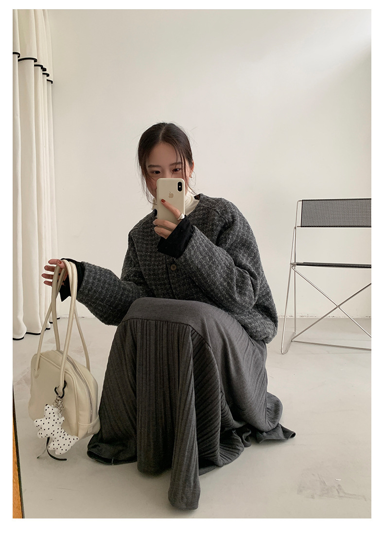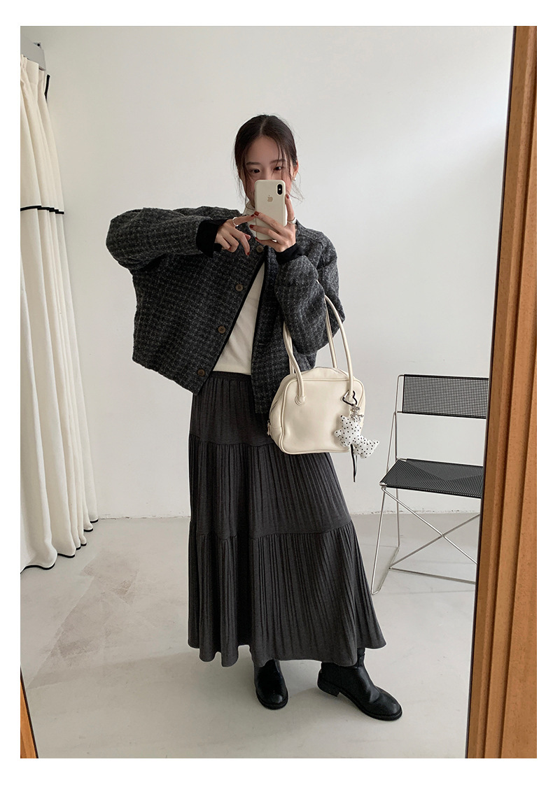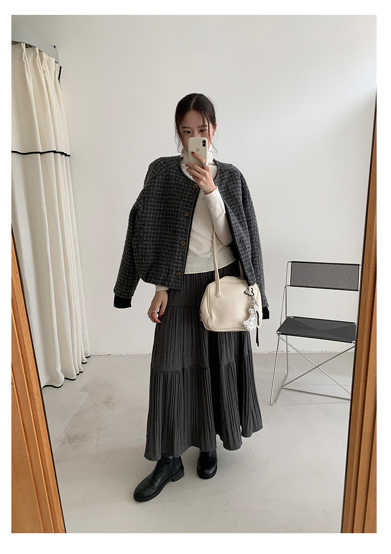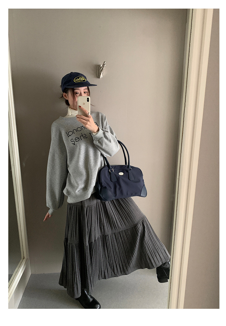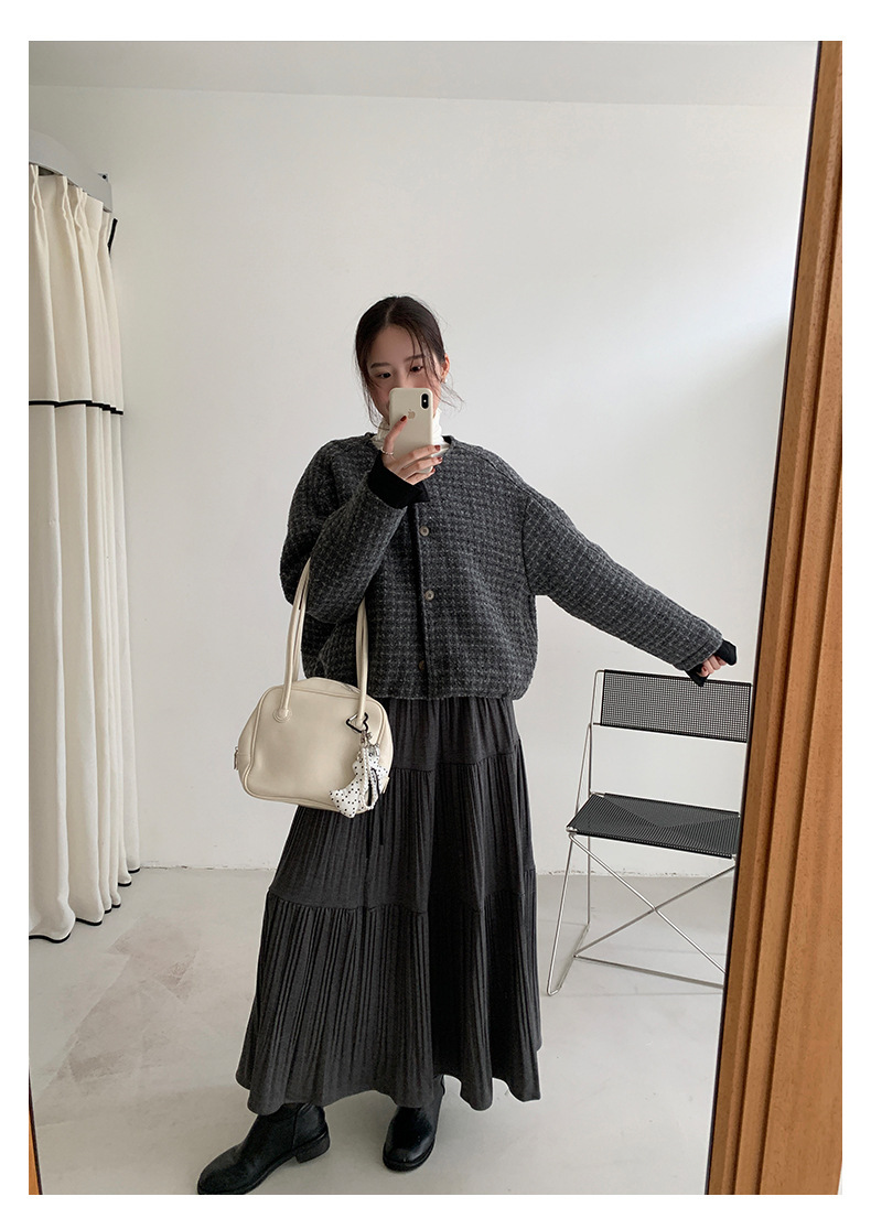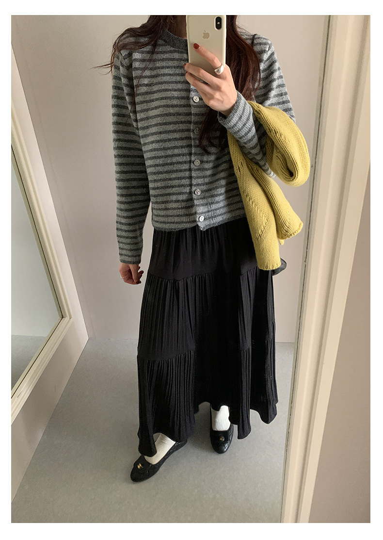 *o-ha-you*【FHZH1GF5041059】簡約鬆緊腰百褶半身裙女秋冬垂感遮胯大擺A字中長裙-2色