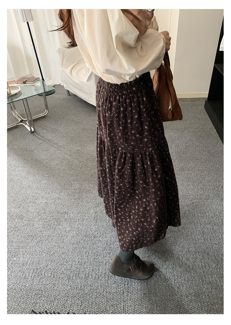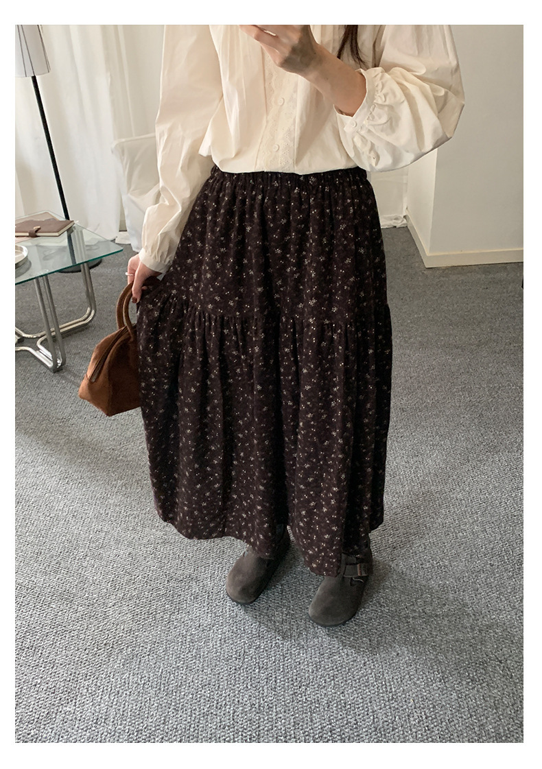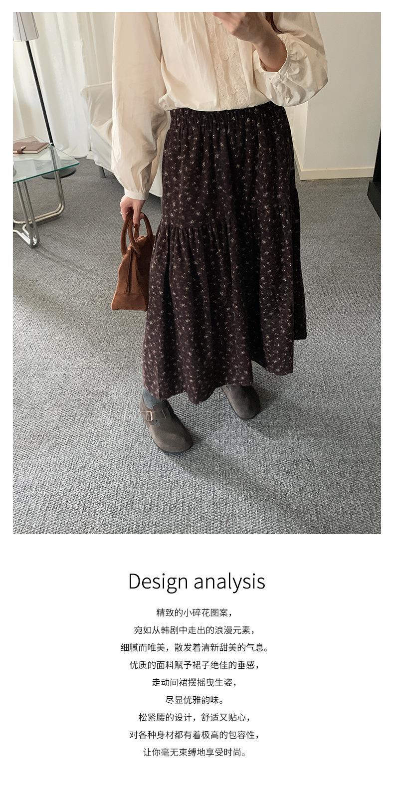*o-ha-you*【FHZH1GF5041077】韓系鬆緊腰小碎花垂感半身裙女2025秋冬新款中長裙