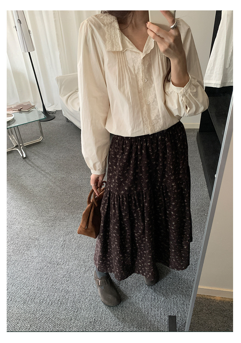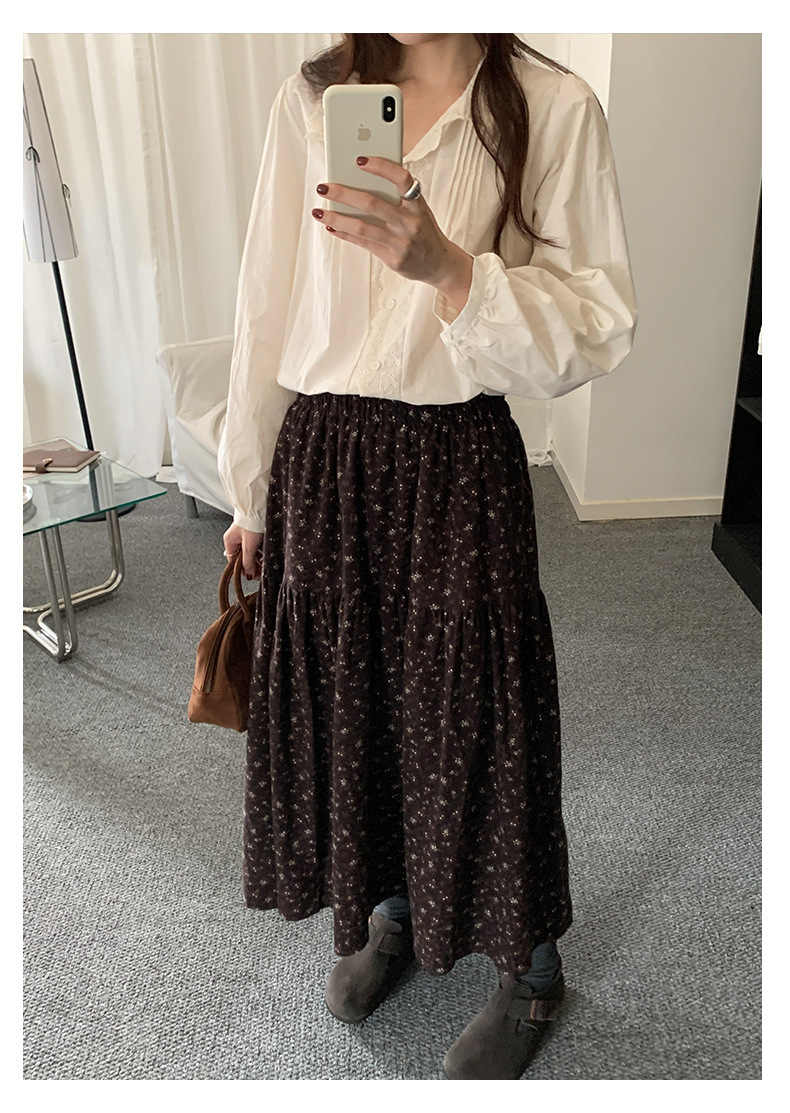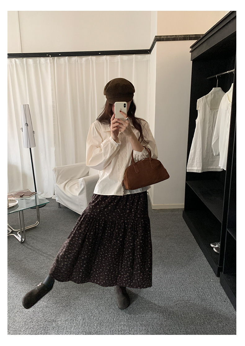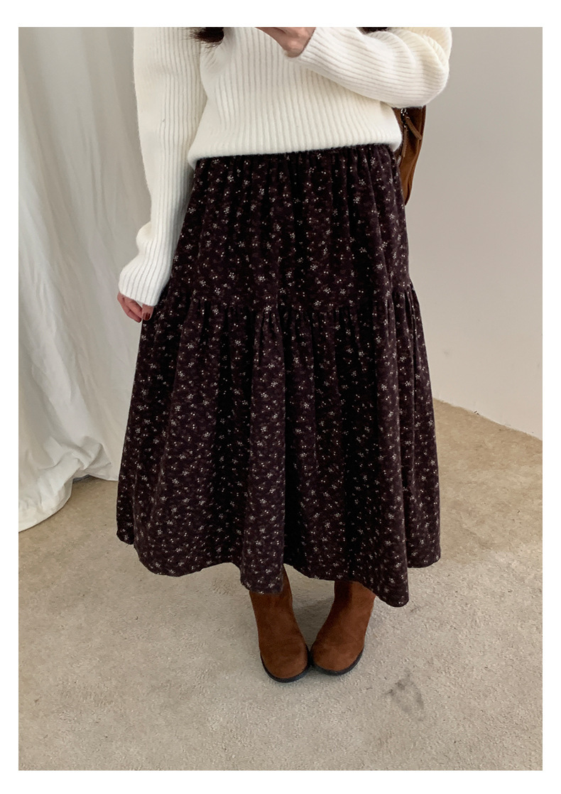 *o-ha-you*【FHZH1GF5041077】韓系鬆緊腰小碎花垂感半身裙女2025秋冬新款中長裙