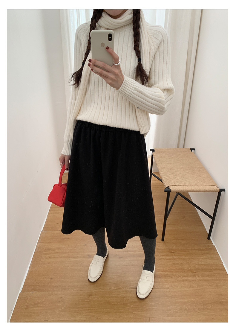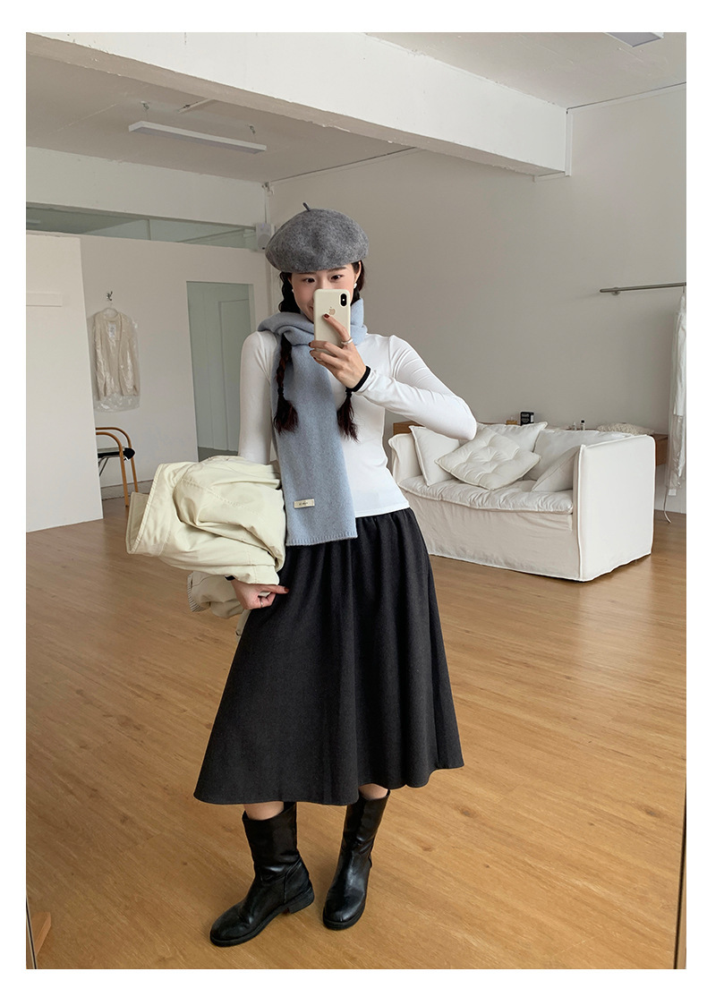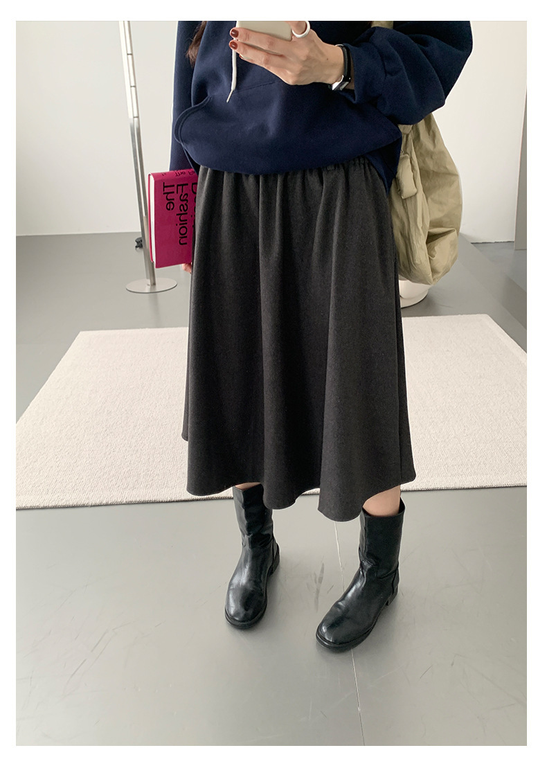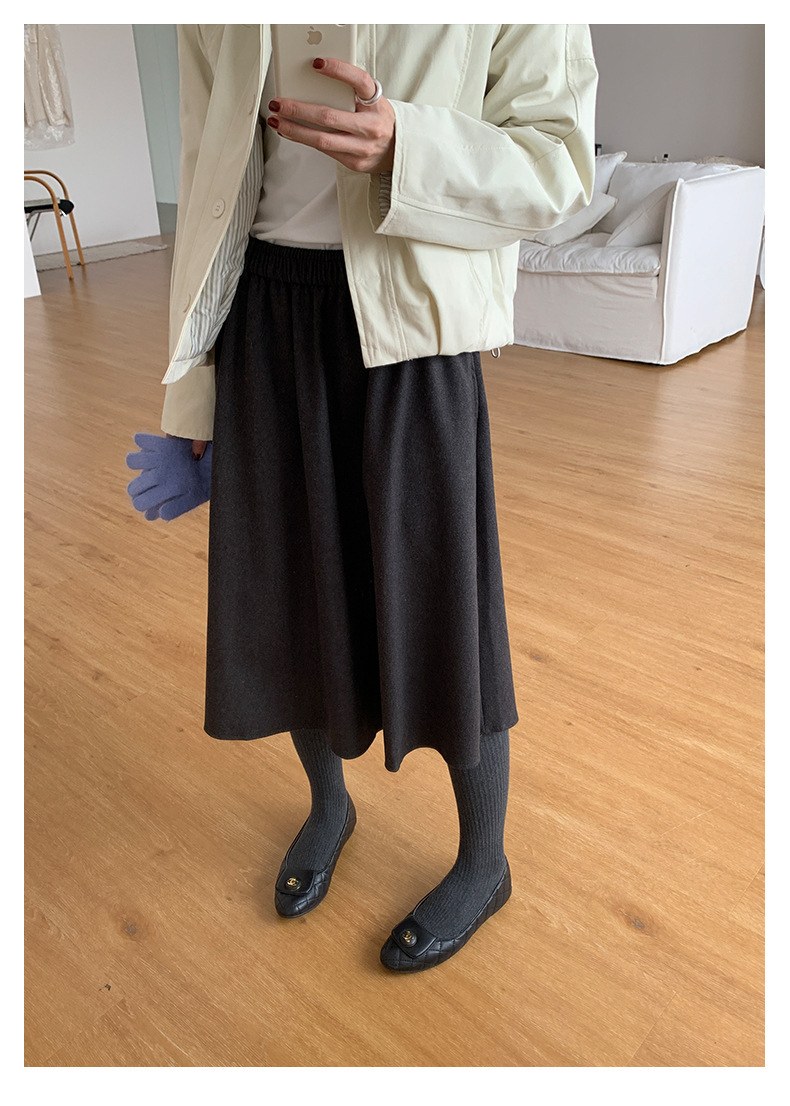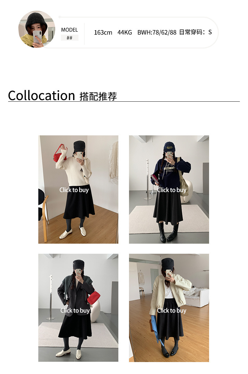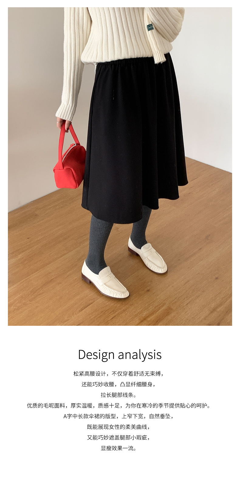 *o-ha-you*【FHZH1GF5041096】復古鬆緊高腰毛呢半身裙女秋冬休閒包臀A字中長版傘裙-2色
