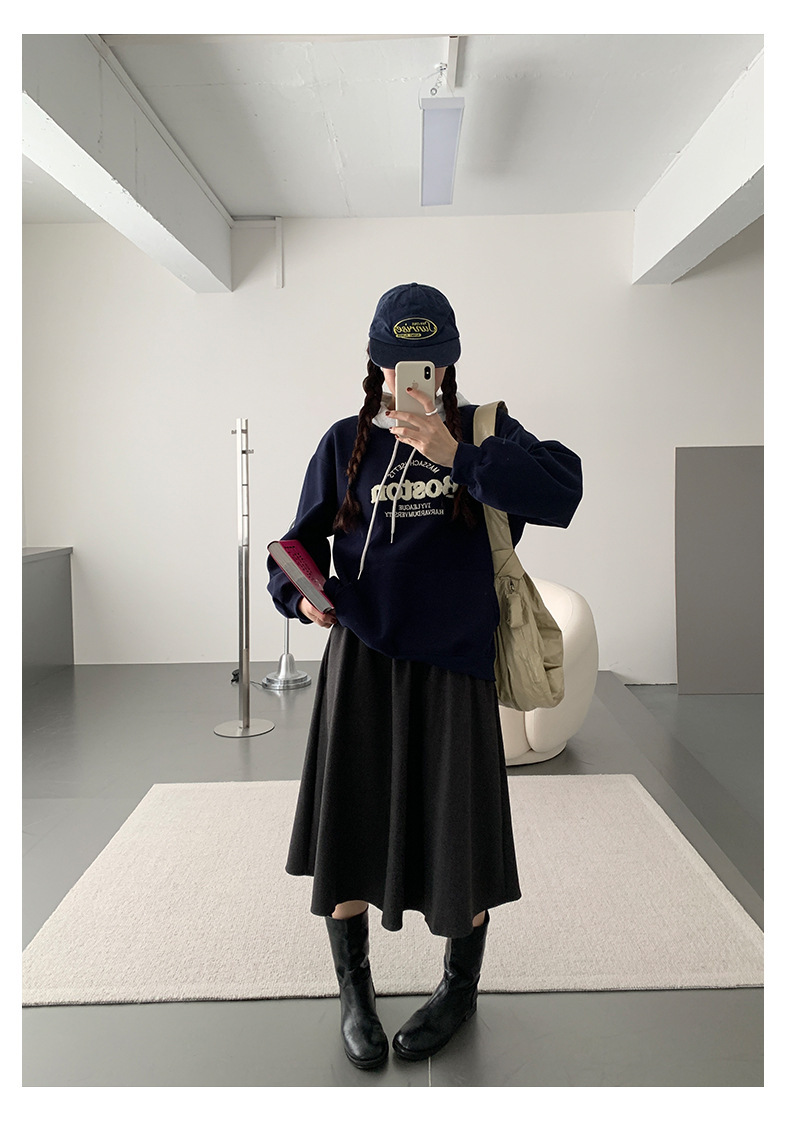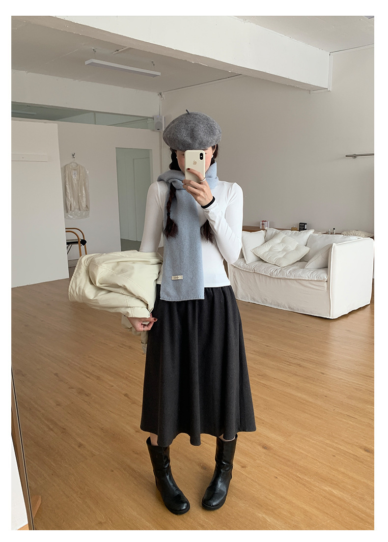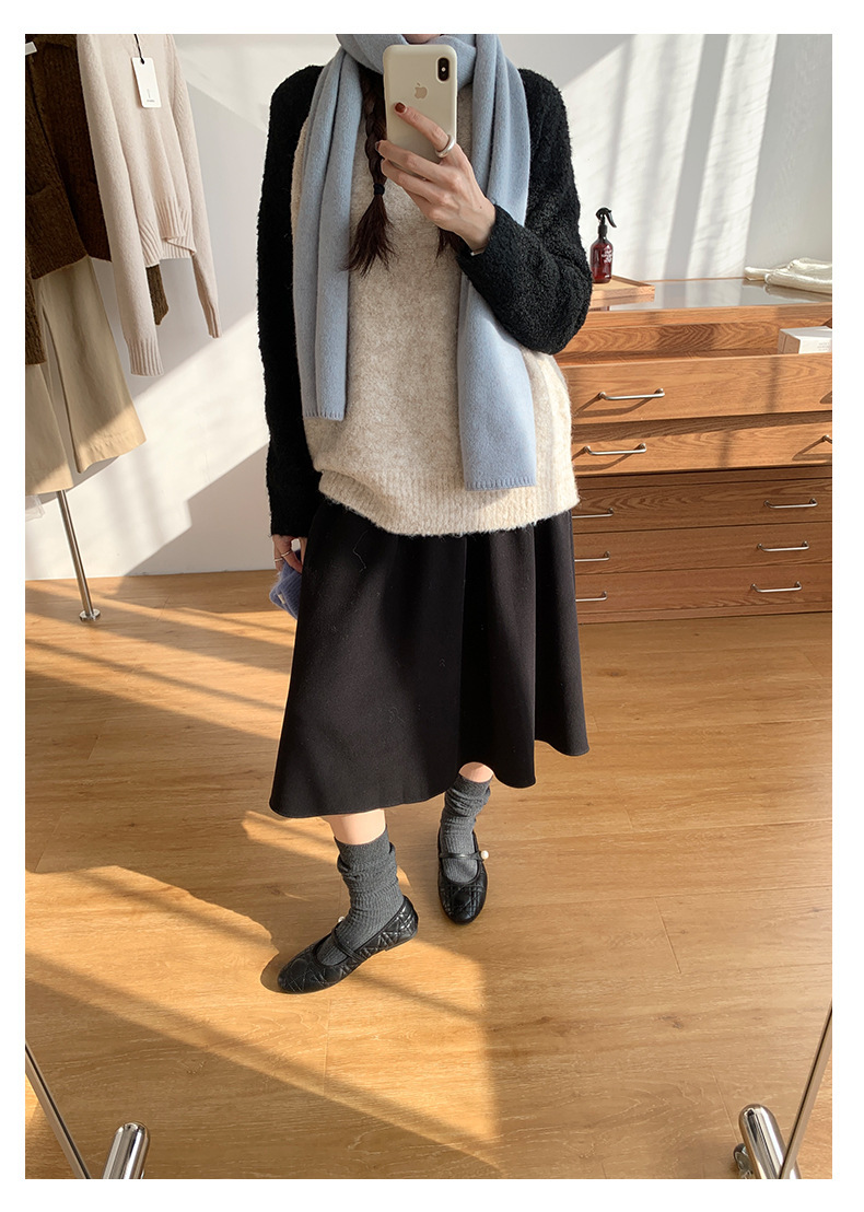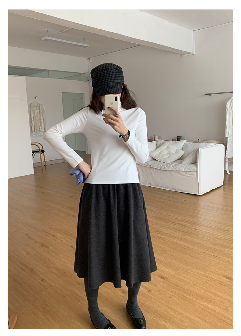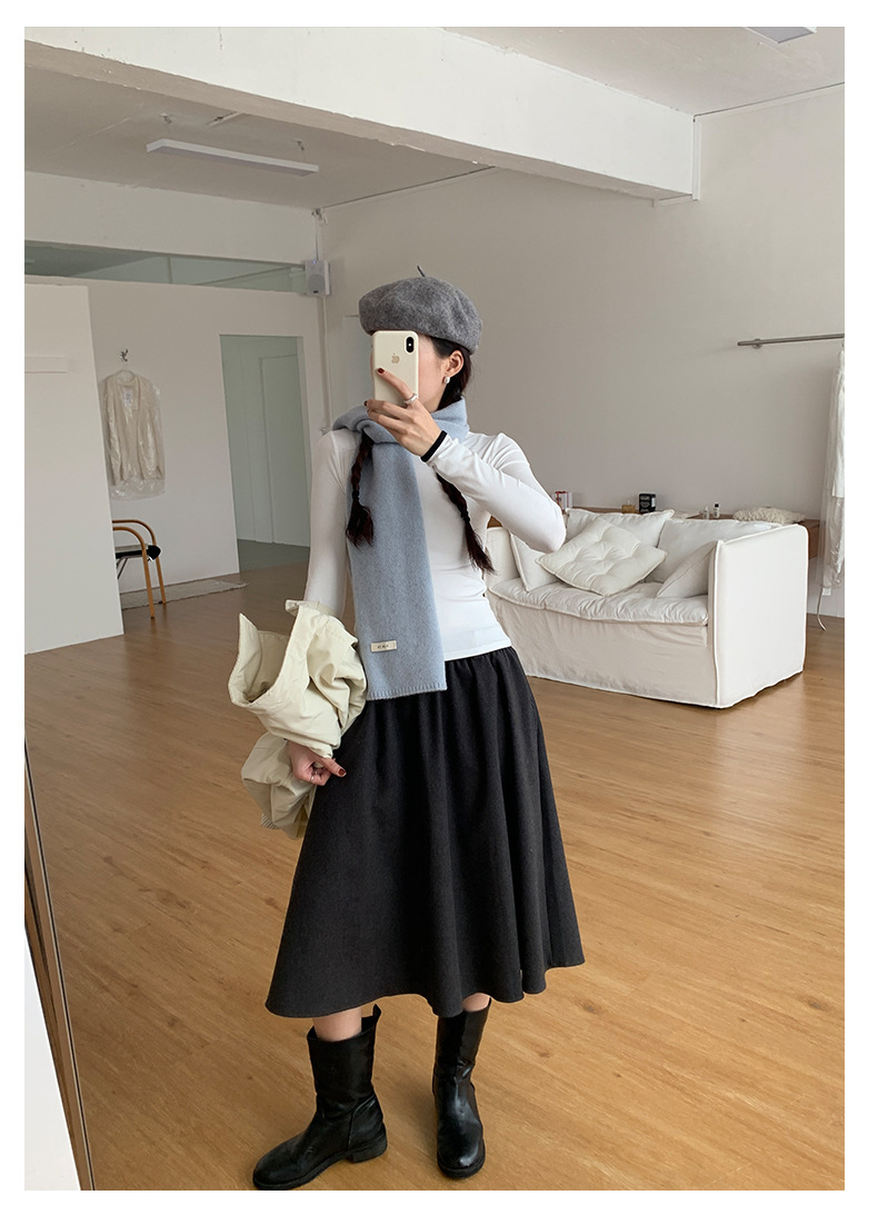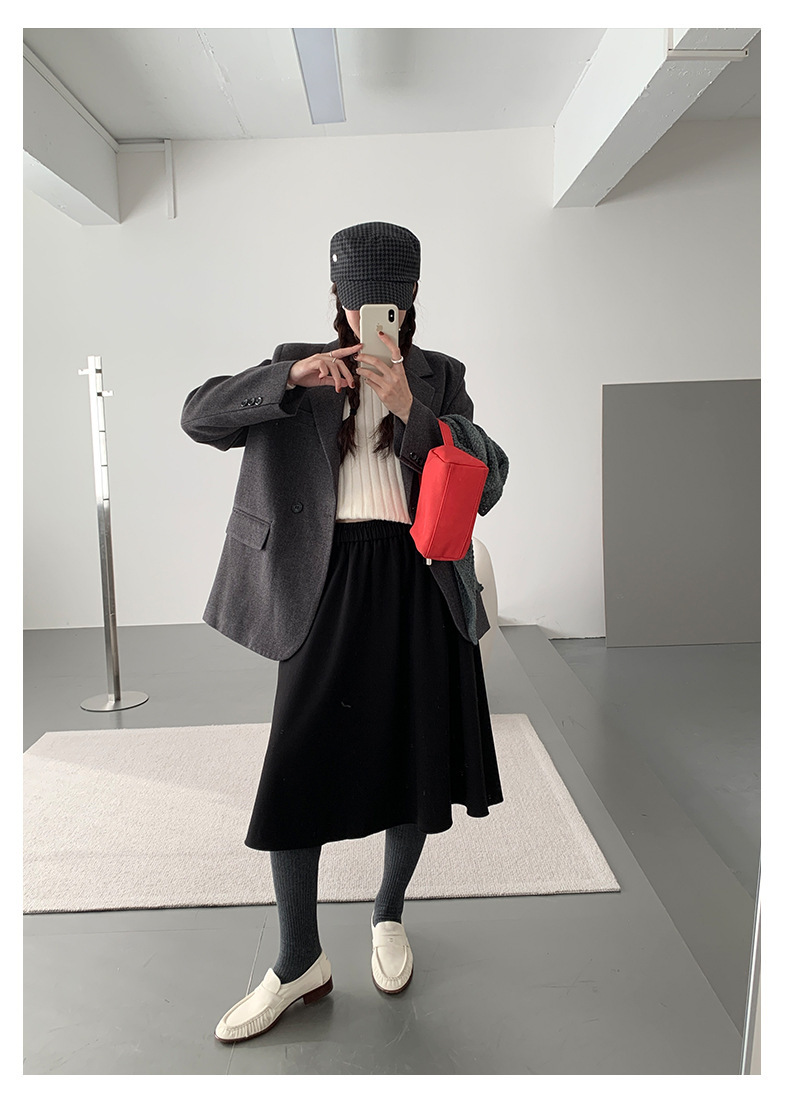 *o-ha-you*【FHZH1GF5041096】復古鬆緊高腰毛呢半身裙女秋冬休閒包臀A字中長版傘裙-2色