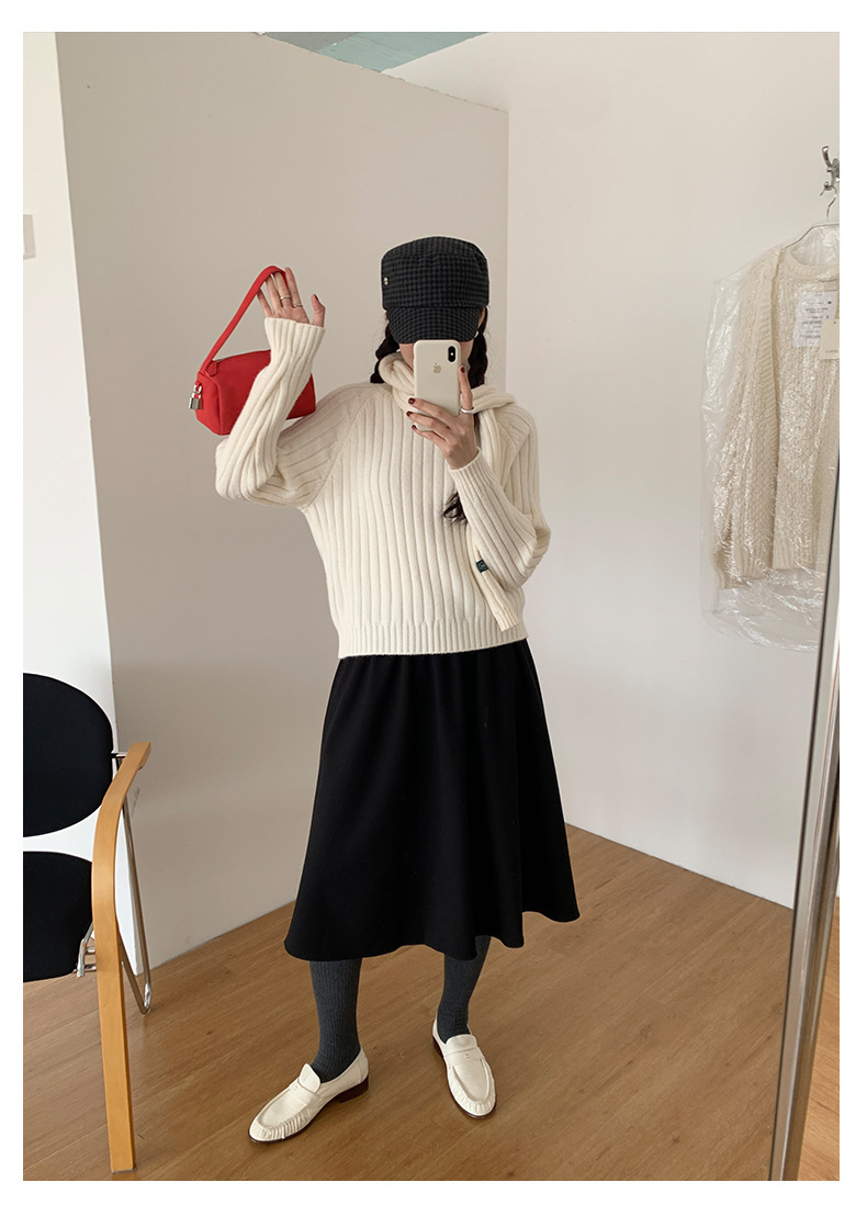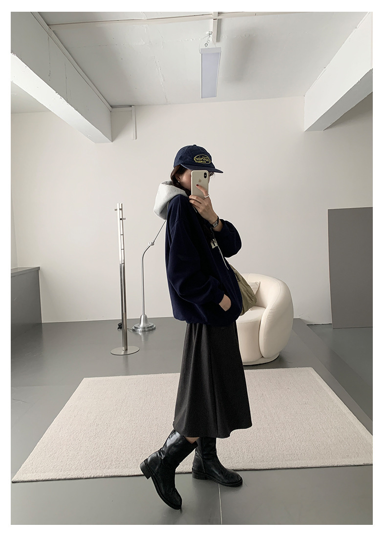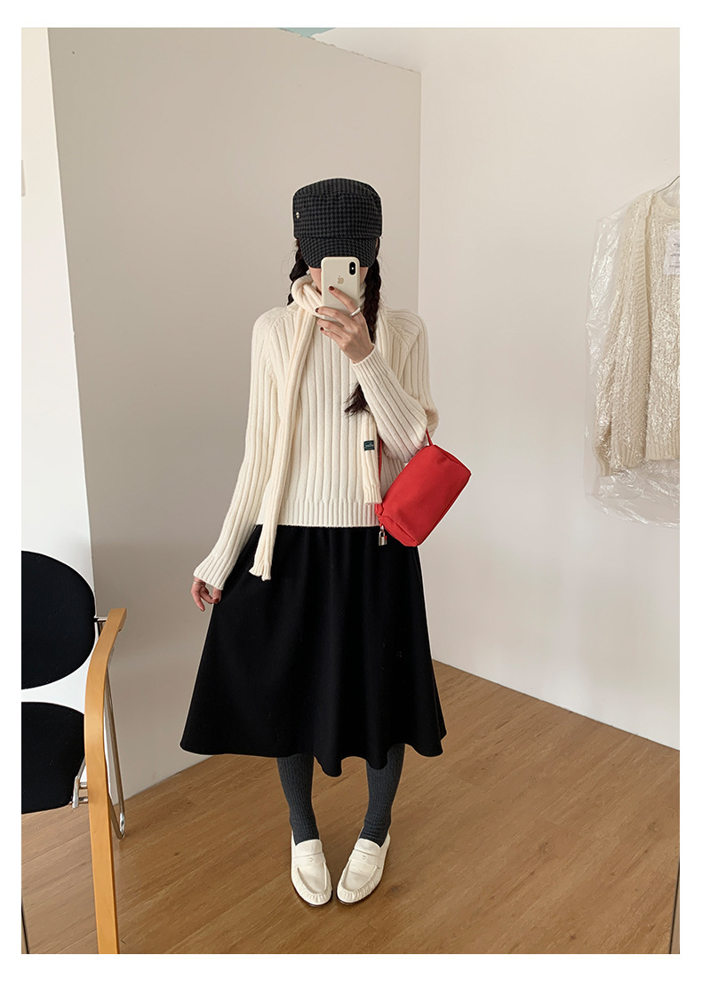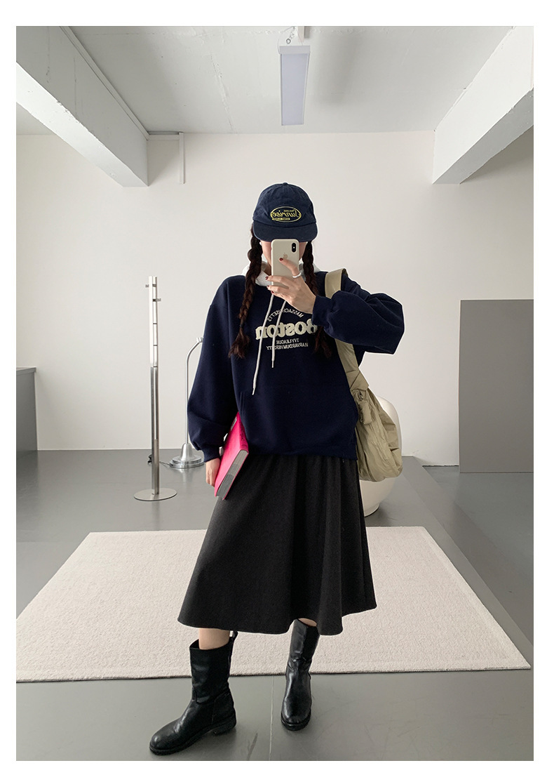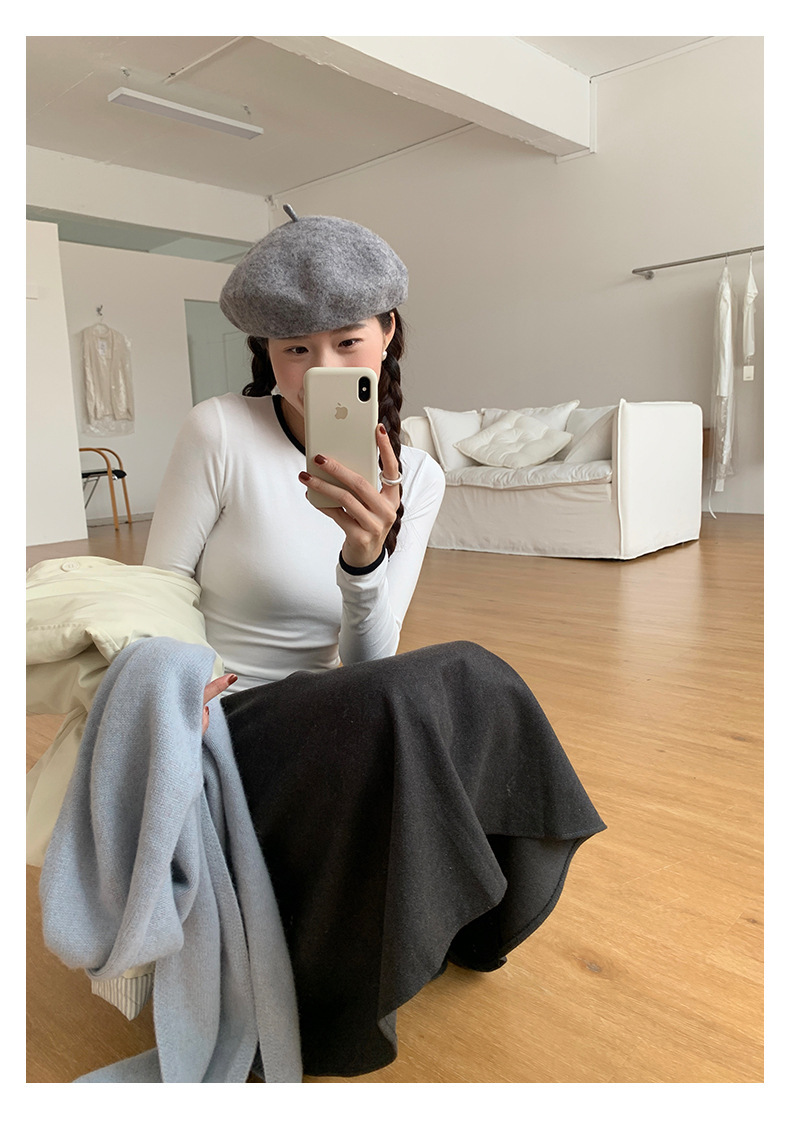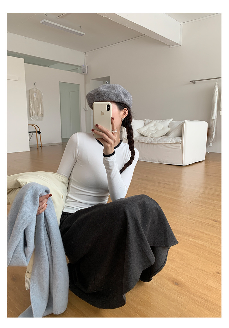 *o-ha-you*【FHZH1GF5041096】復古鬆緊高腰毛呢半身裙女秋冬休閒包臀A字中長版傘裙-2色
