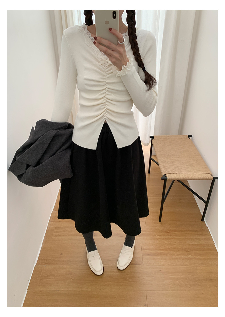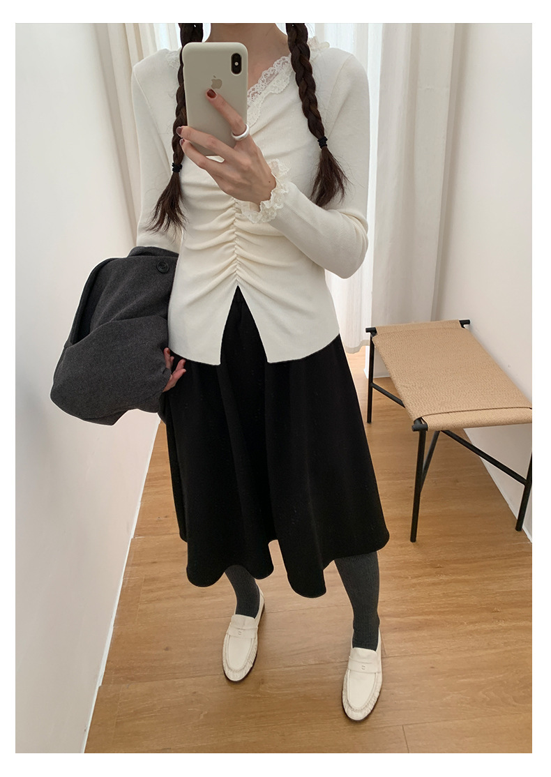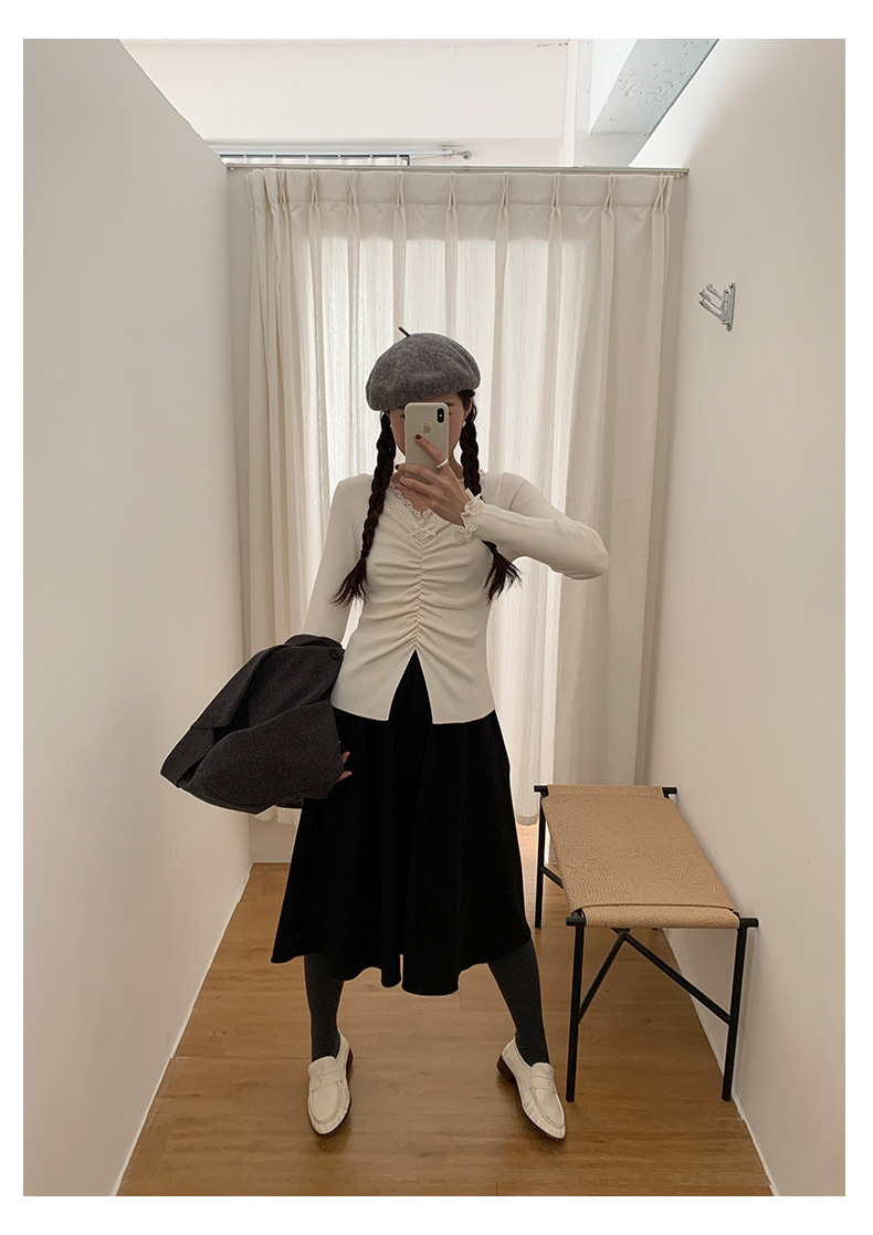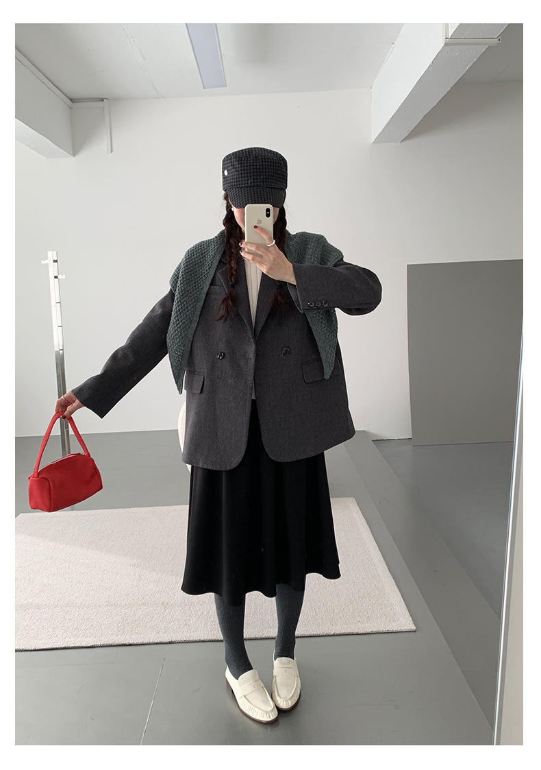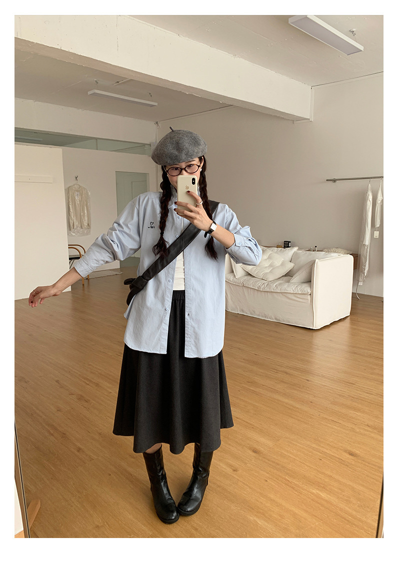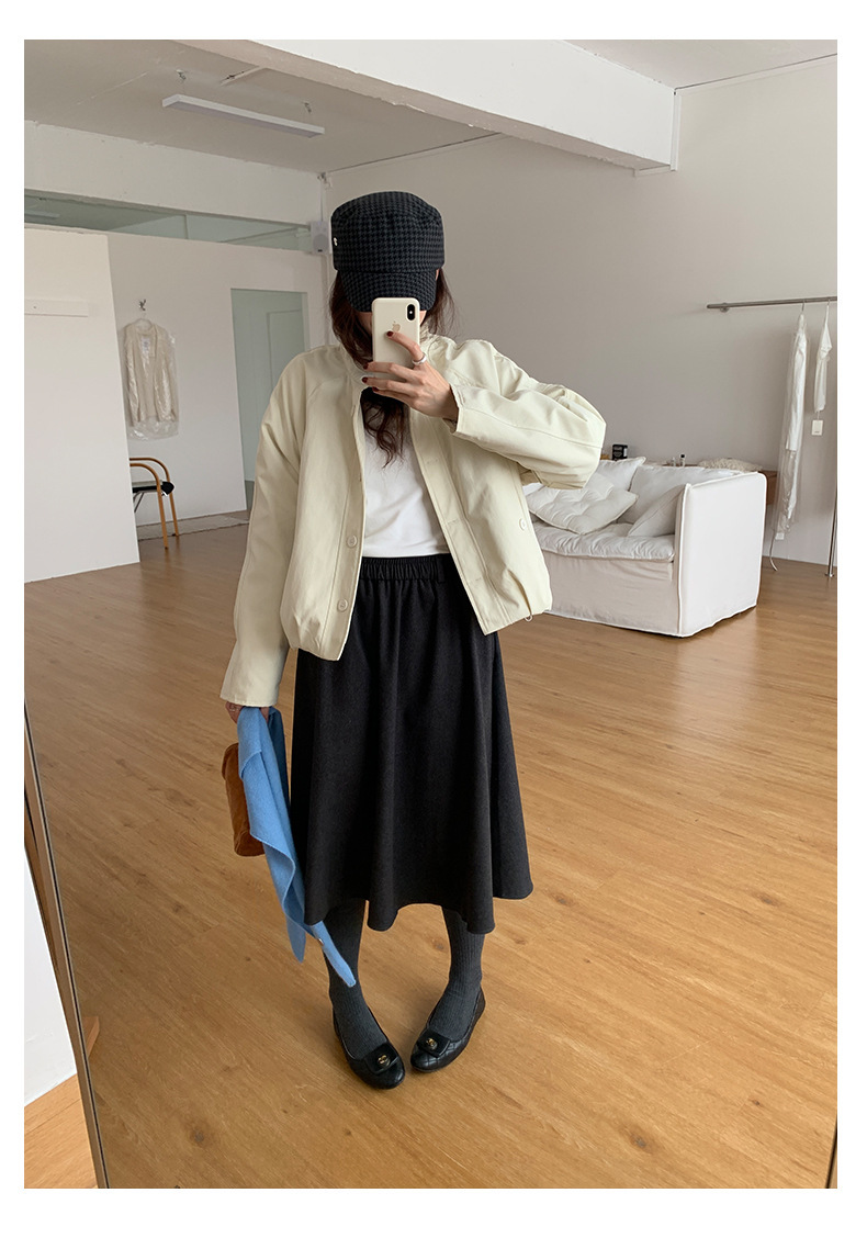 *o-ha-you*【FHZH1GF5041096】復古鬆緊高腰毛呢半身裙女秋冬休閒包臀A字中長版傘裙-2色