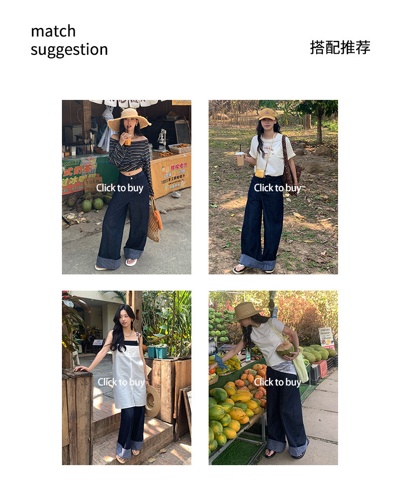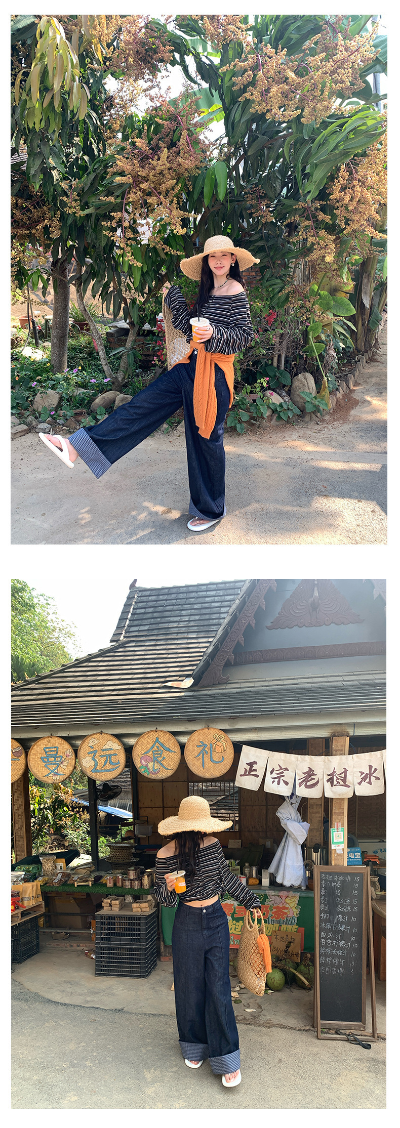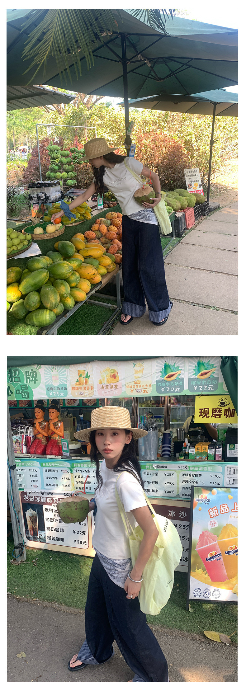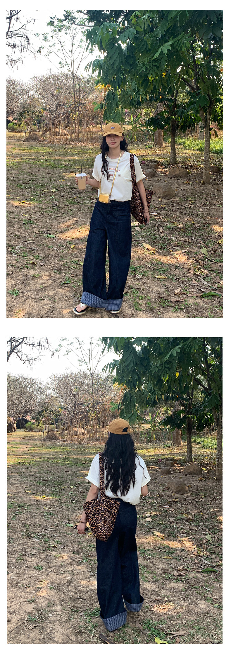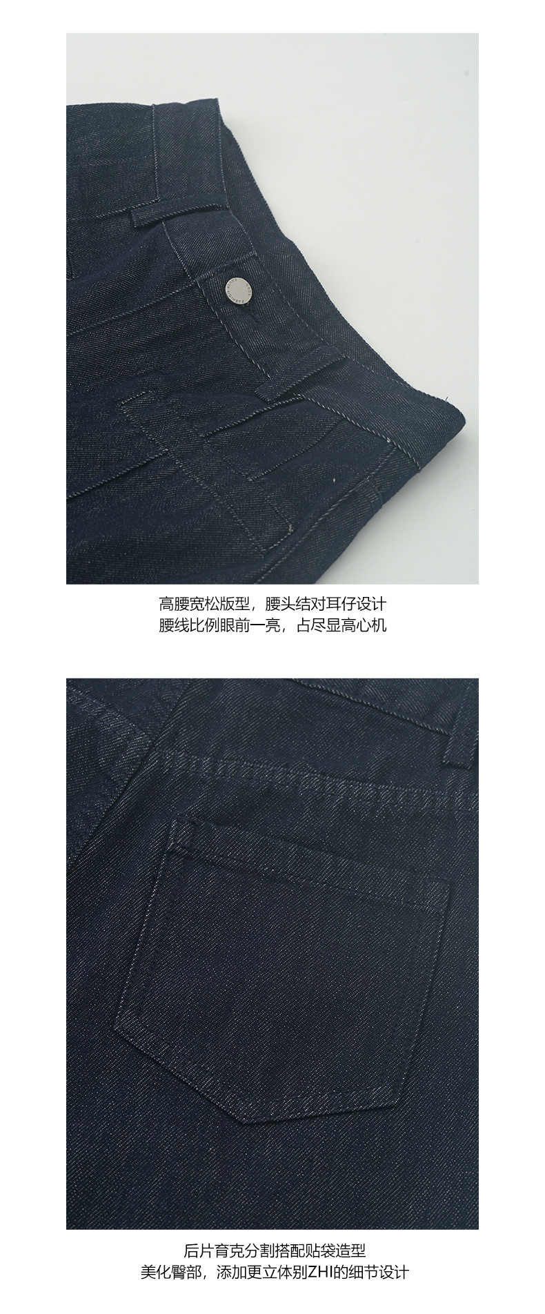 *o-ha-you*【FHZH1HA5020095】格紋褲腳拼接高腰闊腿牛仔褲2025夏款顯瘦時尚款