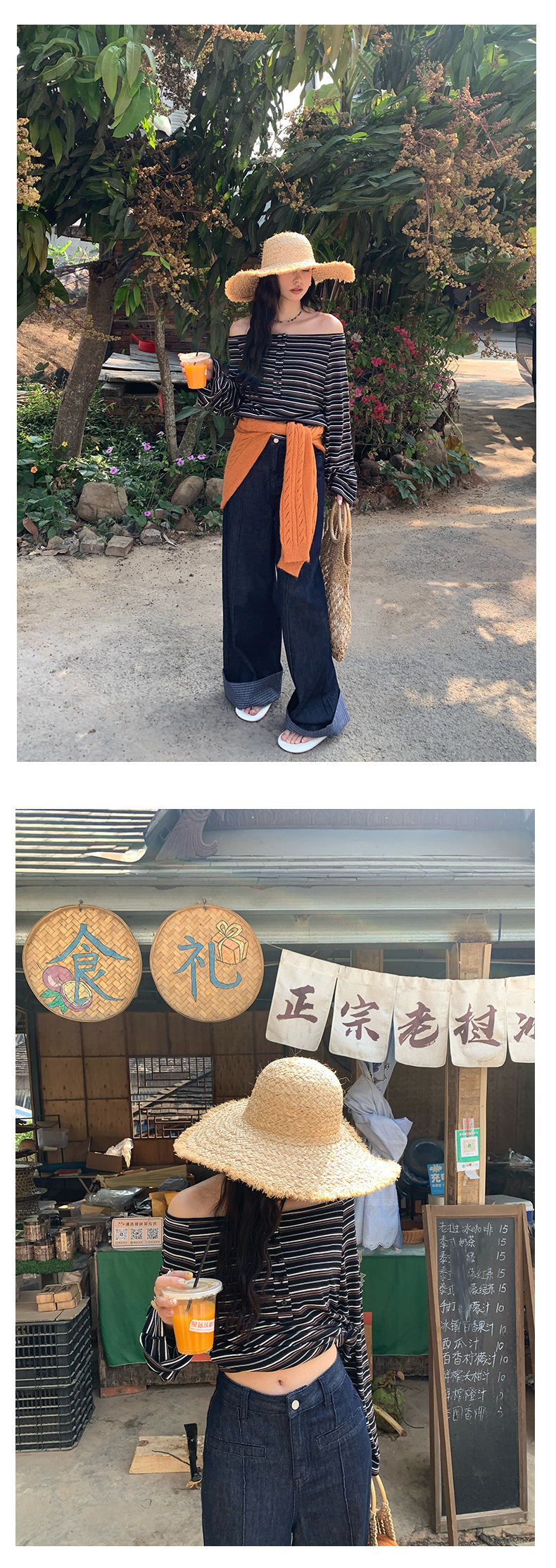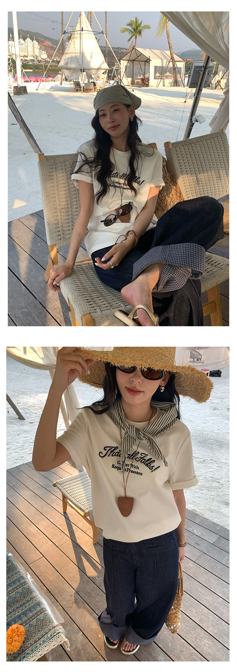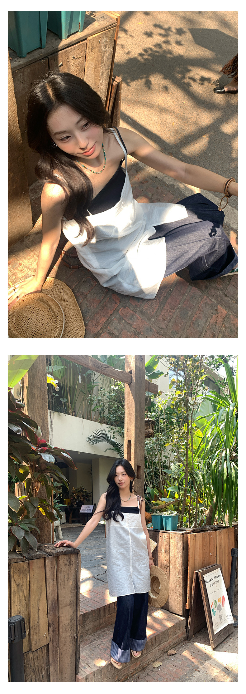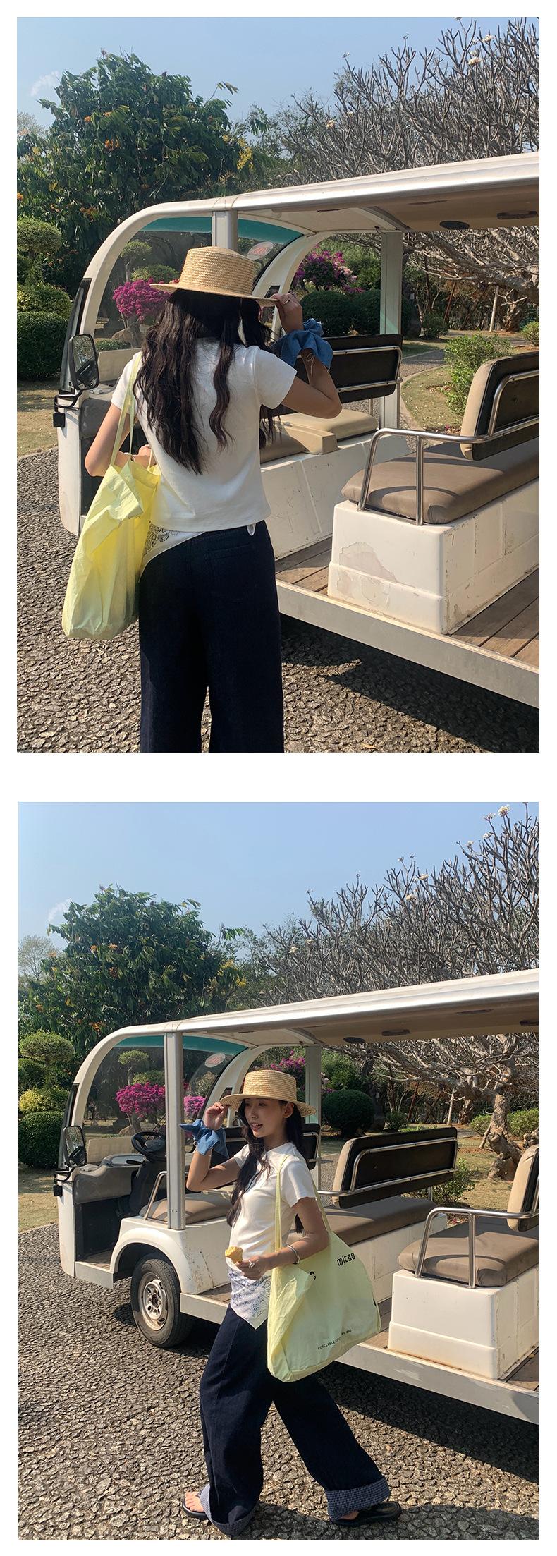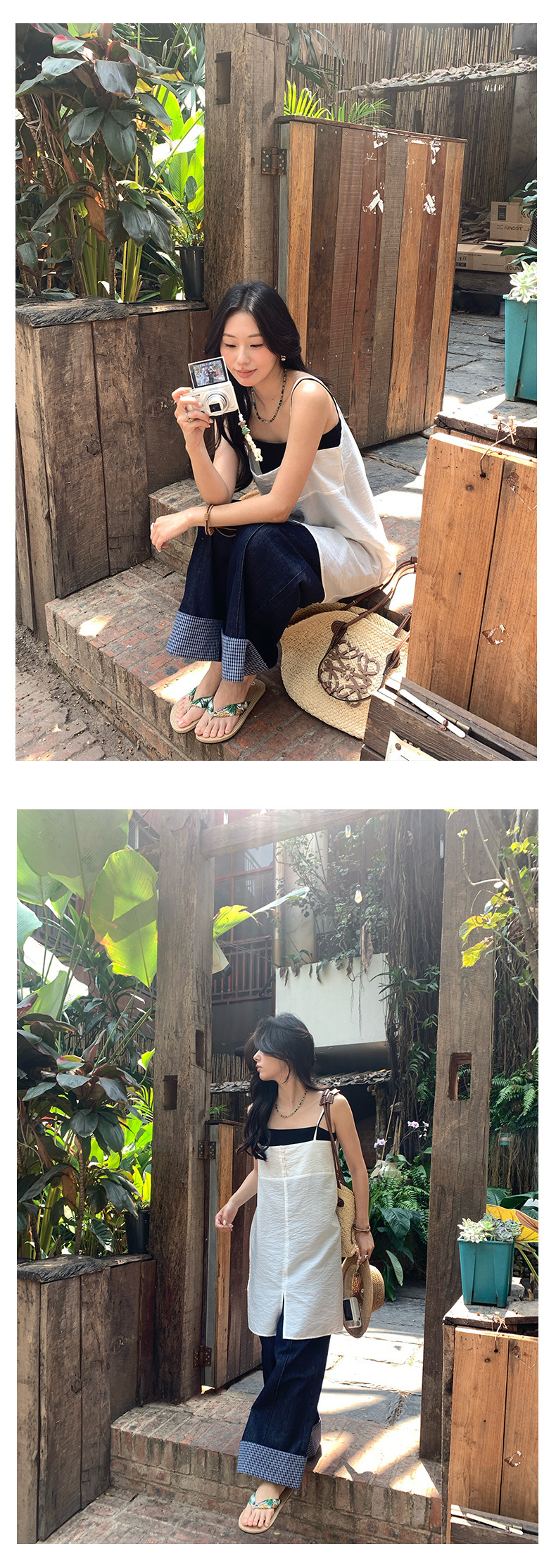 *o-ha-you*【FHZH1HA5020095】格紋褲腳拼接高腰闊腿牛仔褲2025夏款顯瘦時尚款