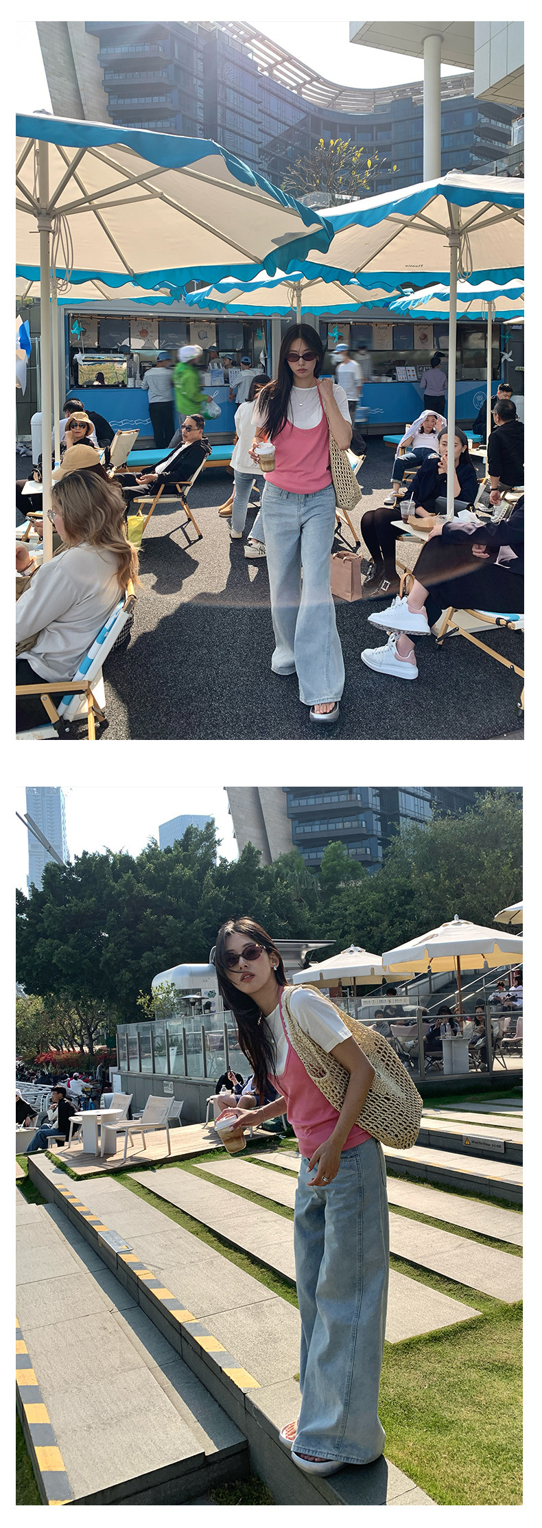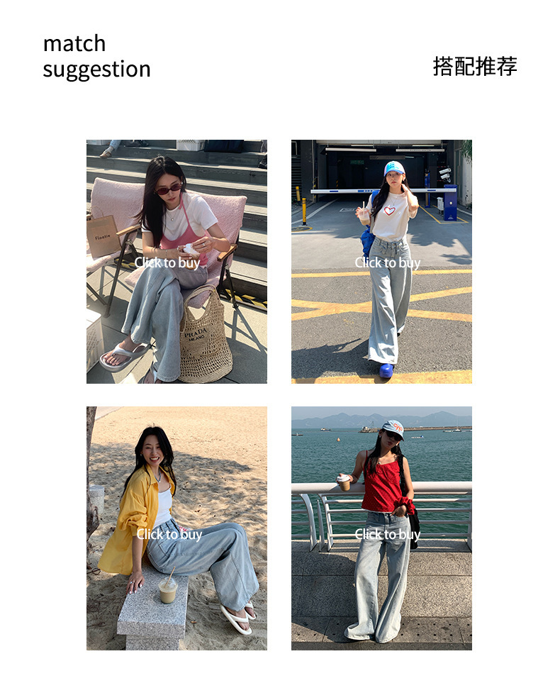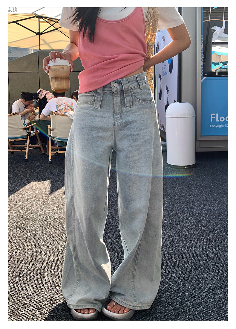 *o-ha-you*【FHZH1HA5020317】高腰闊腿寬鬆垂墜感設計牛仔長褲2025夏款隨性潮流款-如有需要請先諮詢
