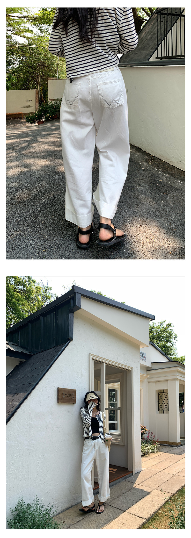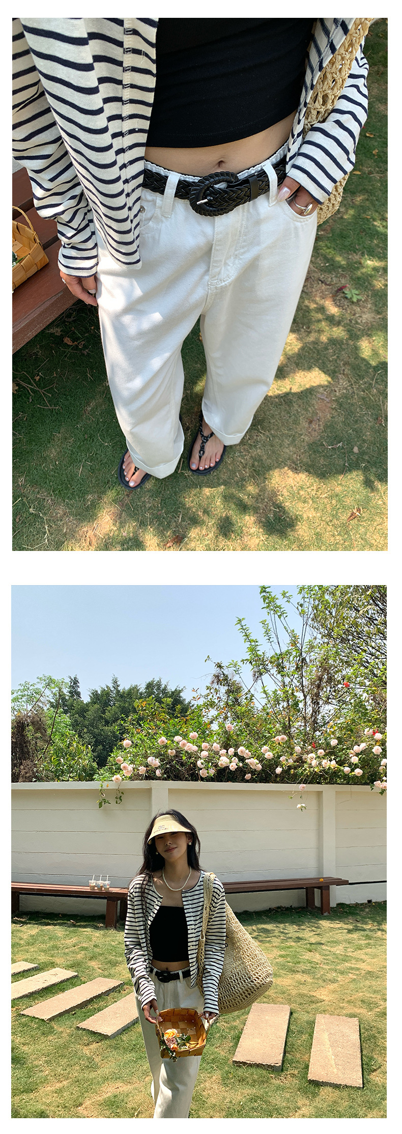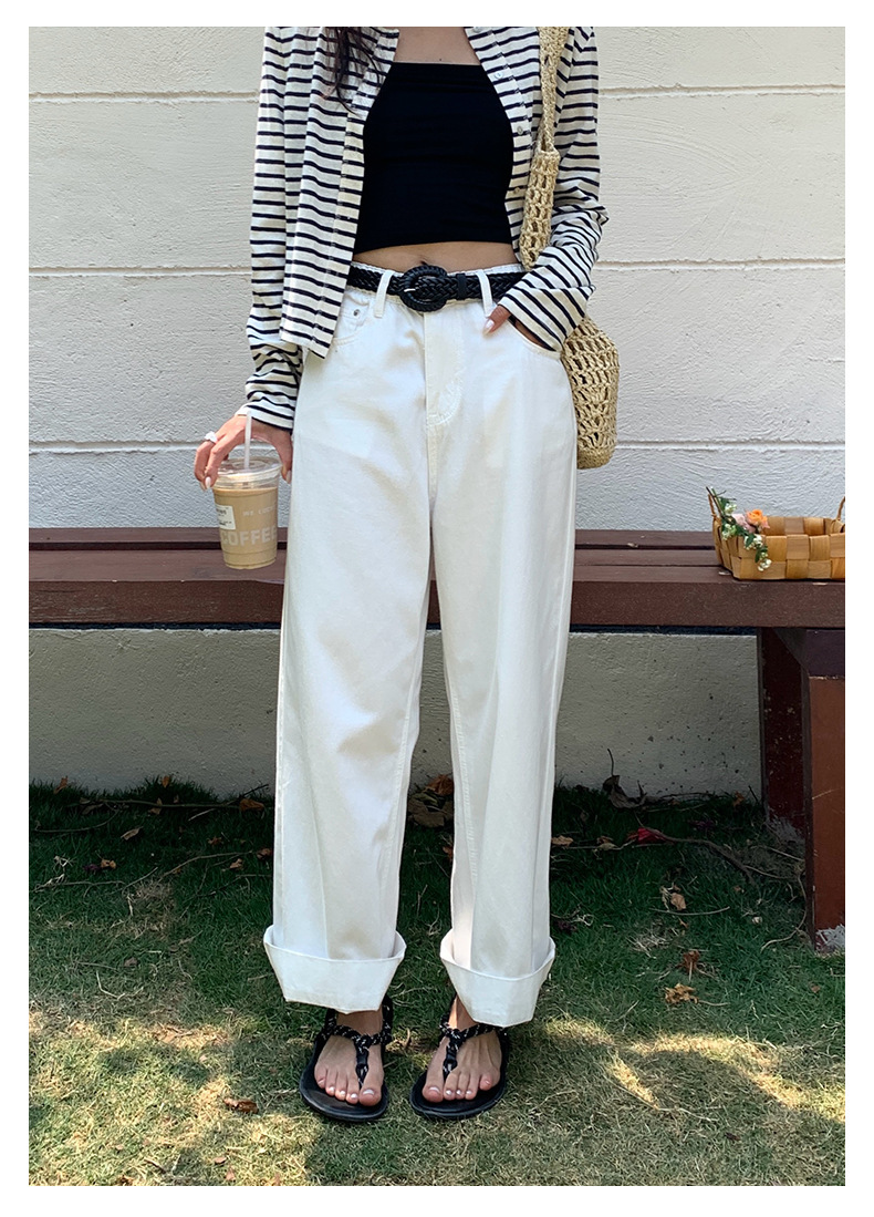 *o-ha-you*【FHZH1HA5020326】搭配黑色編織腰帶高腰寬鬆闊腿牛仔褲2025夏款簡約時尚-如有需要請先諮詢