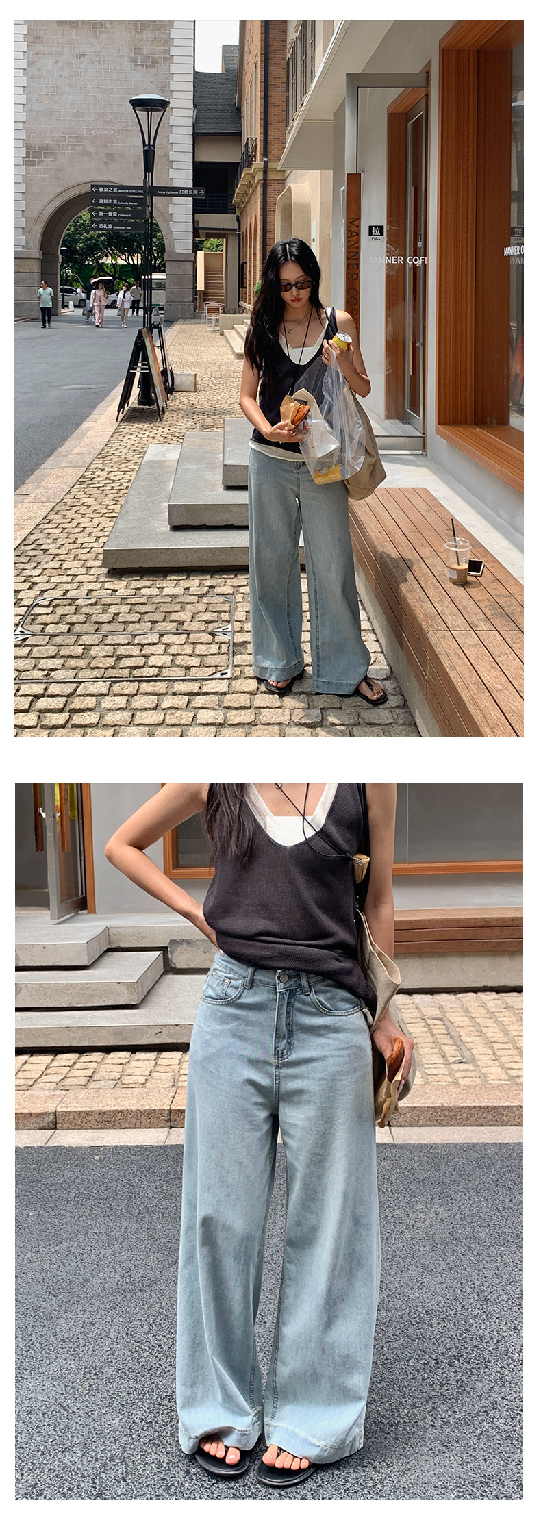 *o-ha-you*【FHZH1HA5020500】經典高腰闊腿牛仔褲2025夏寬鬆休閒時尚百搭顯瘦長褲-如有需要請先諮詢