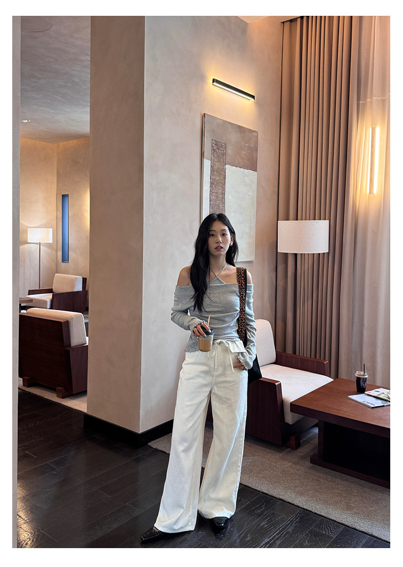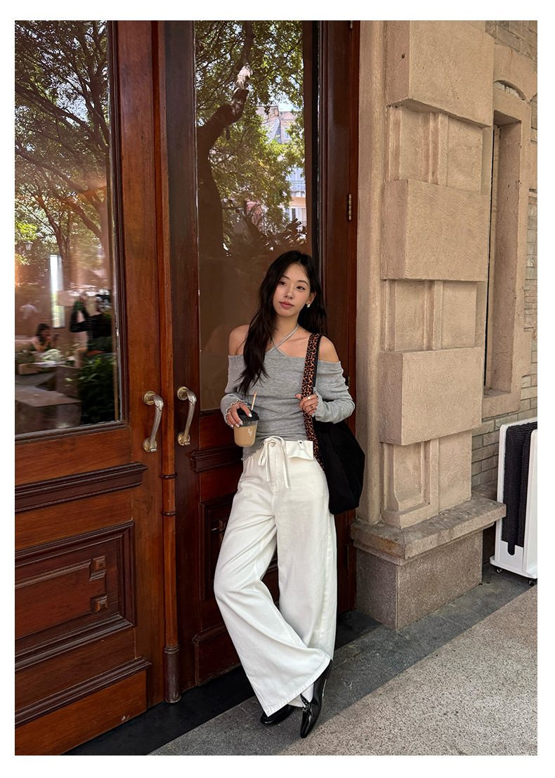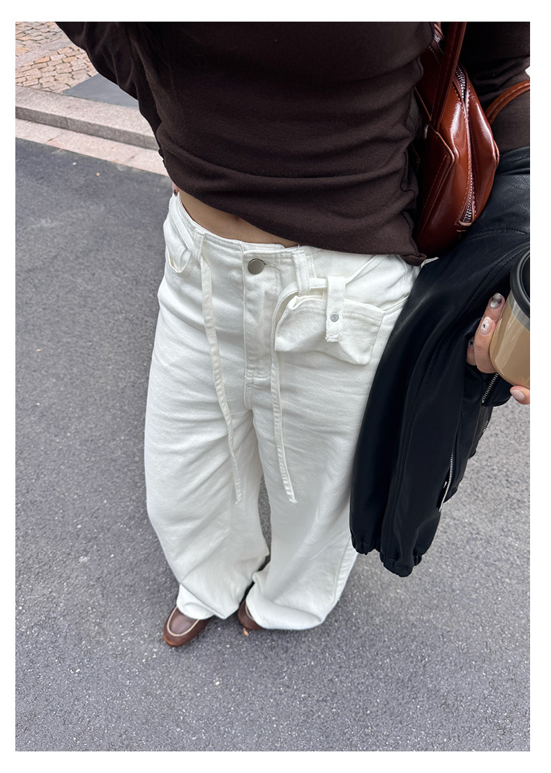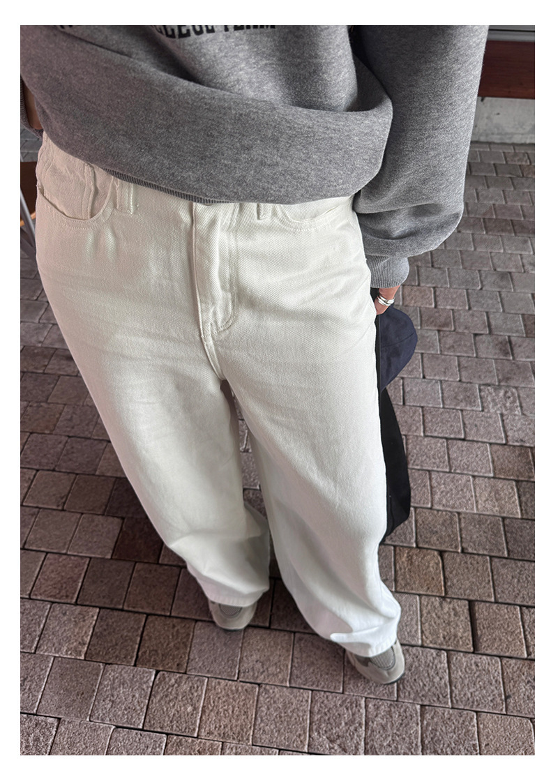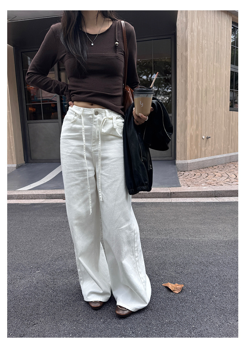 *o-ha-you*【FHZH1HA5030059】韓版白色窄版闊腿褲牛仔褲高腰寬鬆垂感拖地直筒褲-2色