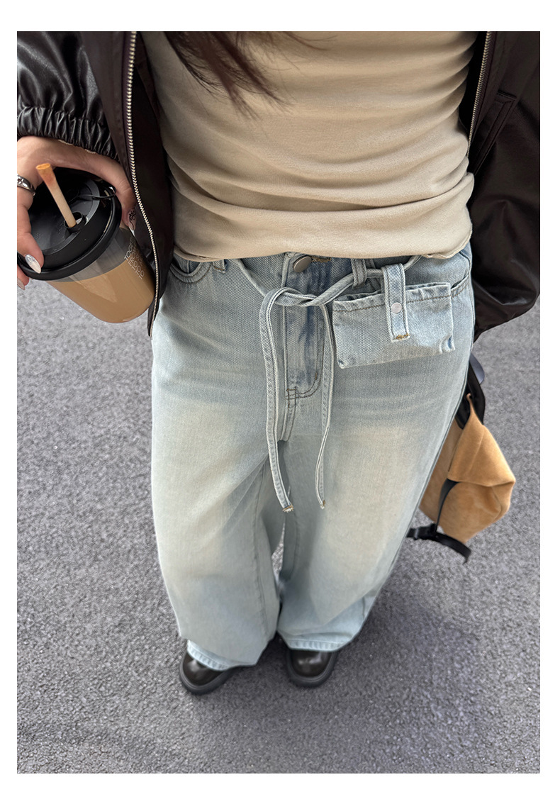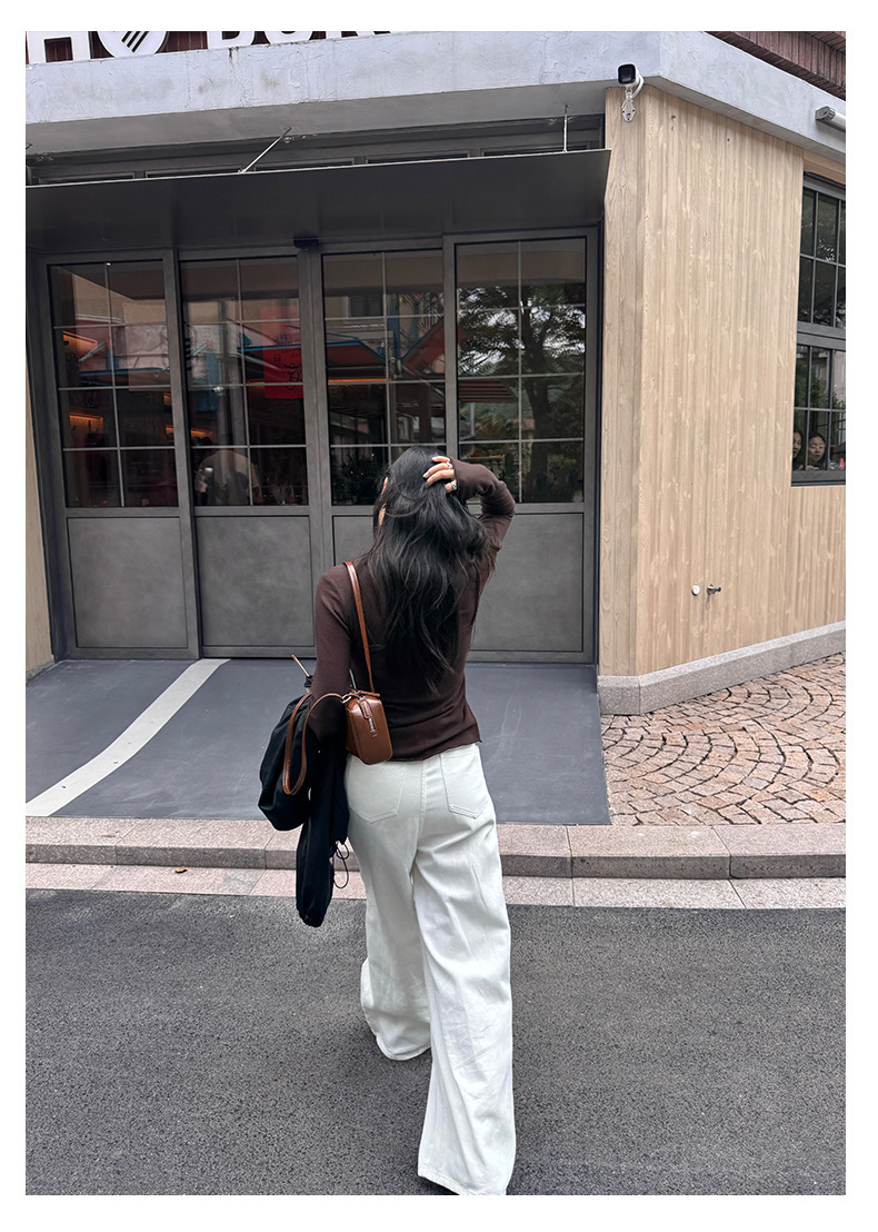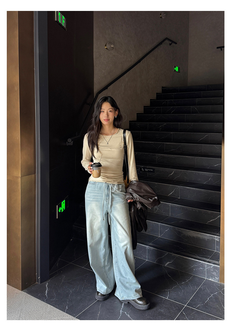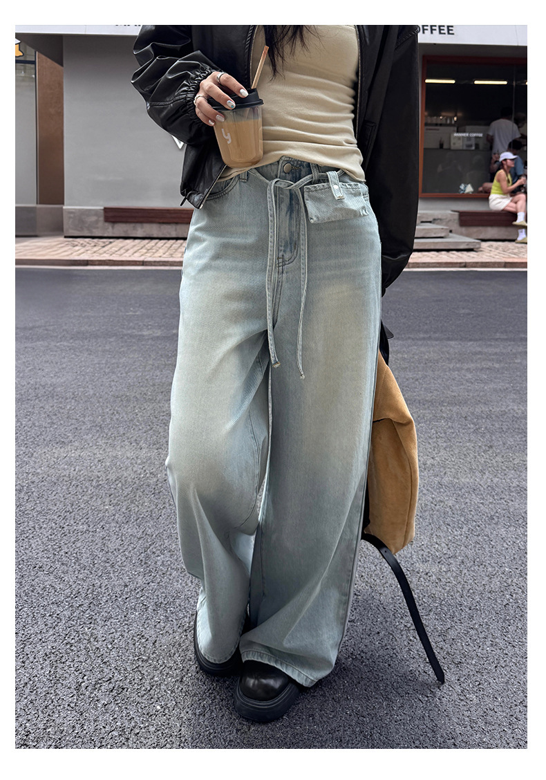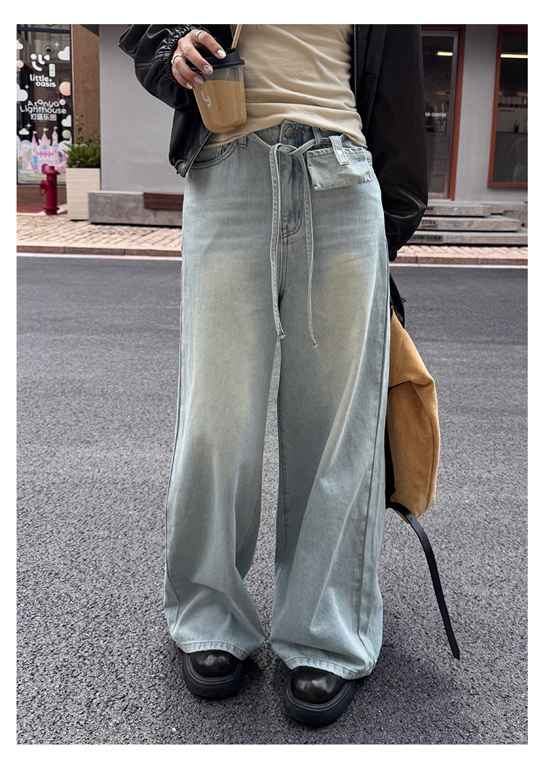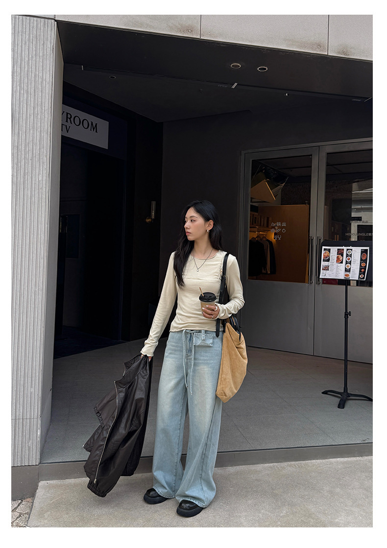 *o-ha-you*【FHZH1HA5030059】韓版白色窄版闊腿褲牛仔褲高腰寬鬆垂感拖地直筒褲-2色