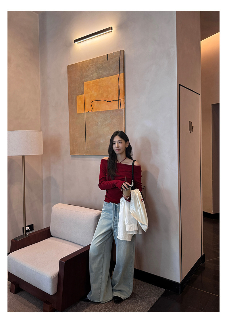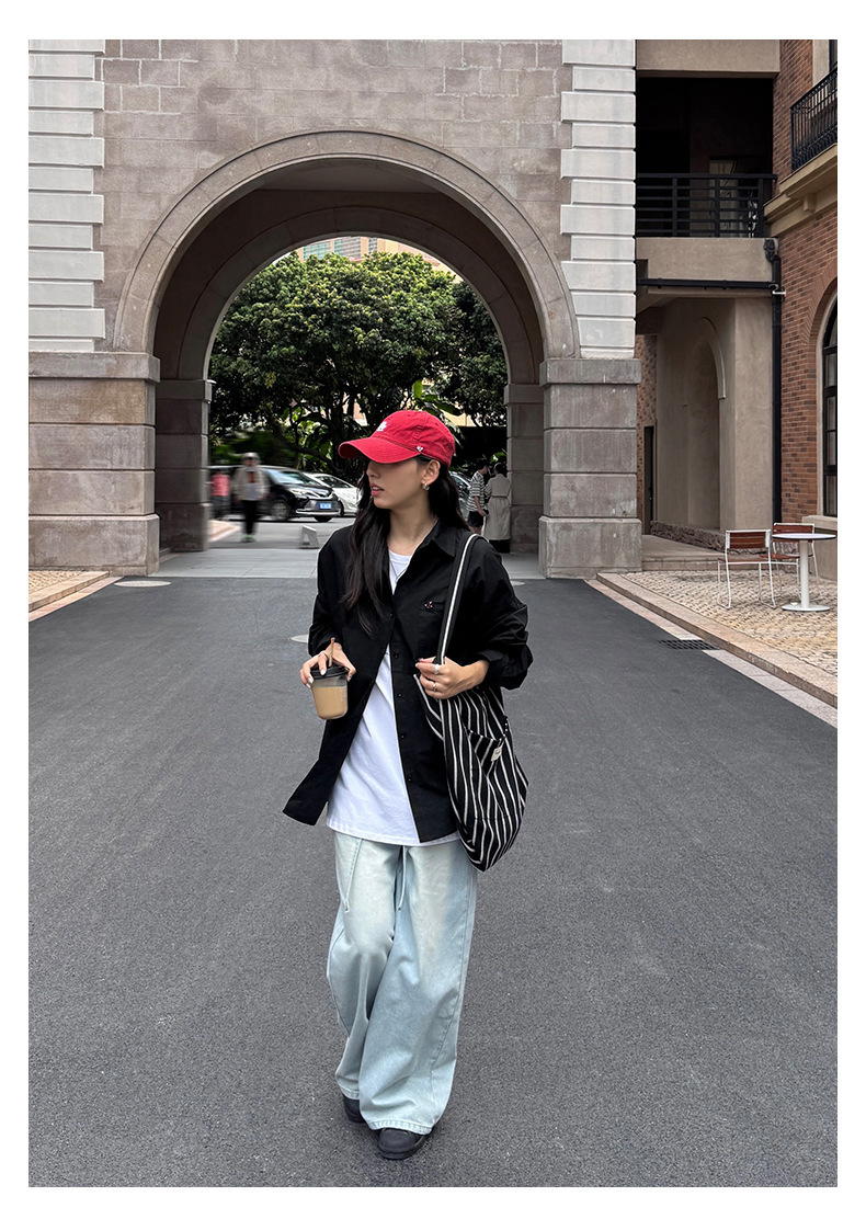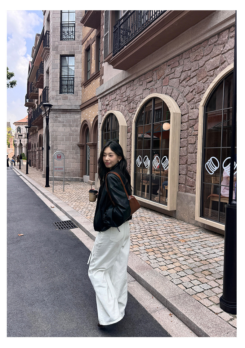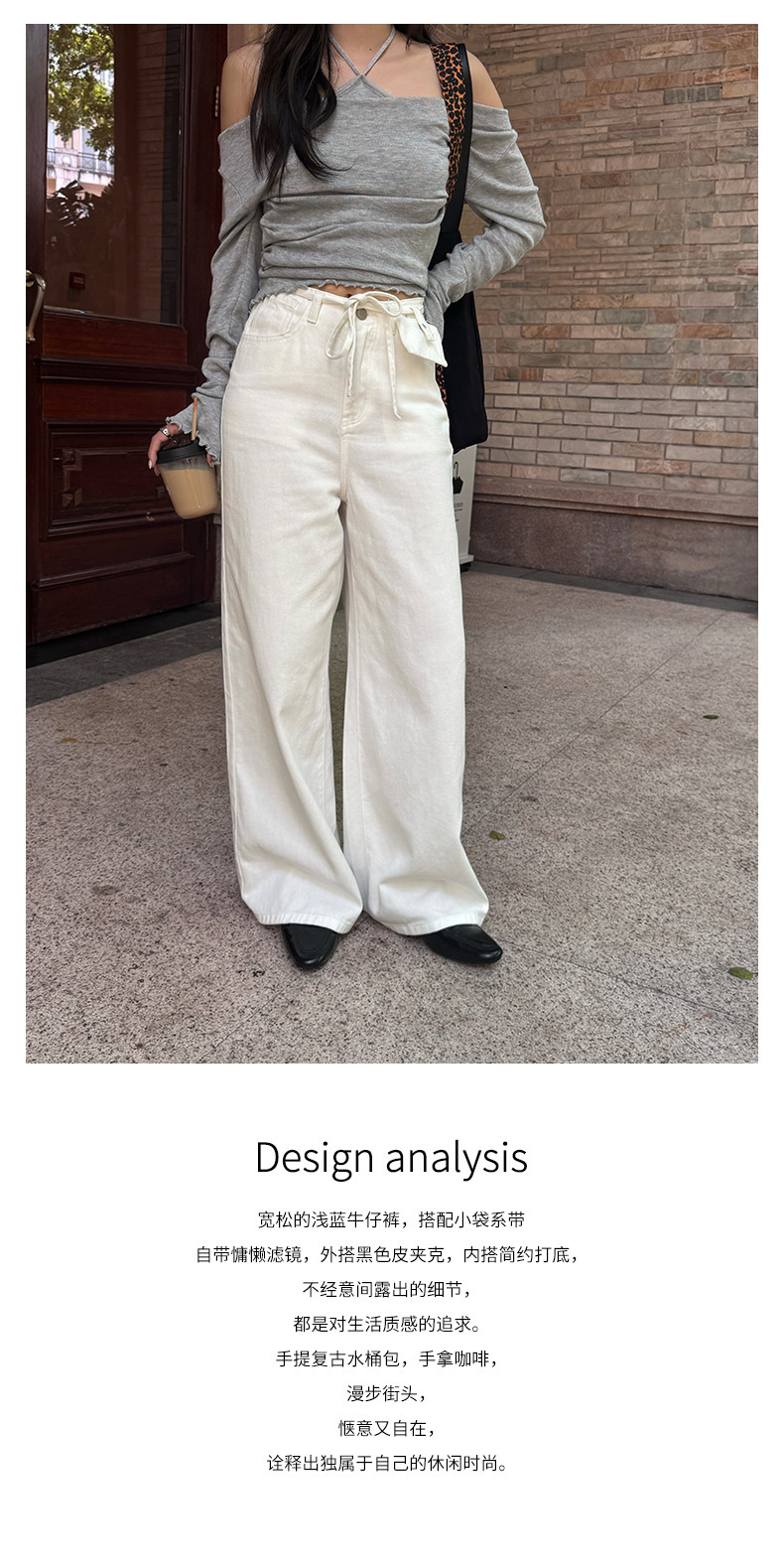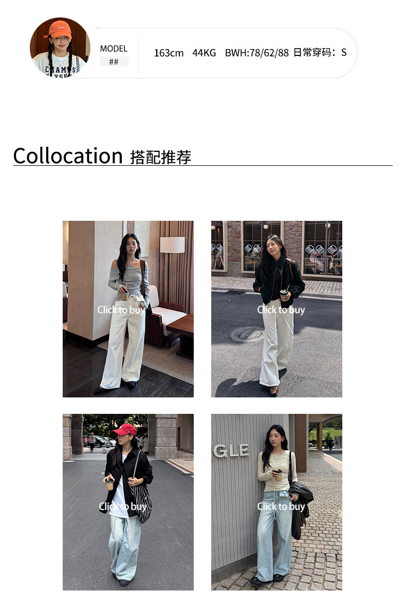 *o-ha-you*【FHZH1HA5030059】韓版白色窄版闊腿褲牛仔褲高腰寬鬆垂感拖地直筒褲-2色