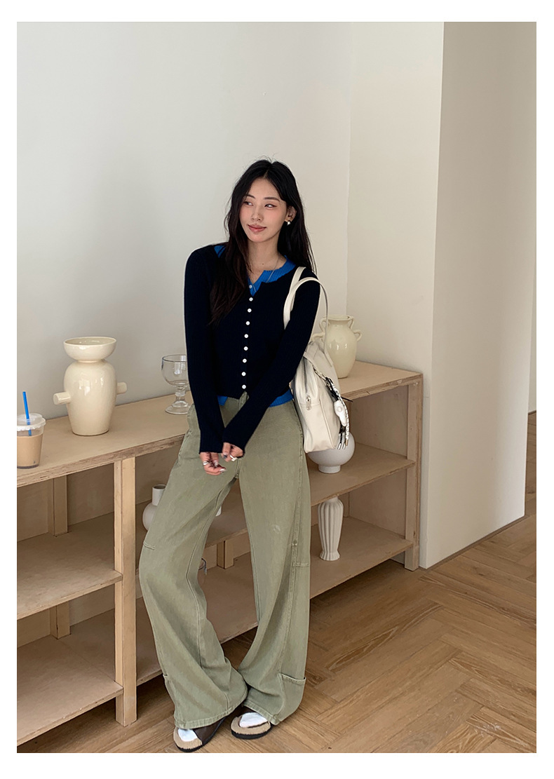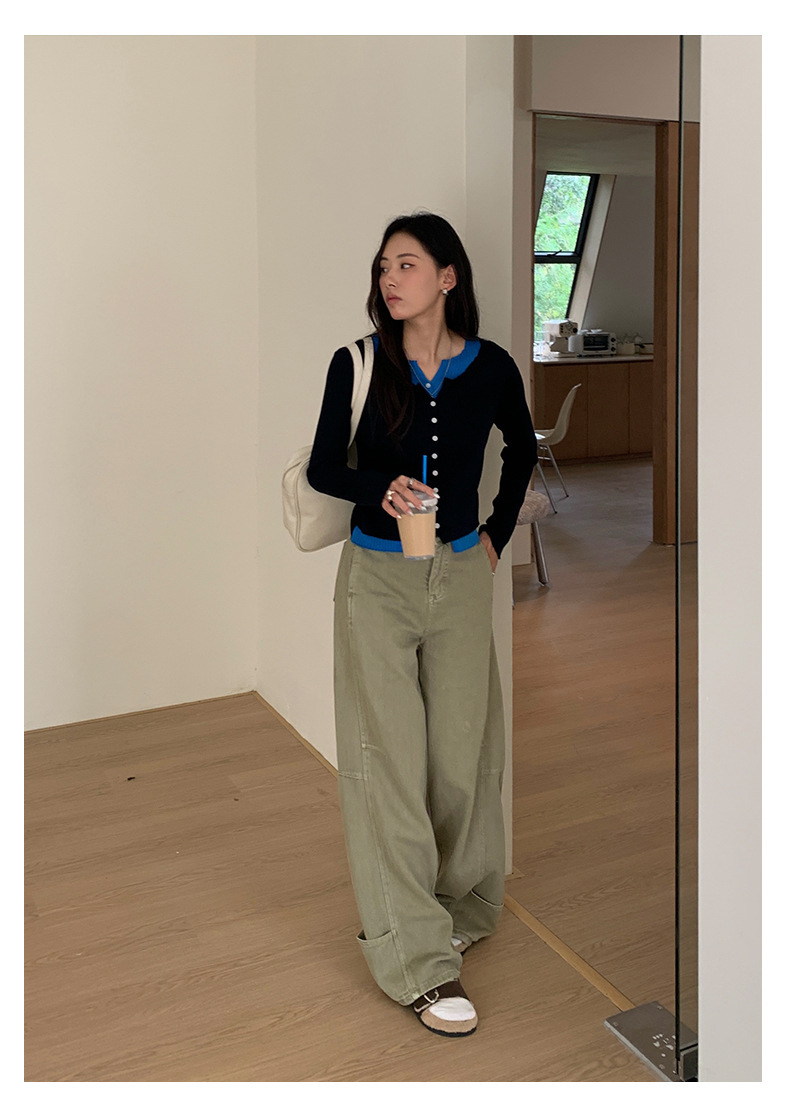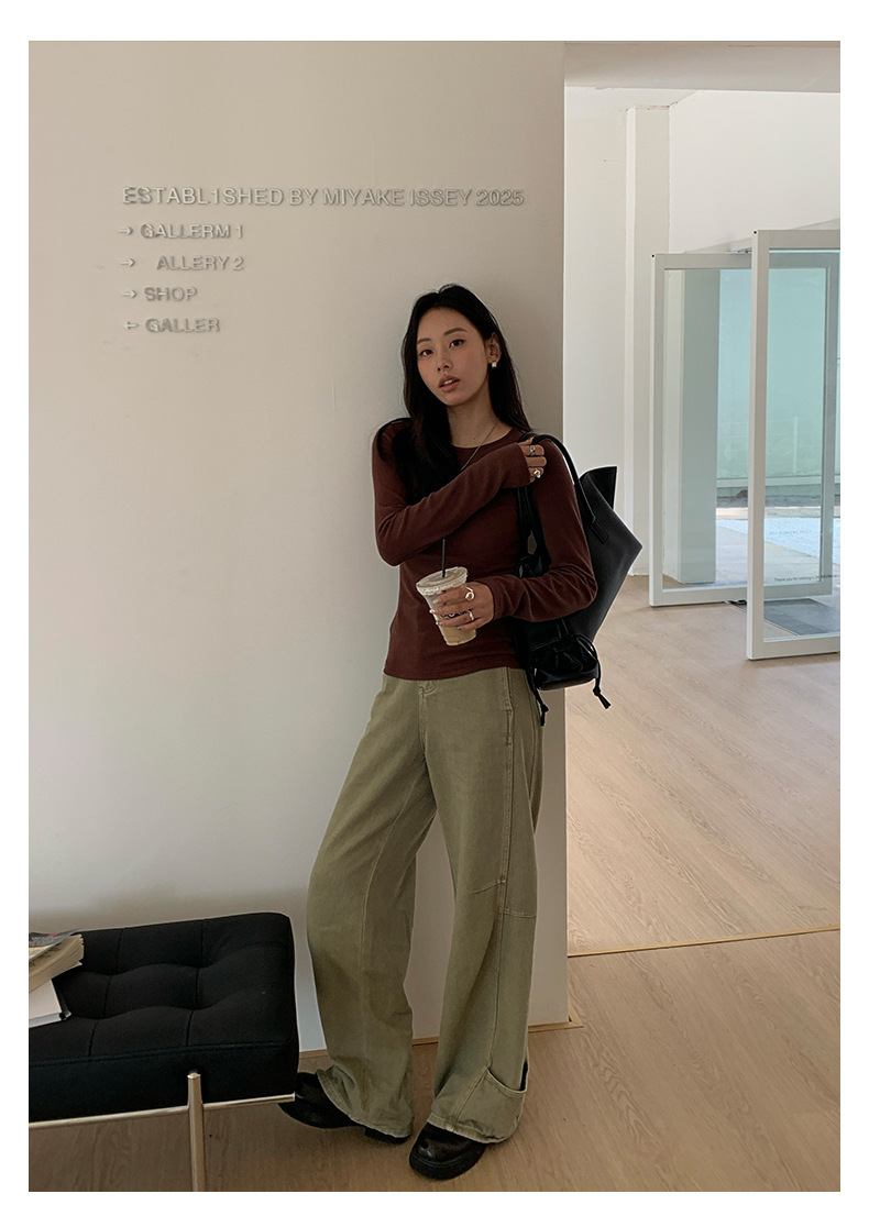 *o-ha-you*【FHZH1HA5030077】美式甜酷重工彎刀休閒褲秋季高腰闊腿工裝長褲-2色