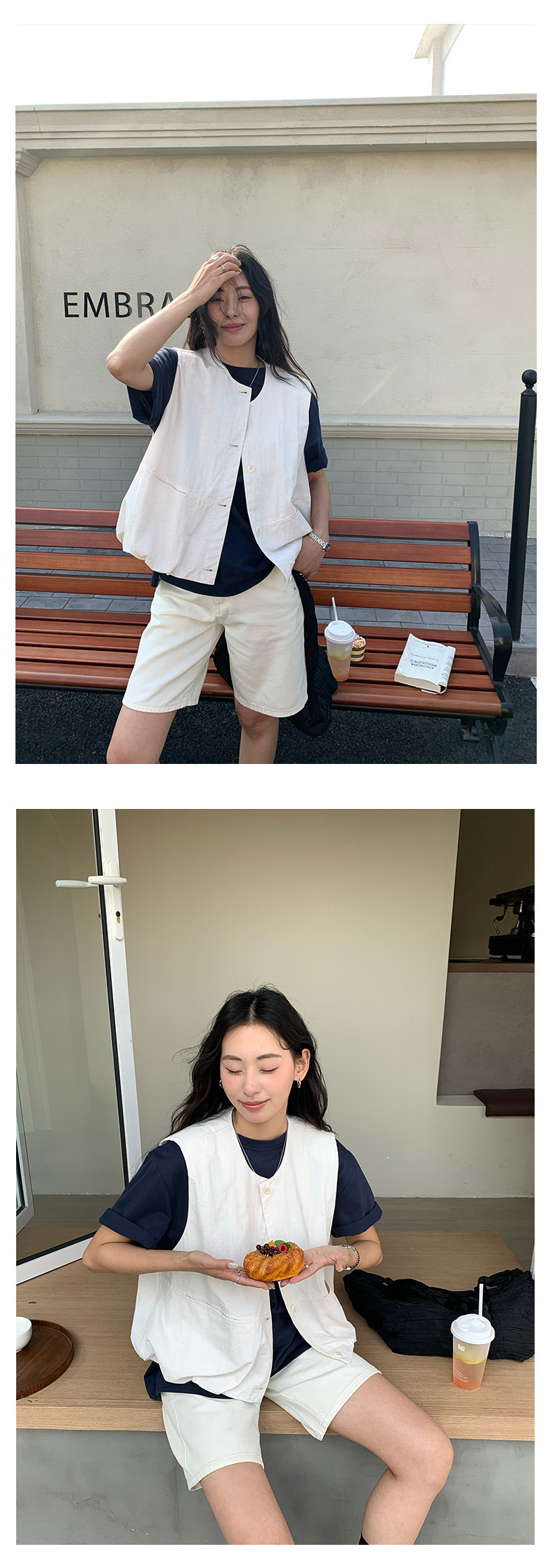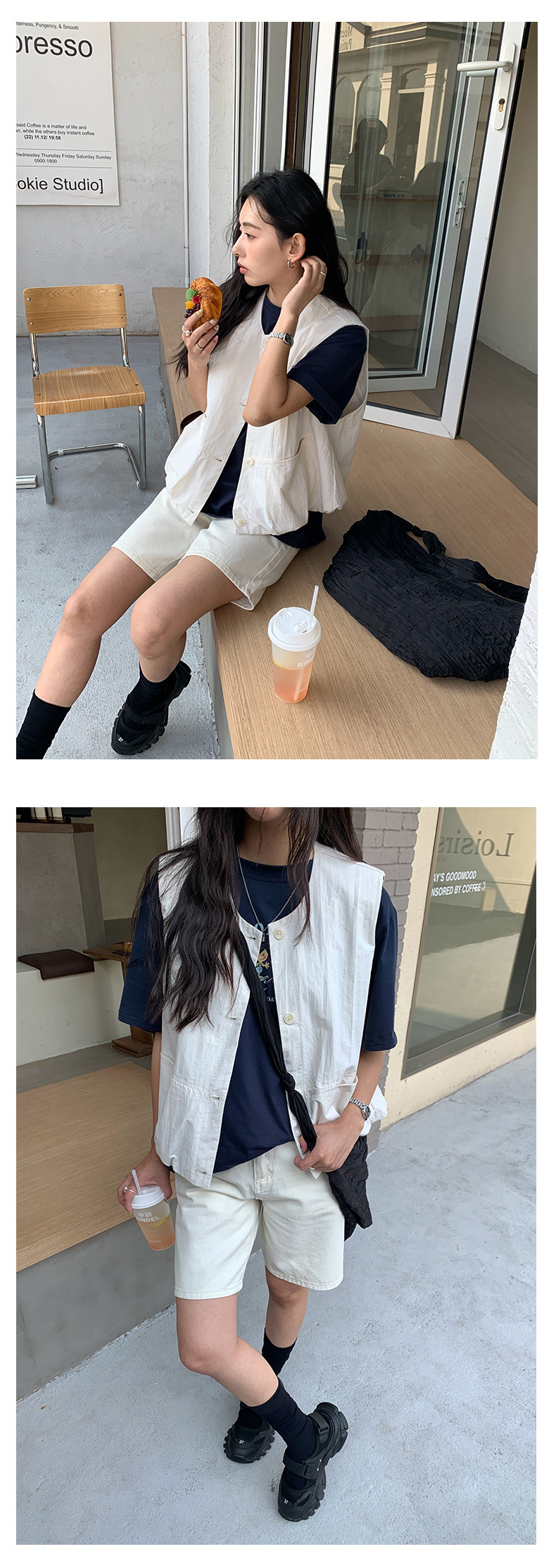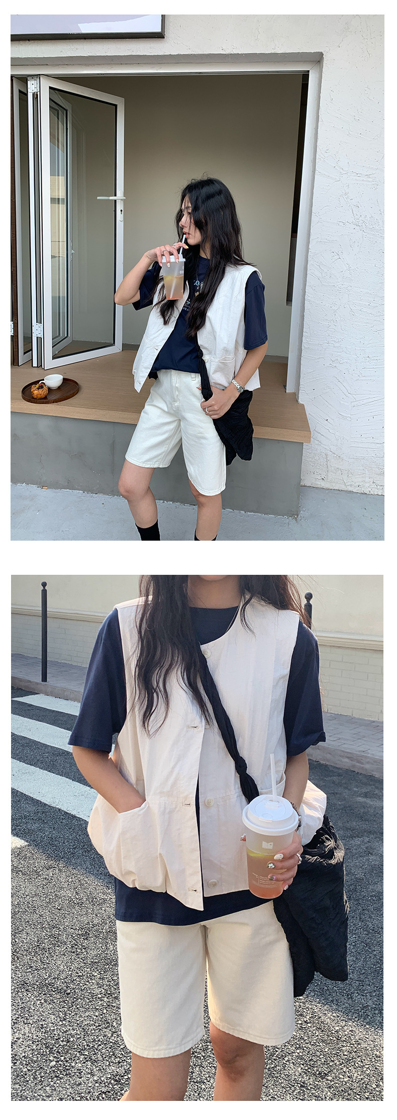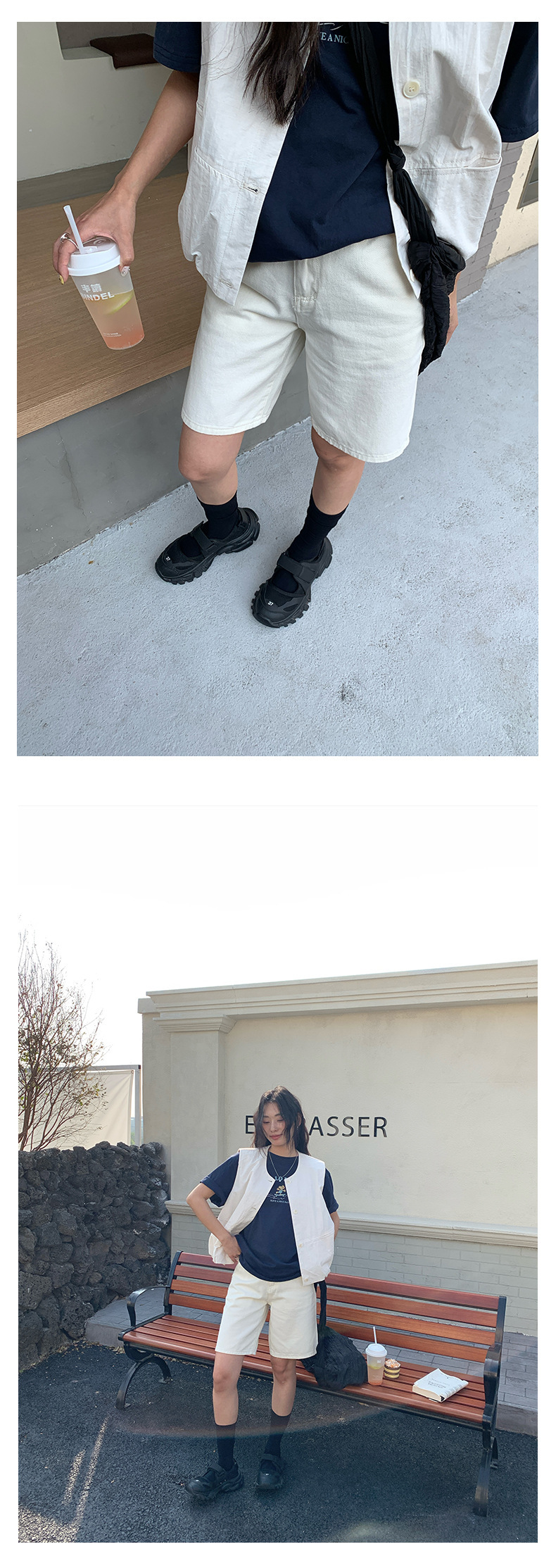 *o-ha-you*【FHZH1HB5010209】簡約金屬扣點綴直筒寬鬆牛仔短褲2025春款舒適百搭-2色-如有需要請先諮詢