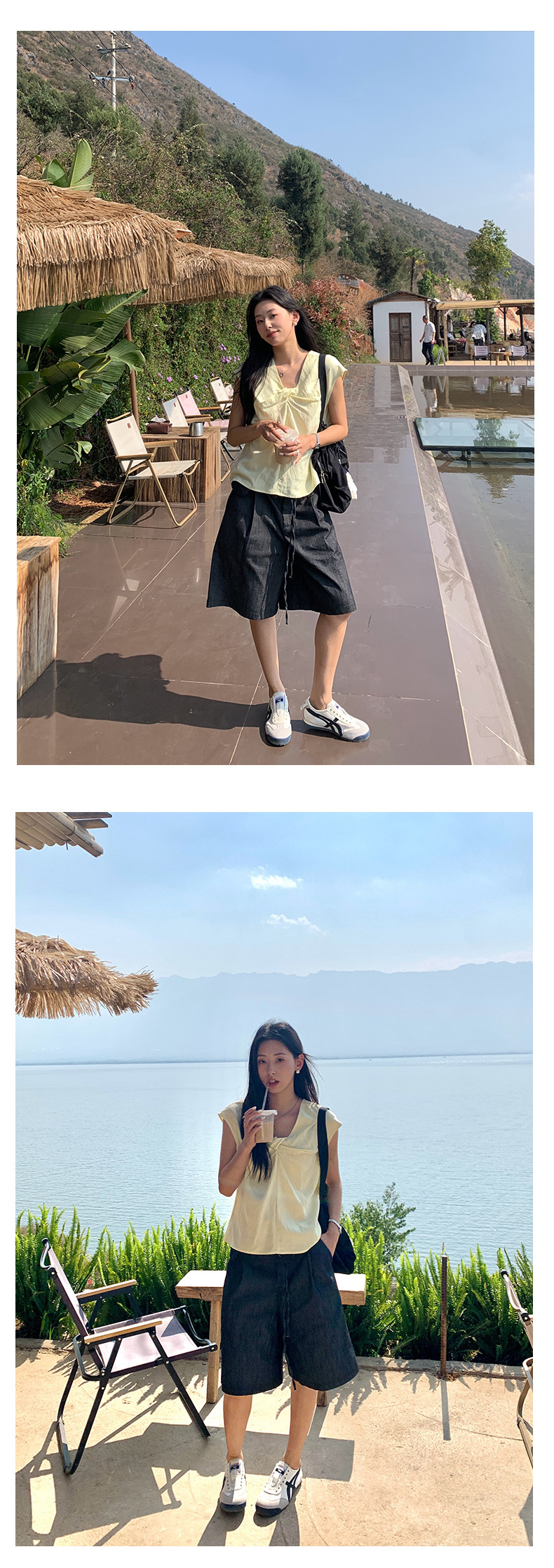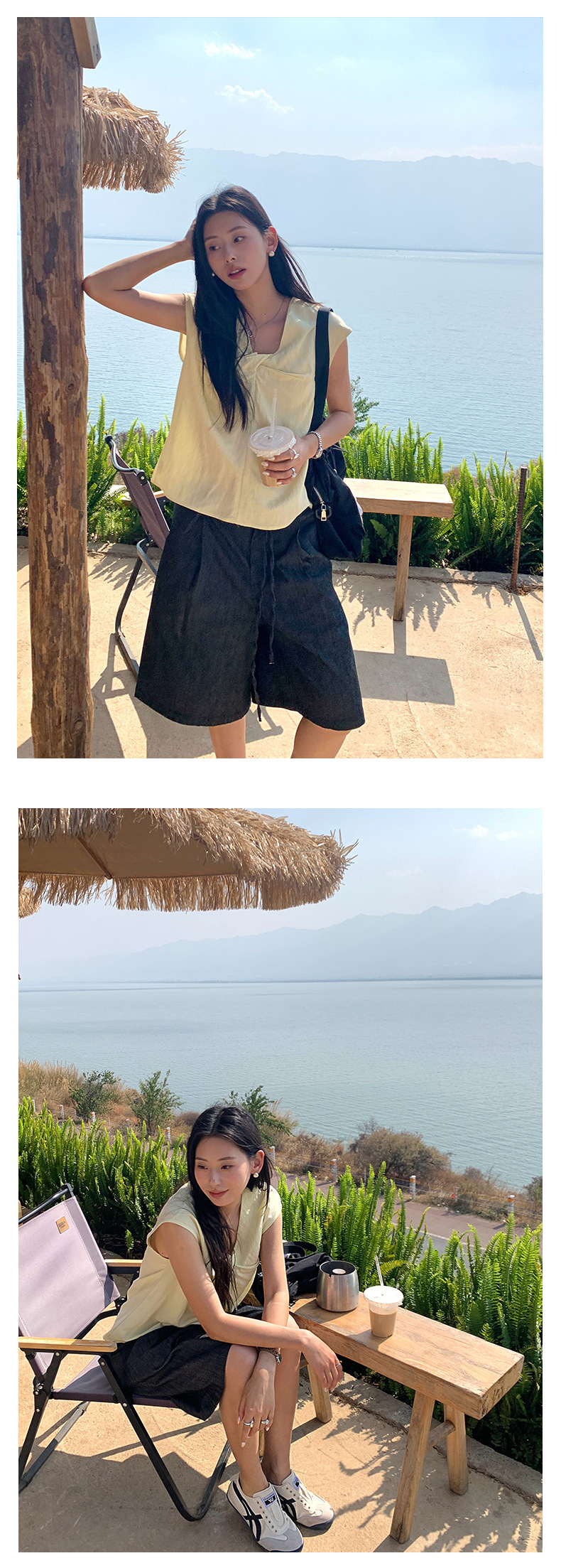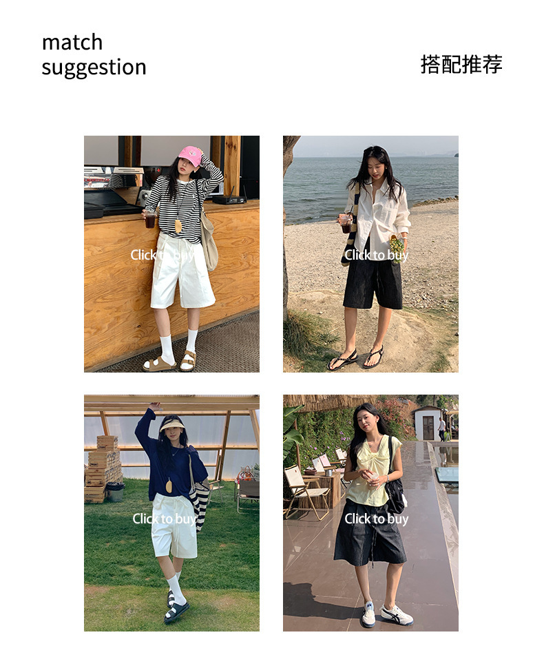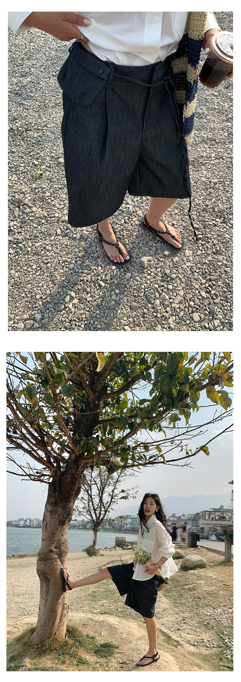 *o-ha-you*【FHZH1HB5020438】金屬扣配腰包經典五袋款牛仔短褲2025夏時尚個性褲子-2色-如有需要請先諮詢