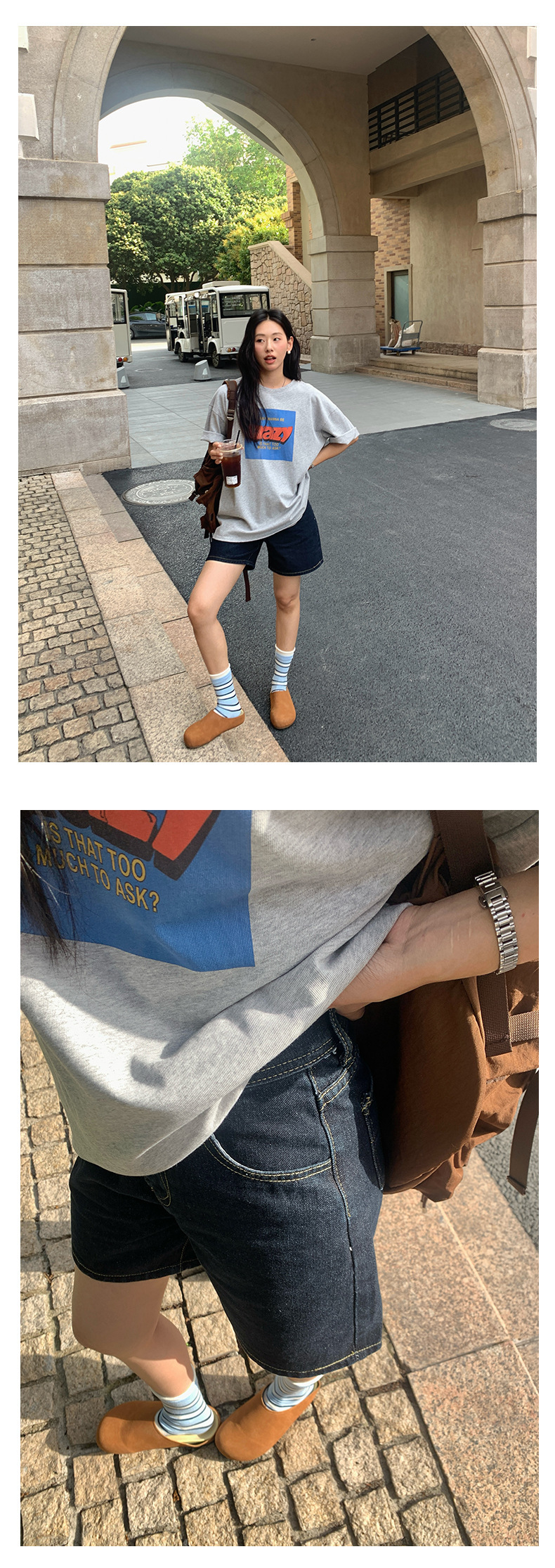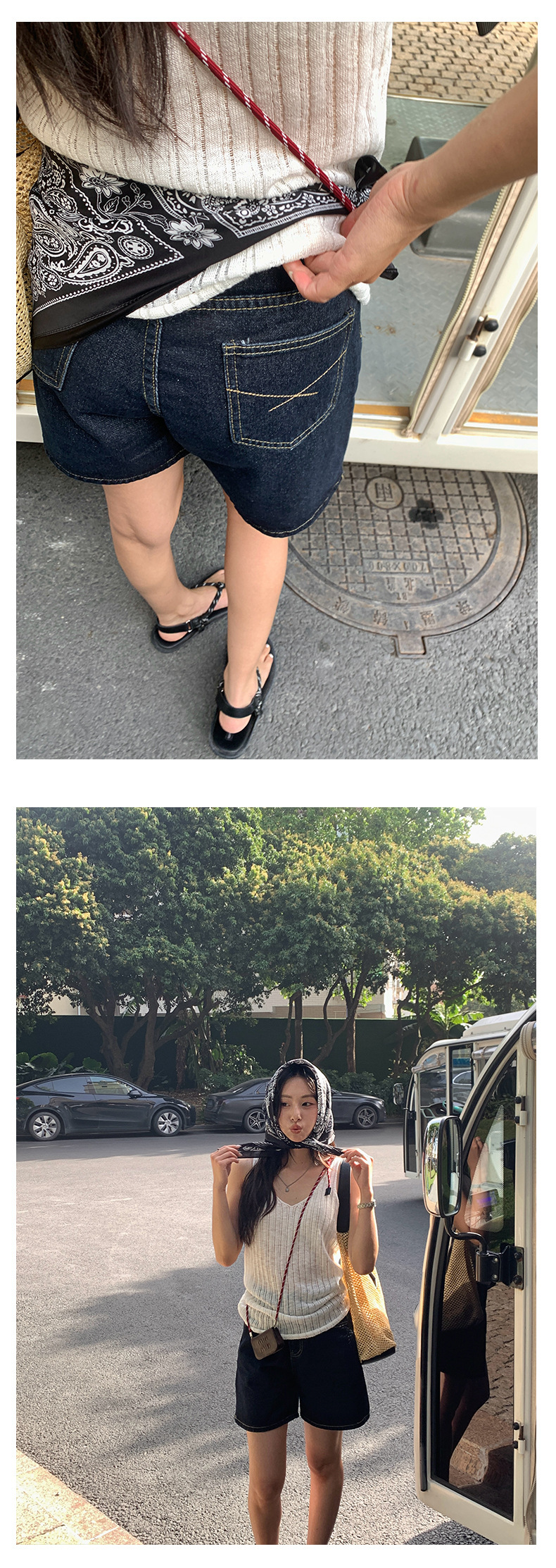 *o-ha-you*【FHZH1HB5020475】復古高腰寬鬆闊腿直筒牛仔短褲2025夏款時尚休閒百搭-如有需要請先諮詢