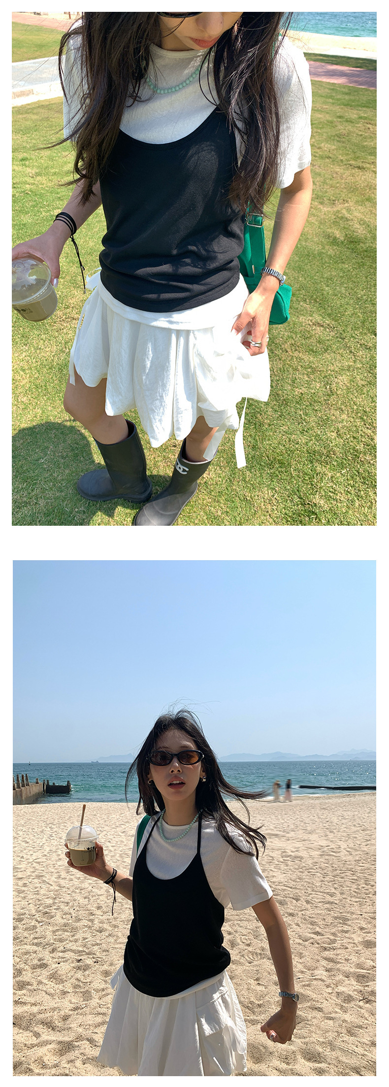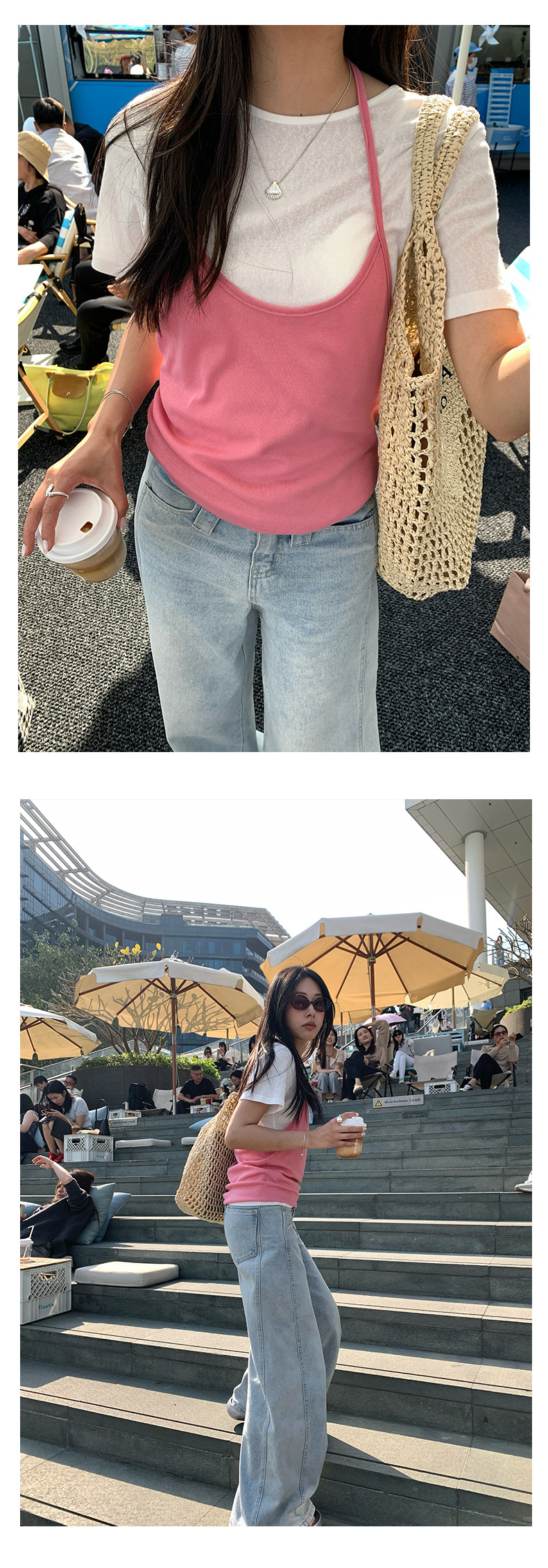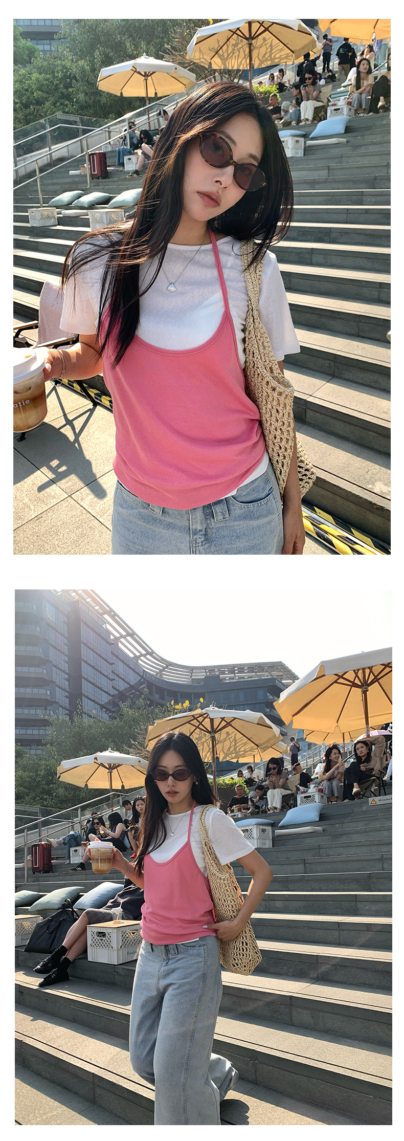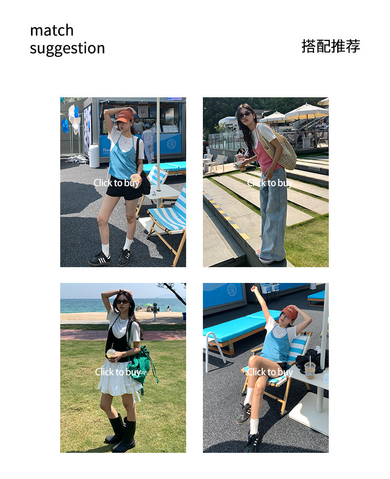 *o-ha-you*【FHZH1KA5020290】掛脖吊帶配短袖T恤兩件組2025夏款清新時尚套裝-3色-如有需要請先諮詢