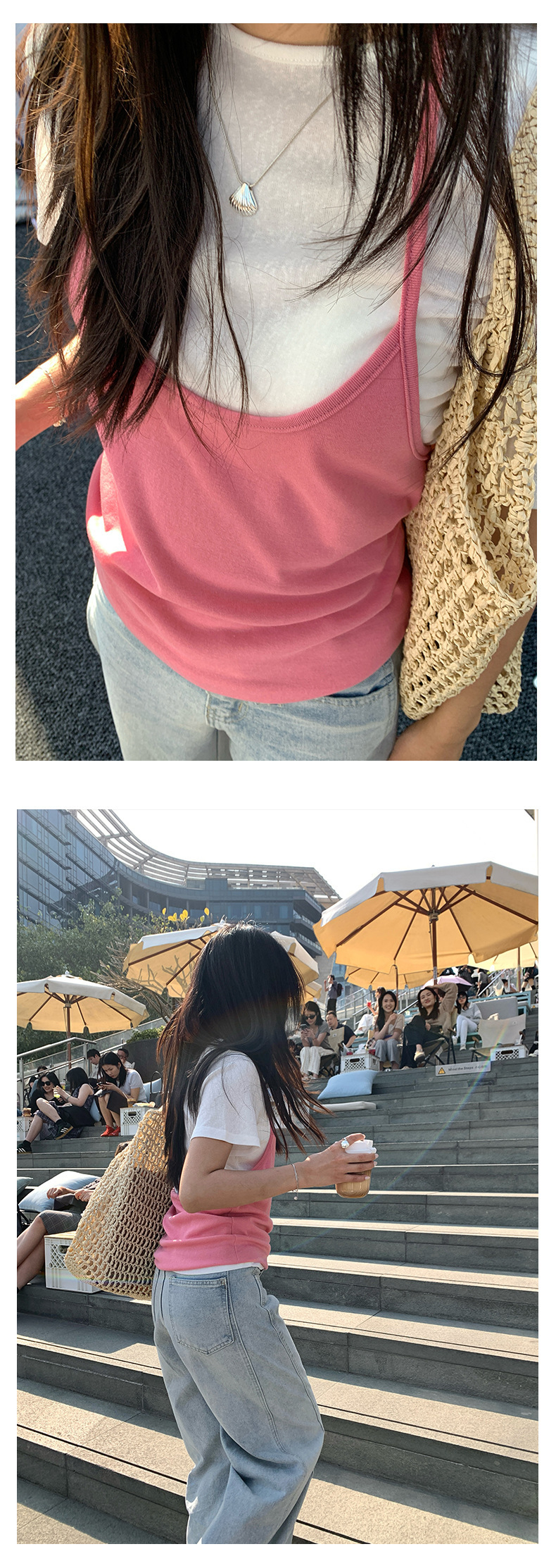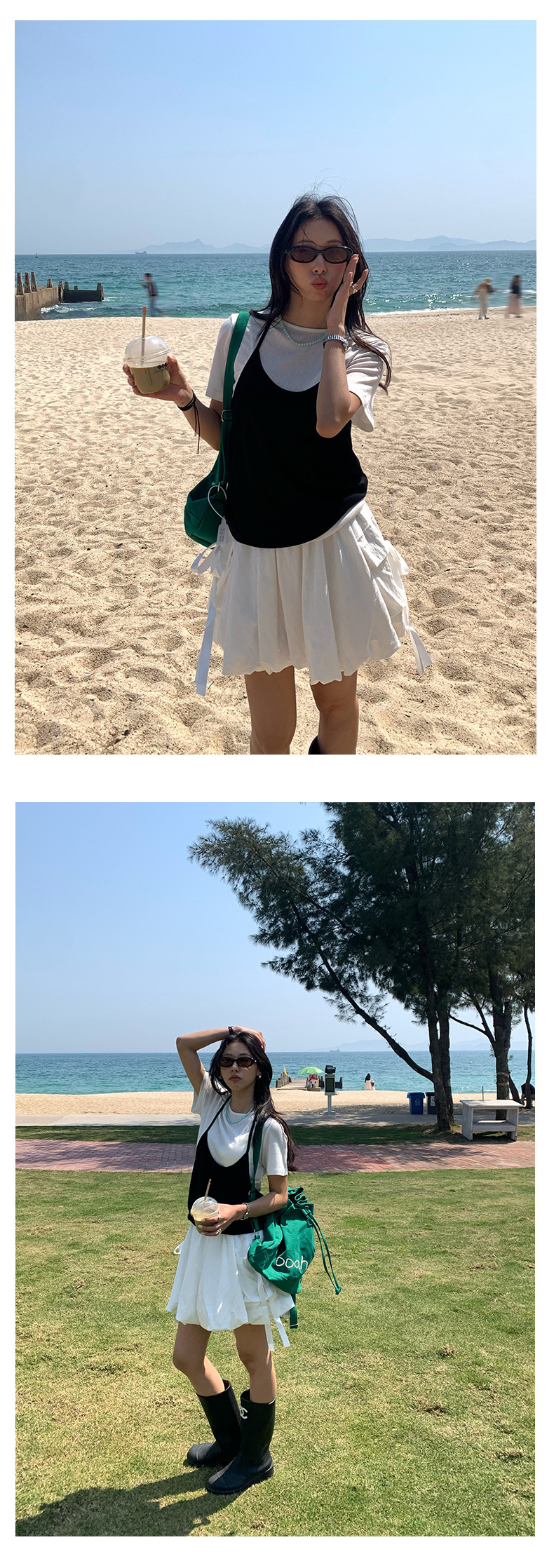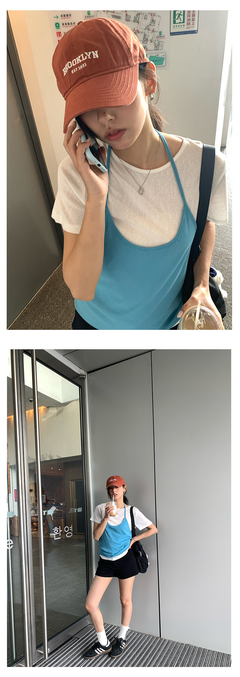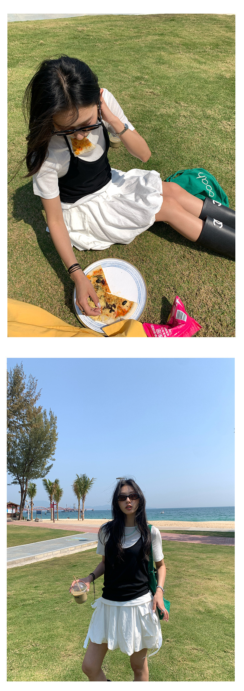 *o-ha-you*【FHZH1KA5020290】掛脖吊帶配短袖T恤兩件組2025夏款清新時尚套裝-3色-如有需要請先諮詢