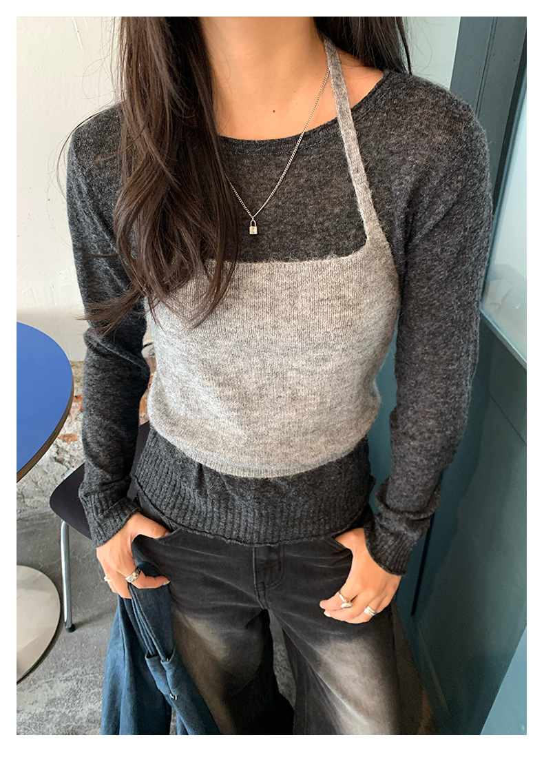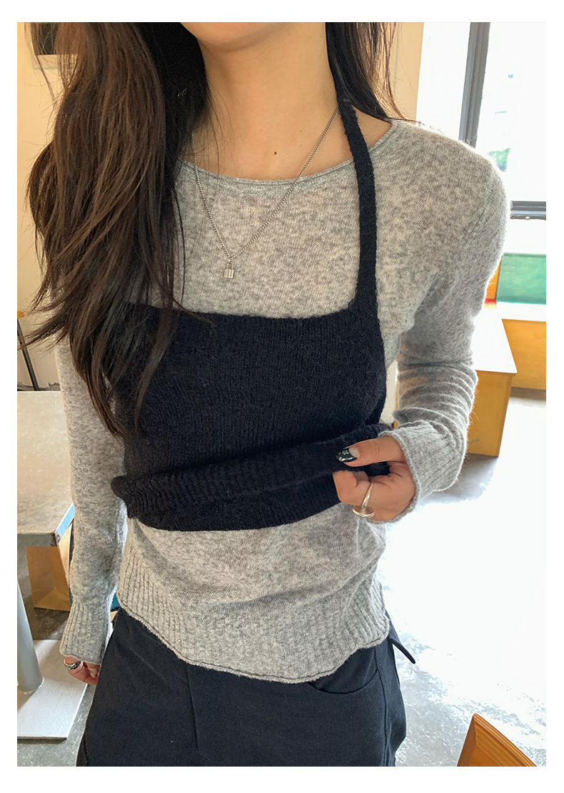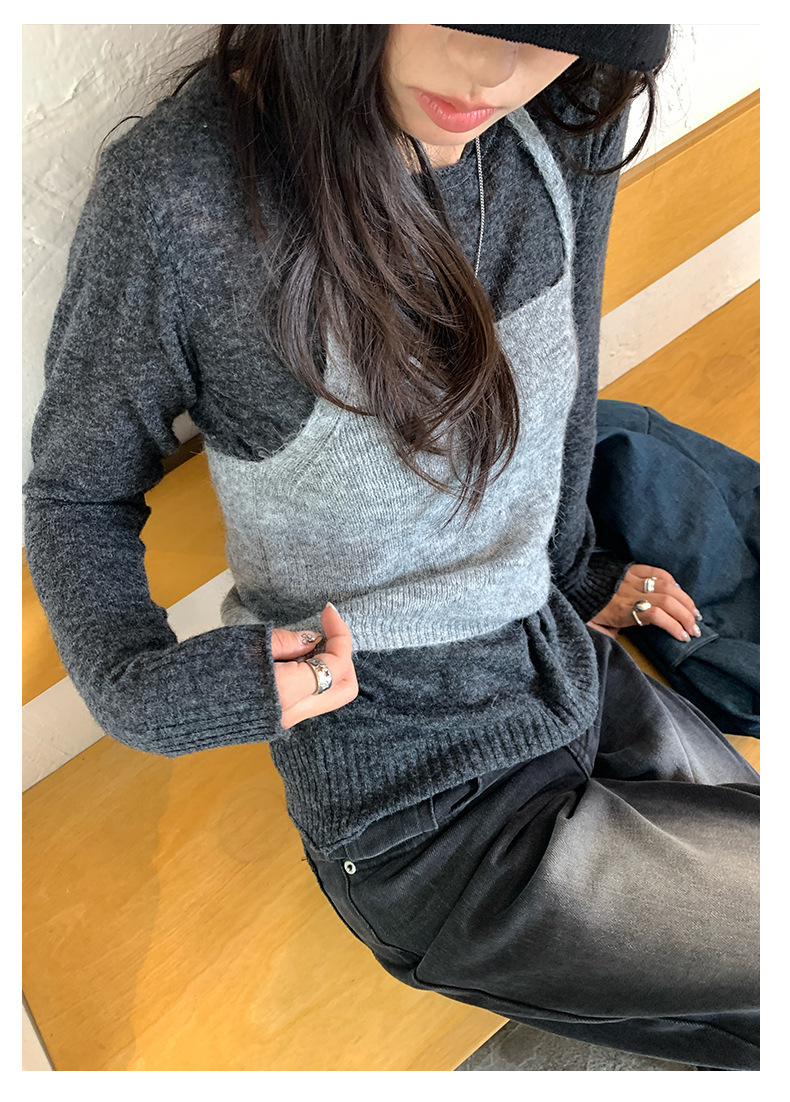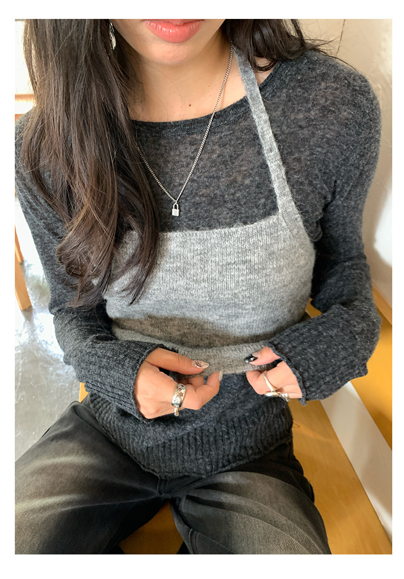 *o-ha-you*【FHZH1KA5030060】韓系簡約風長袖針織衫寬鬆百搭休閒疊穿背心兩件式-2色