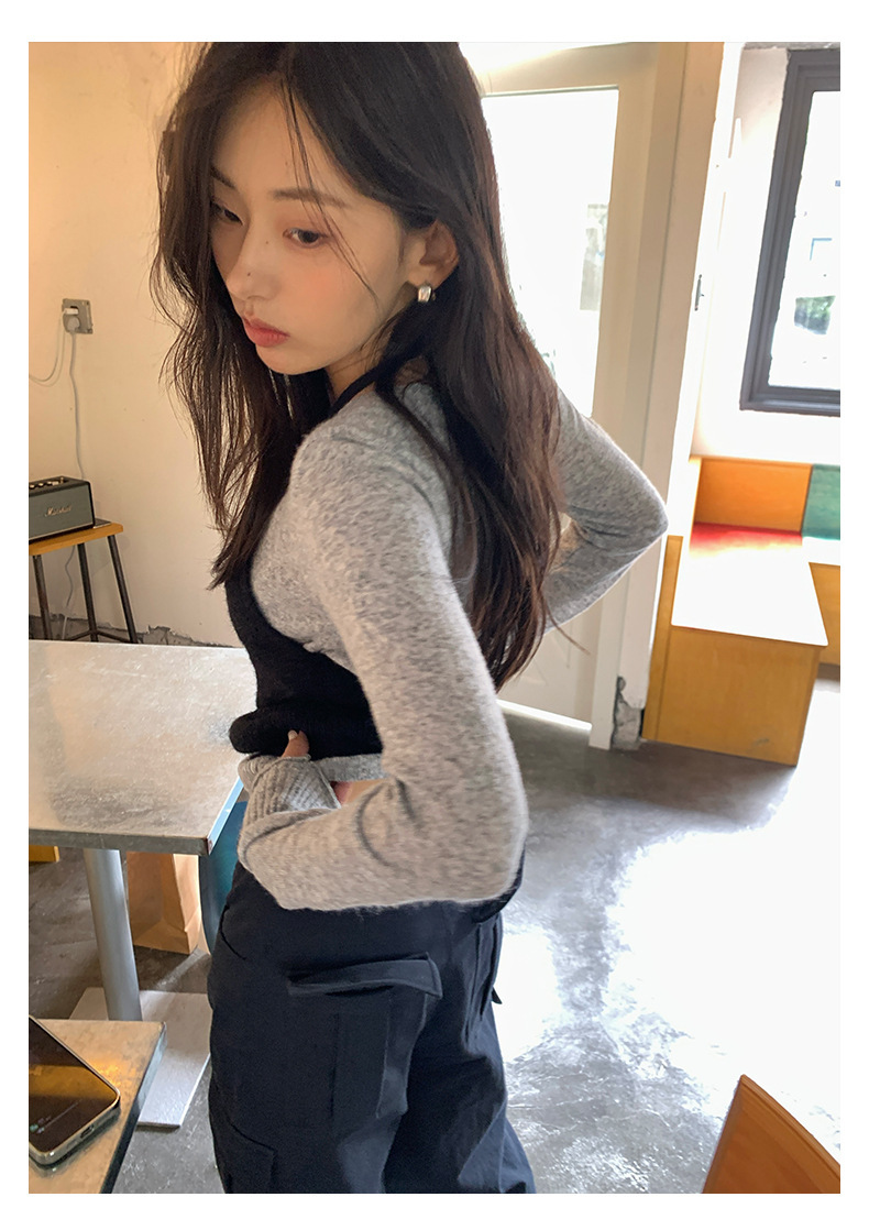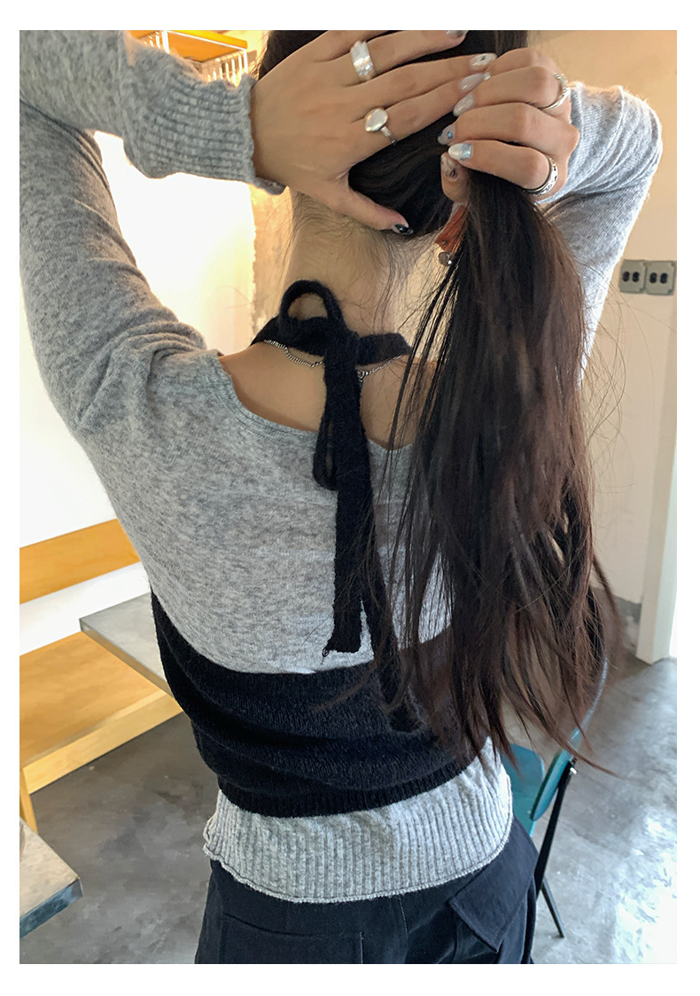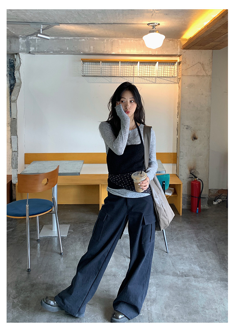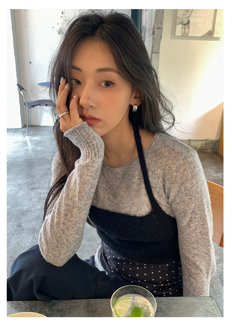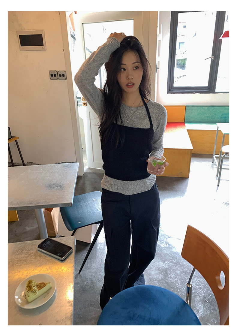 *o-ha-you*【FHZH1KA5030060】韓系簡約風長袖針織衫寬鬆百搭休閒疊穿背心兩件式-2色