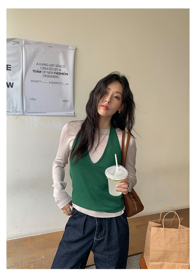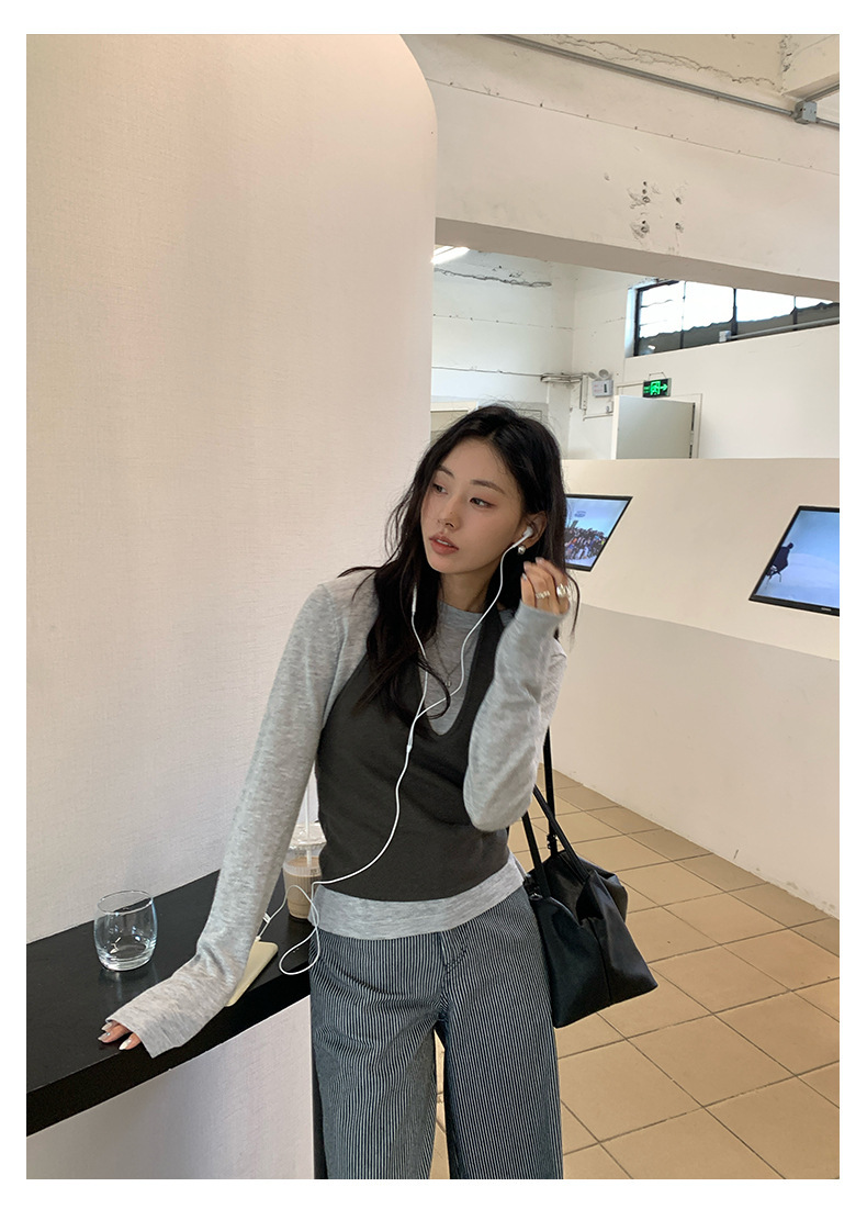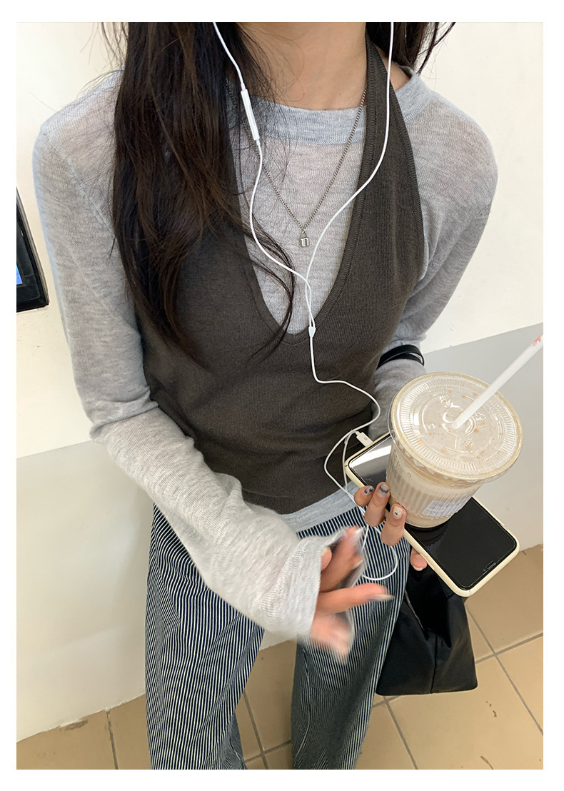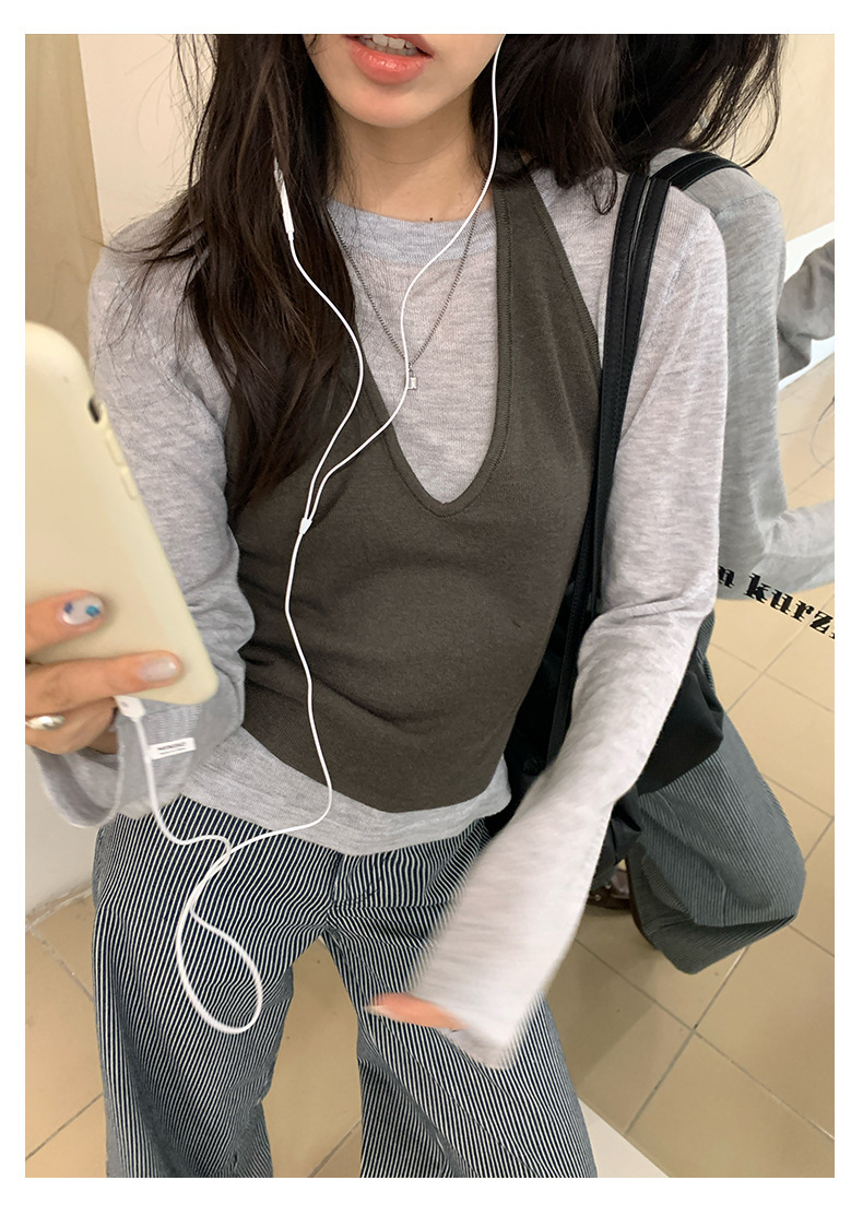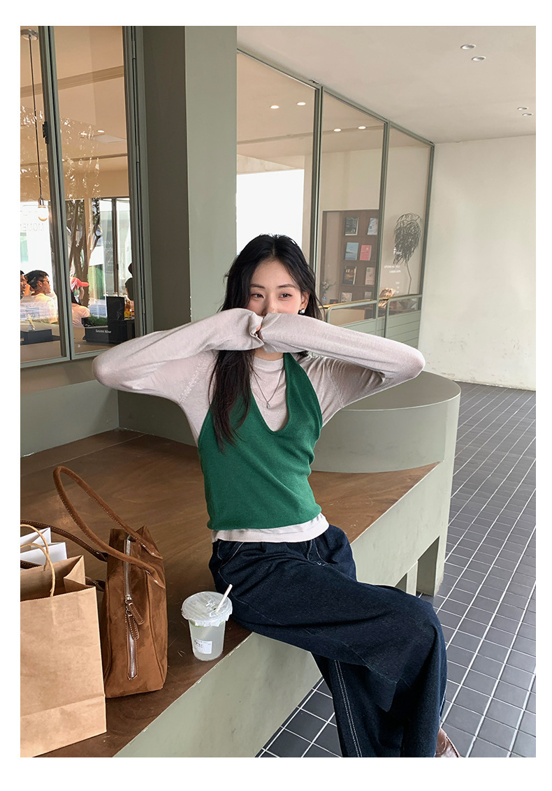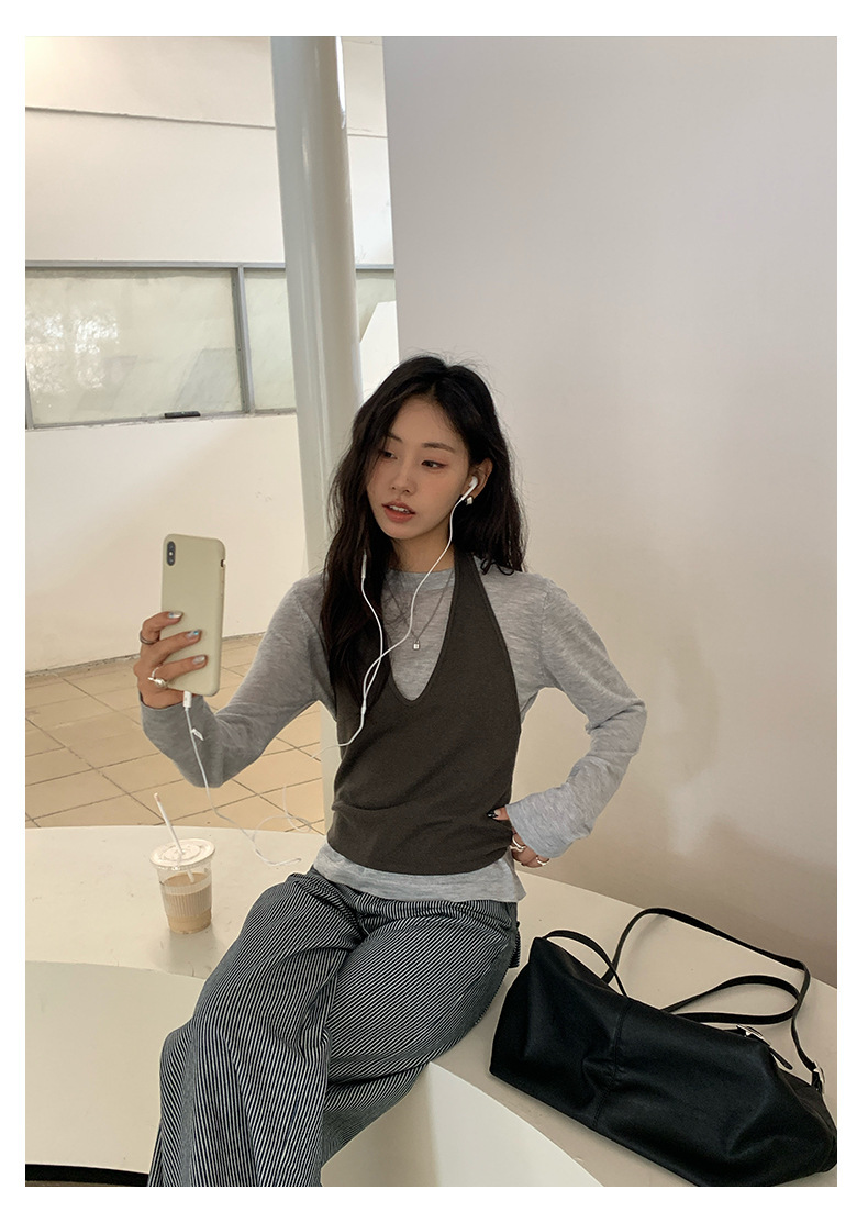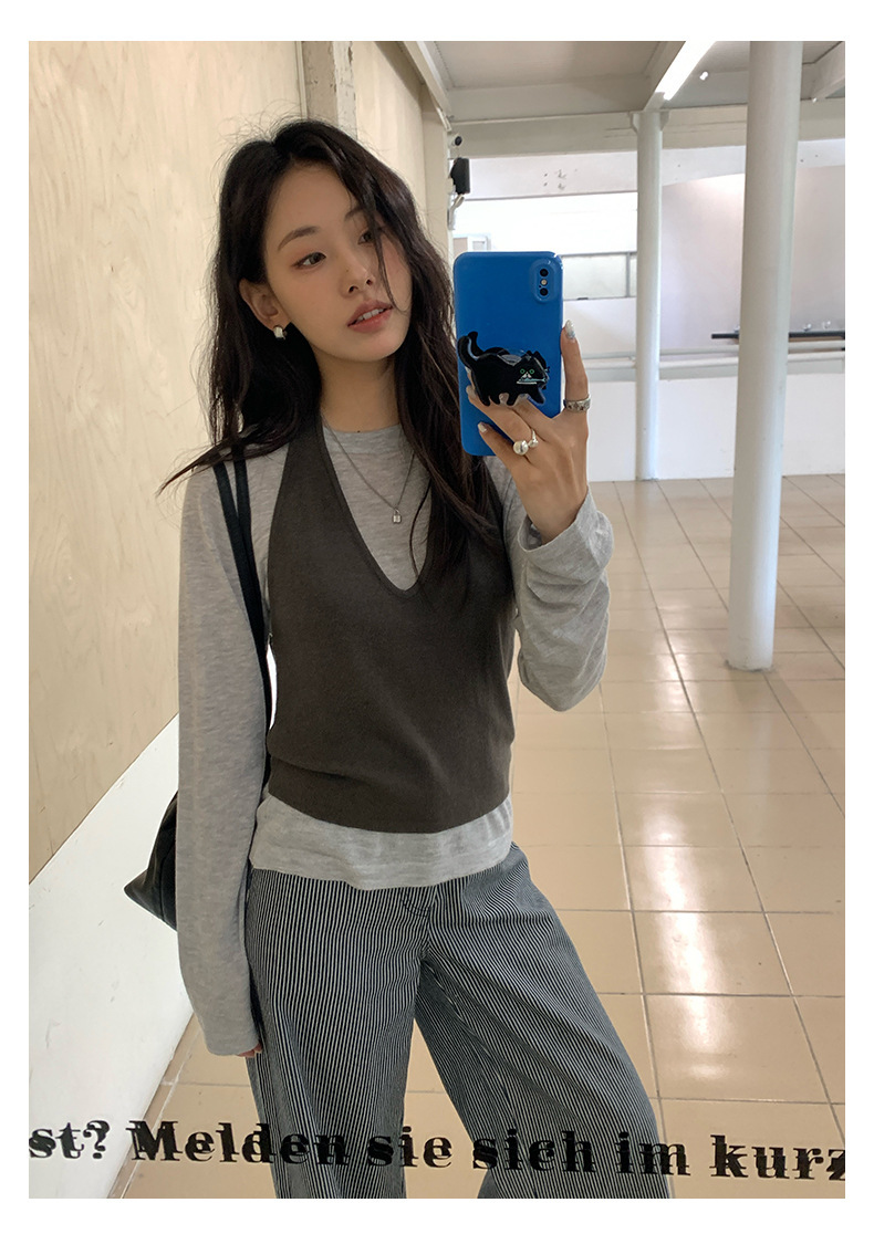 *o-ha-you*【FHZH1KA5030067】早秋穿搭上衣韓系氛圍感穿搭毛織兩件式長袖針織衫-2色
