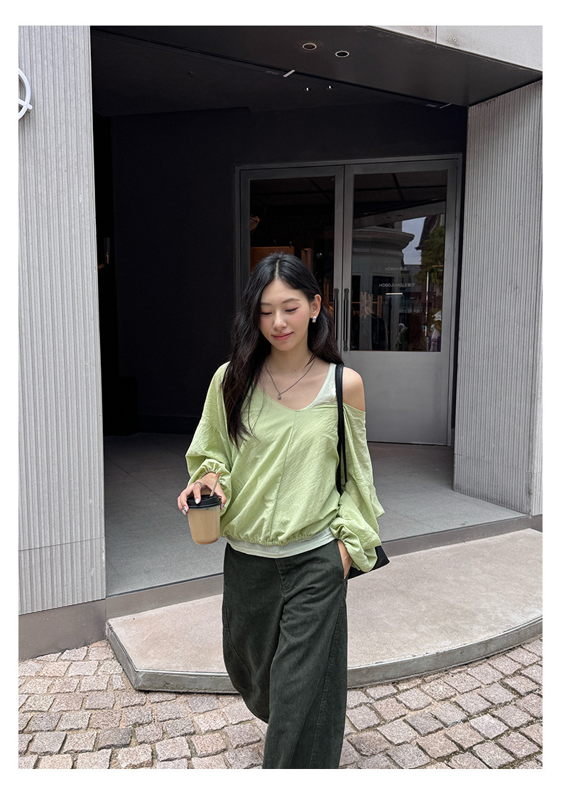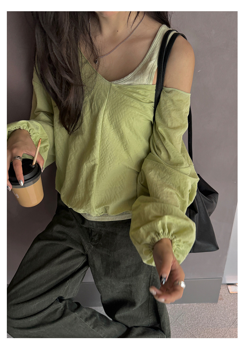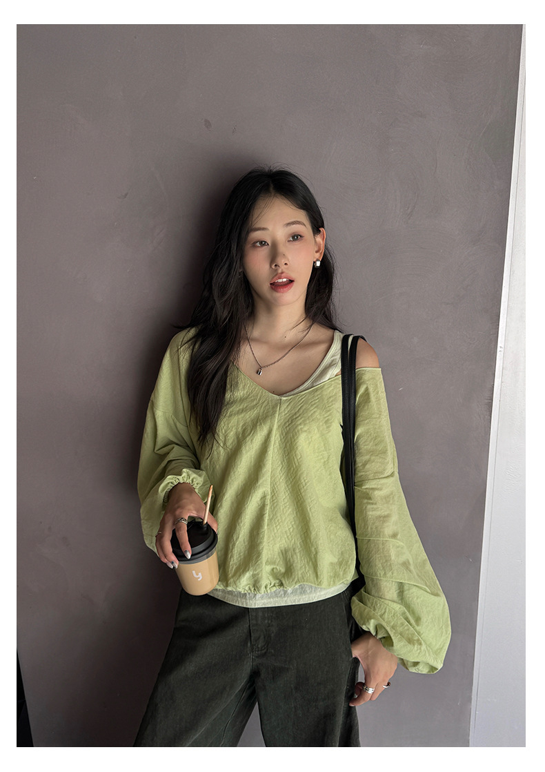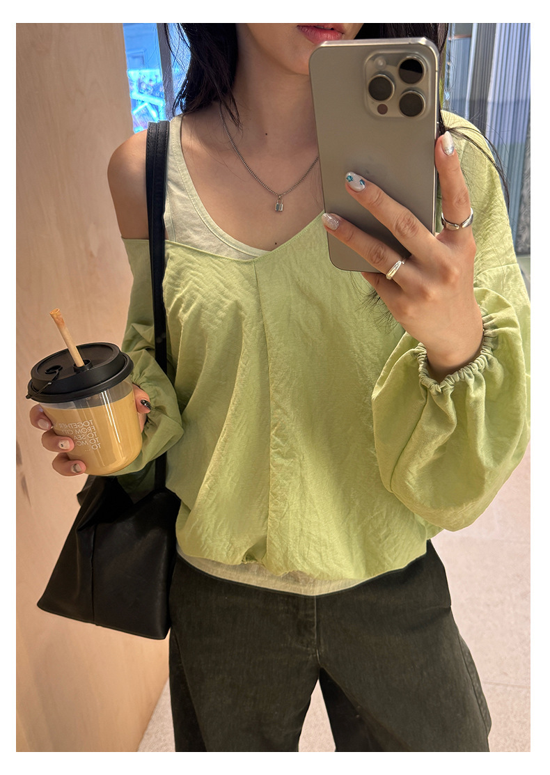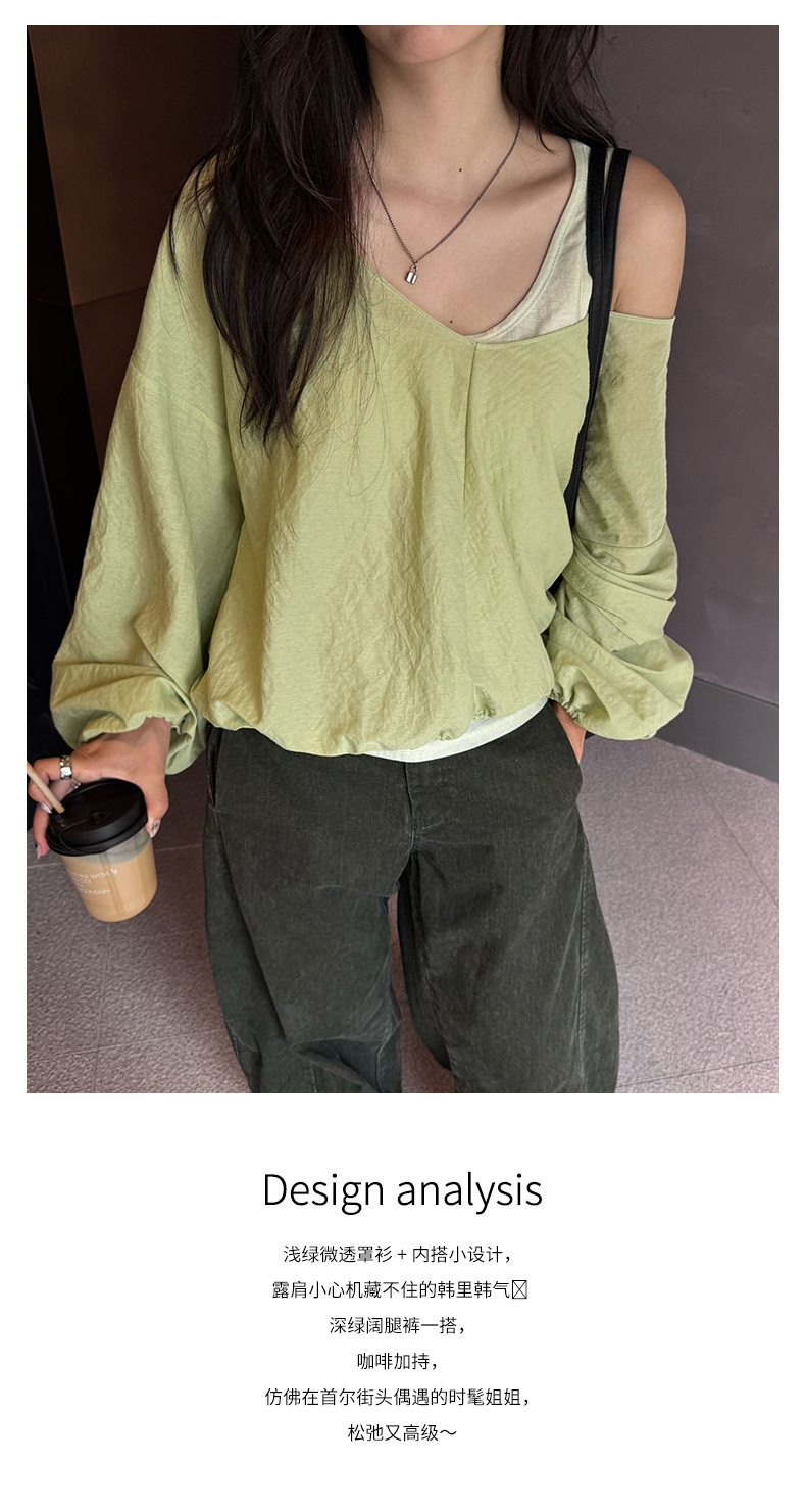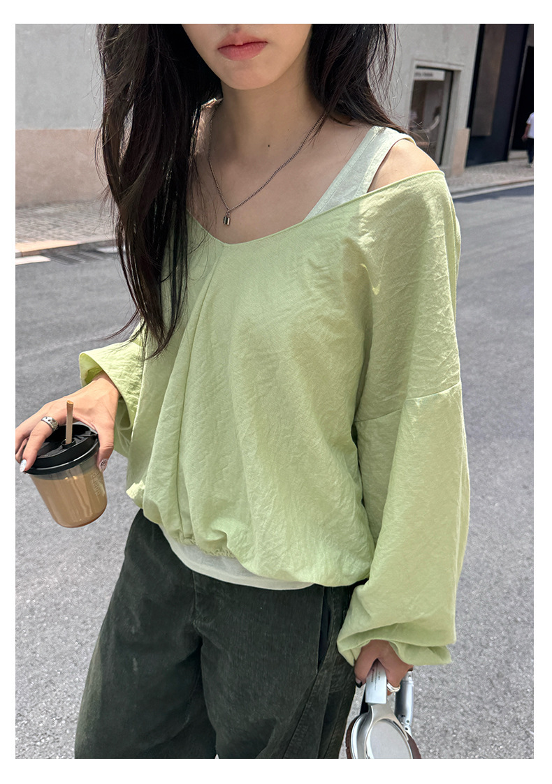 *o-ha-you*【FHZH1KA5030805】韓系V領設計感兩件套襯衫百搭寬鬆顯瘦長袖上衣