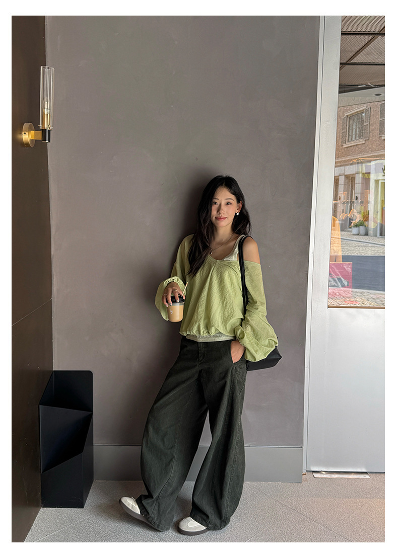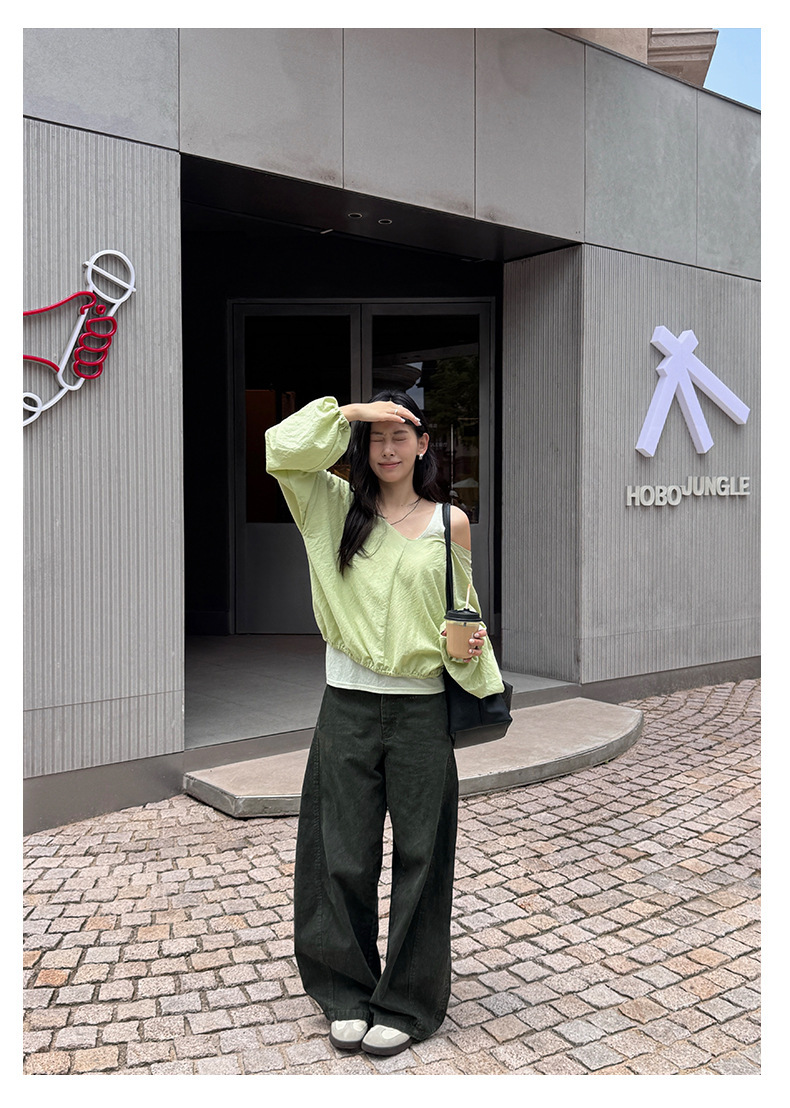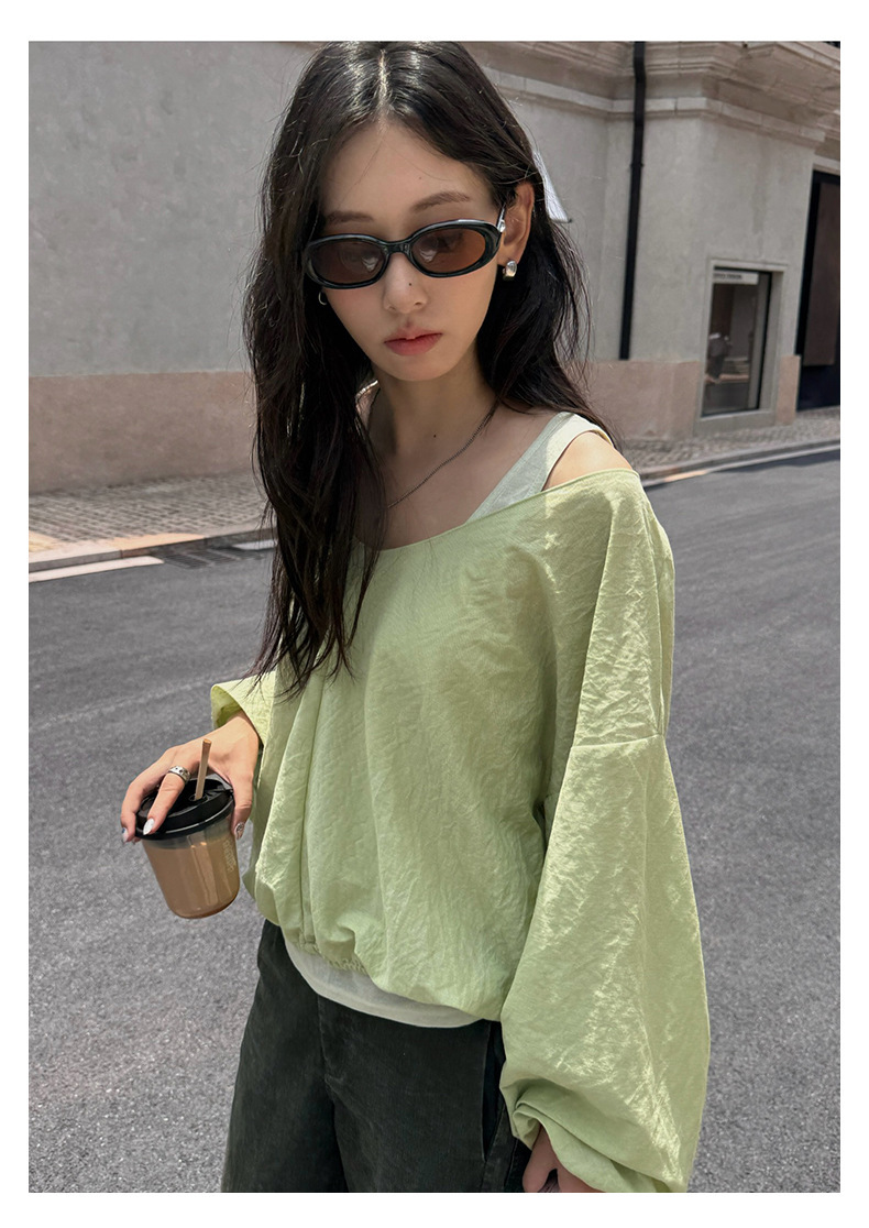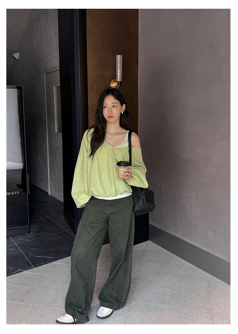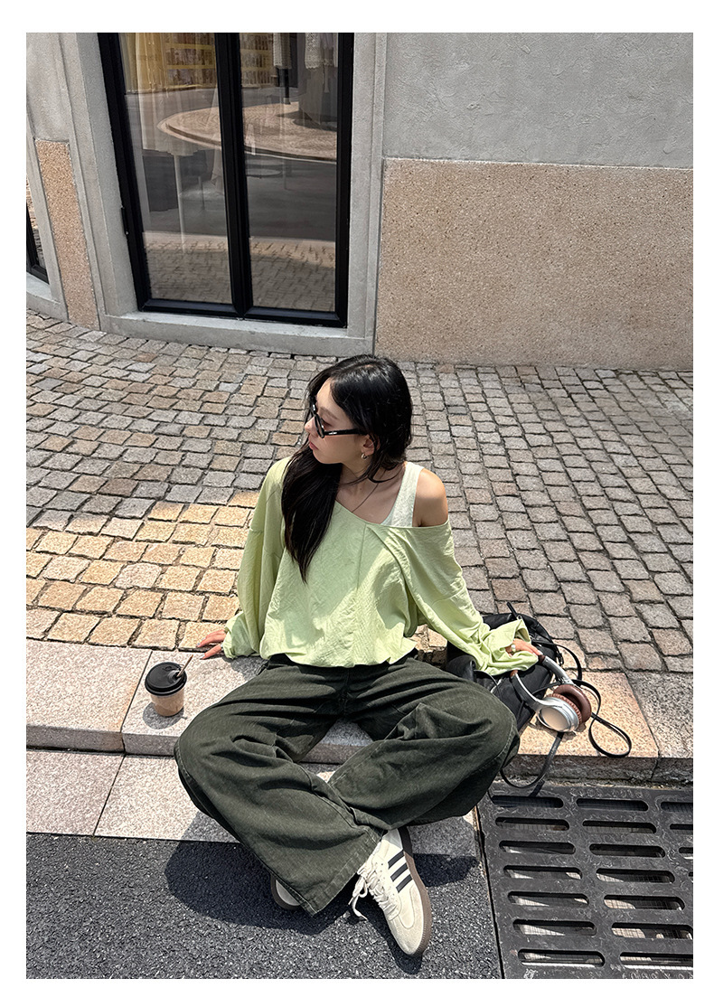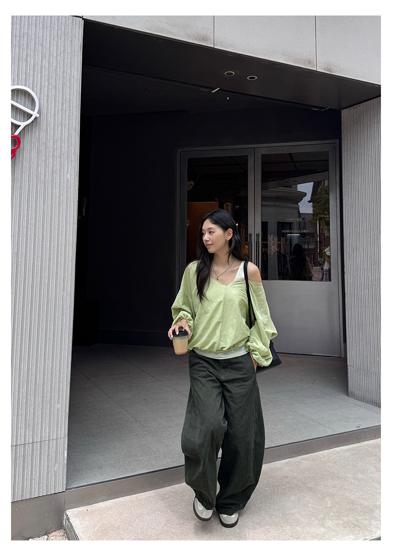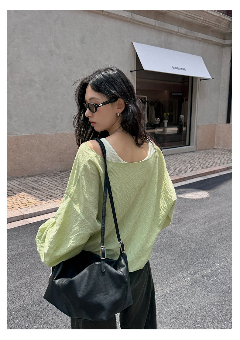 *o-ha-you*【FHZH1KA5030805】韓系V領設計感兩件套襯衫百搭寬鬆顯瘦長袖上衣