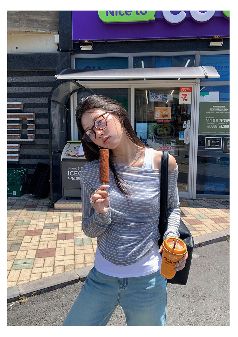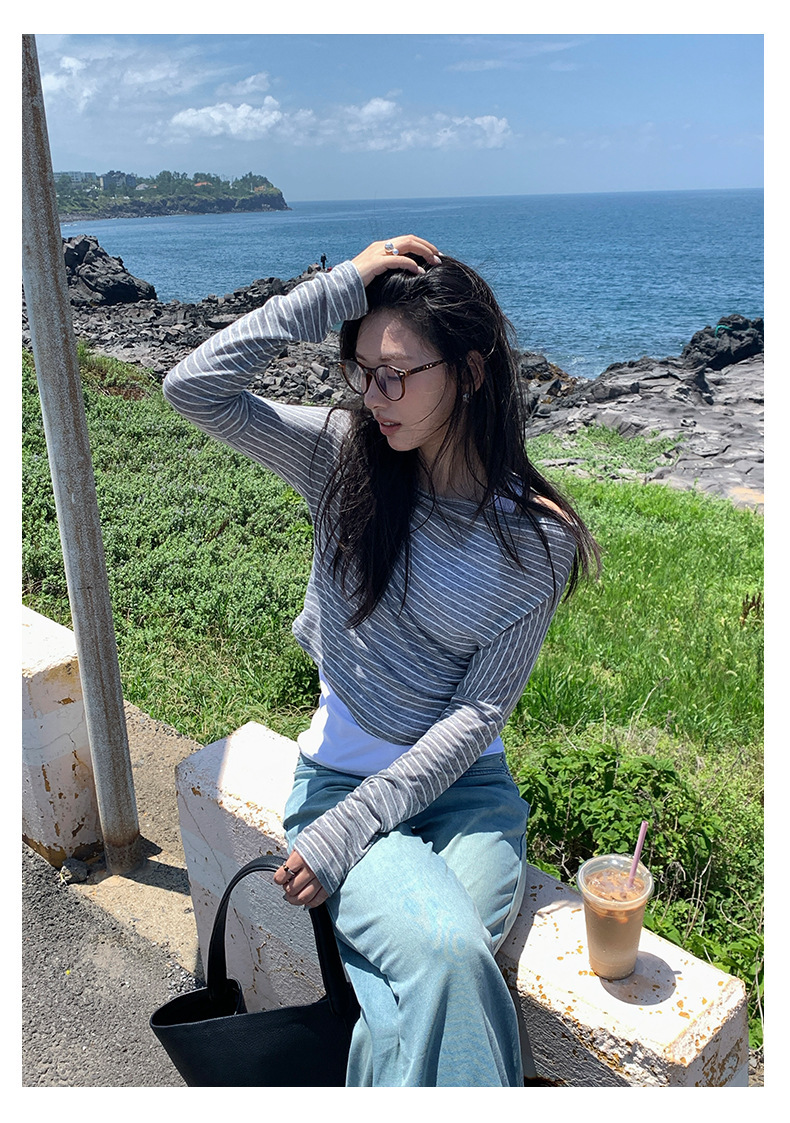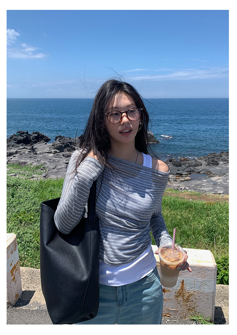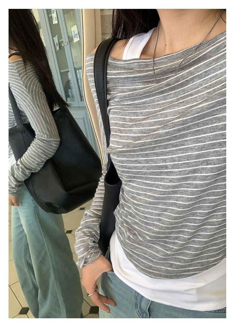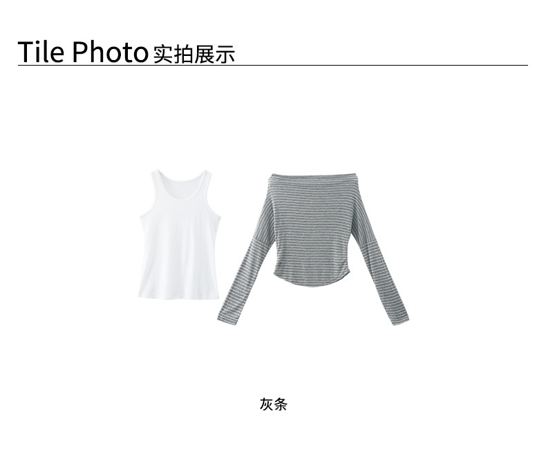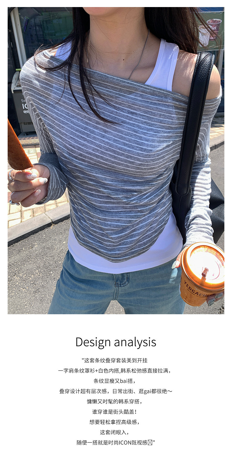 *o-ha-you*【FHZH1KA5030833】韓版條紋一字領長袖T恤+吊帶背心兩件套防曬上衣